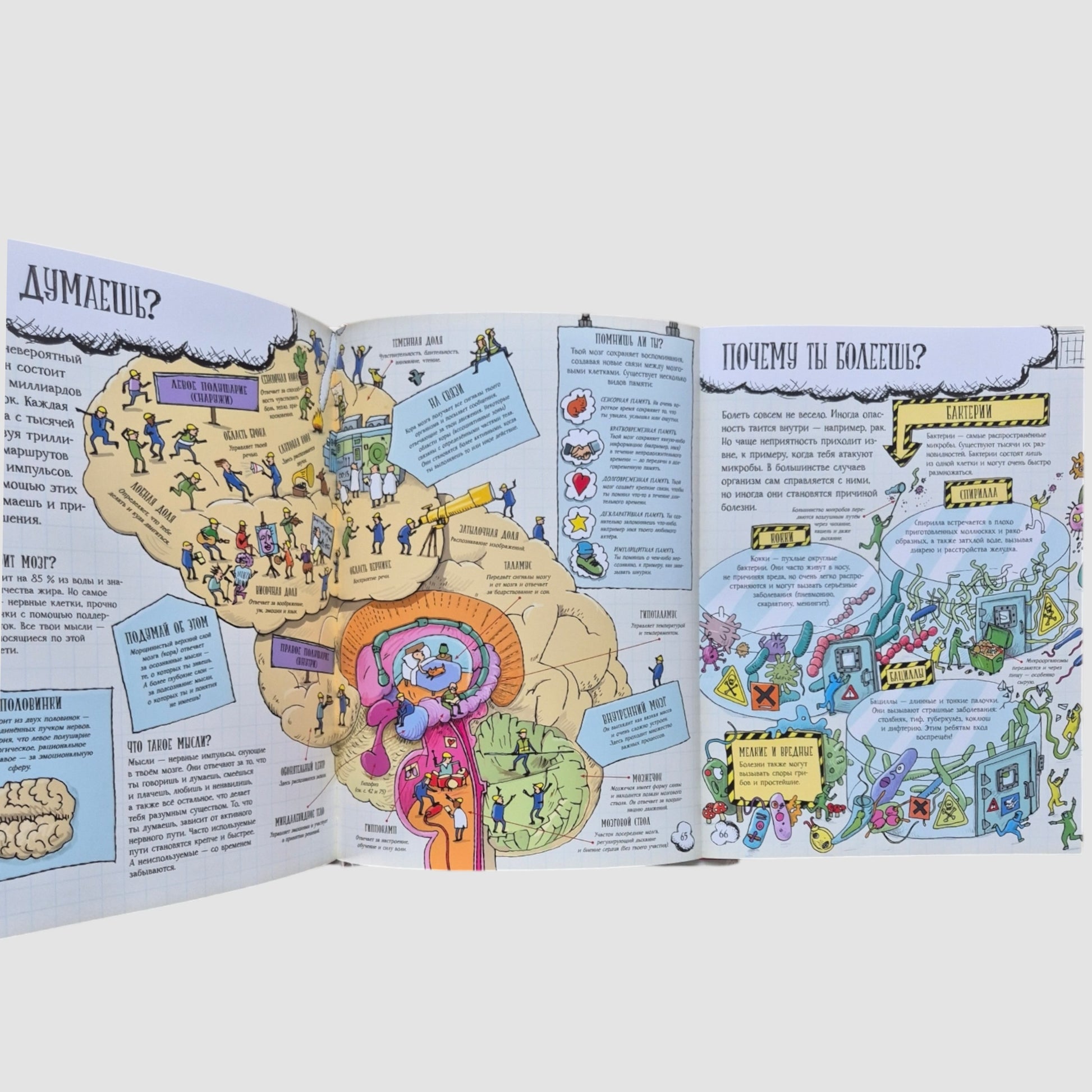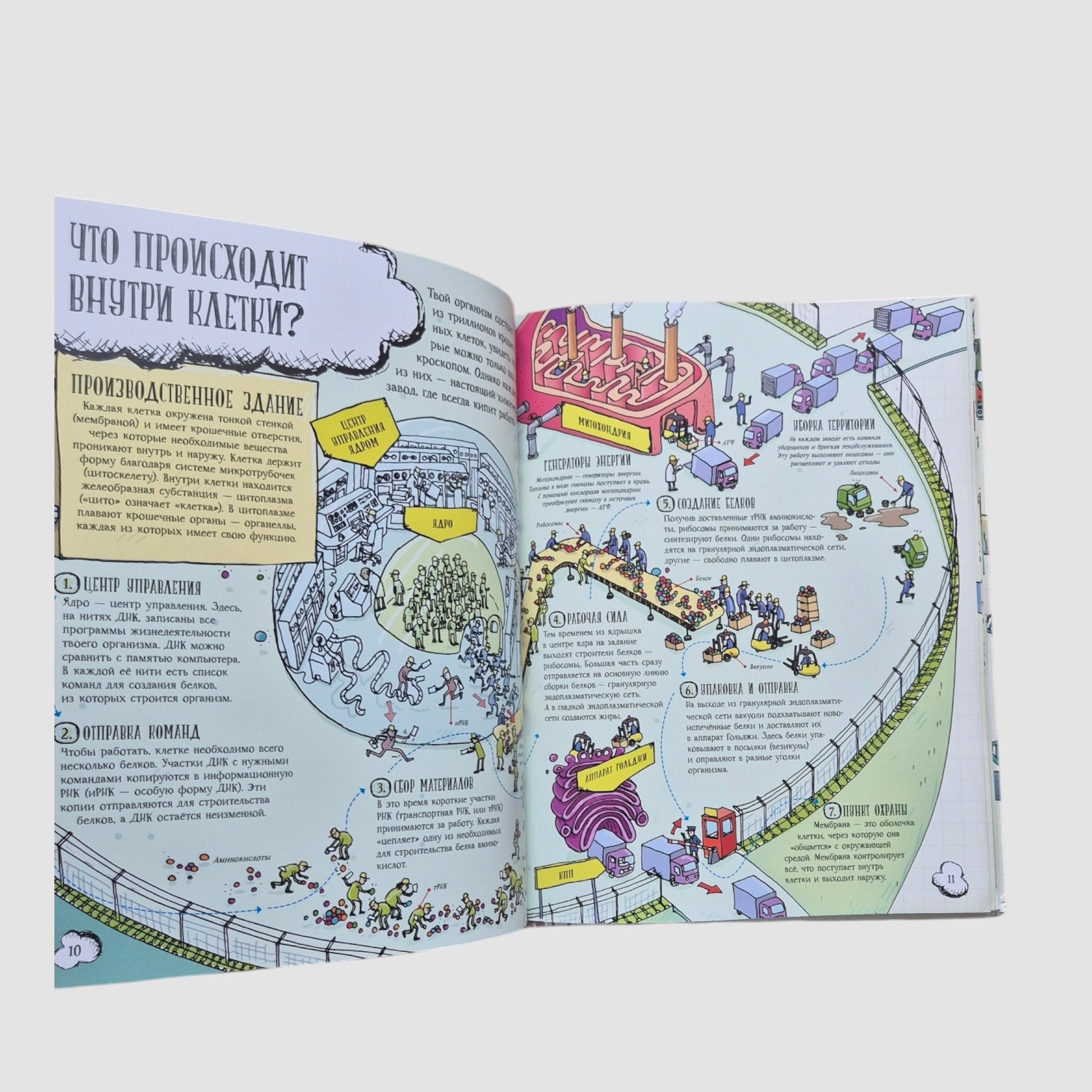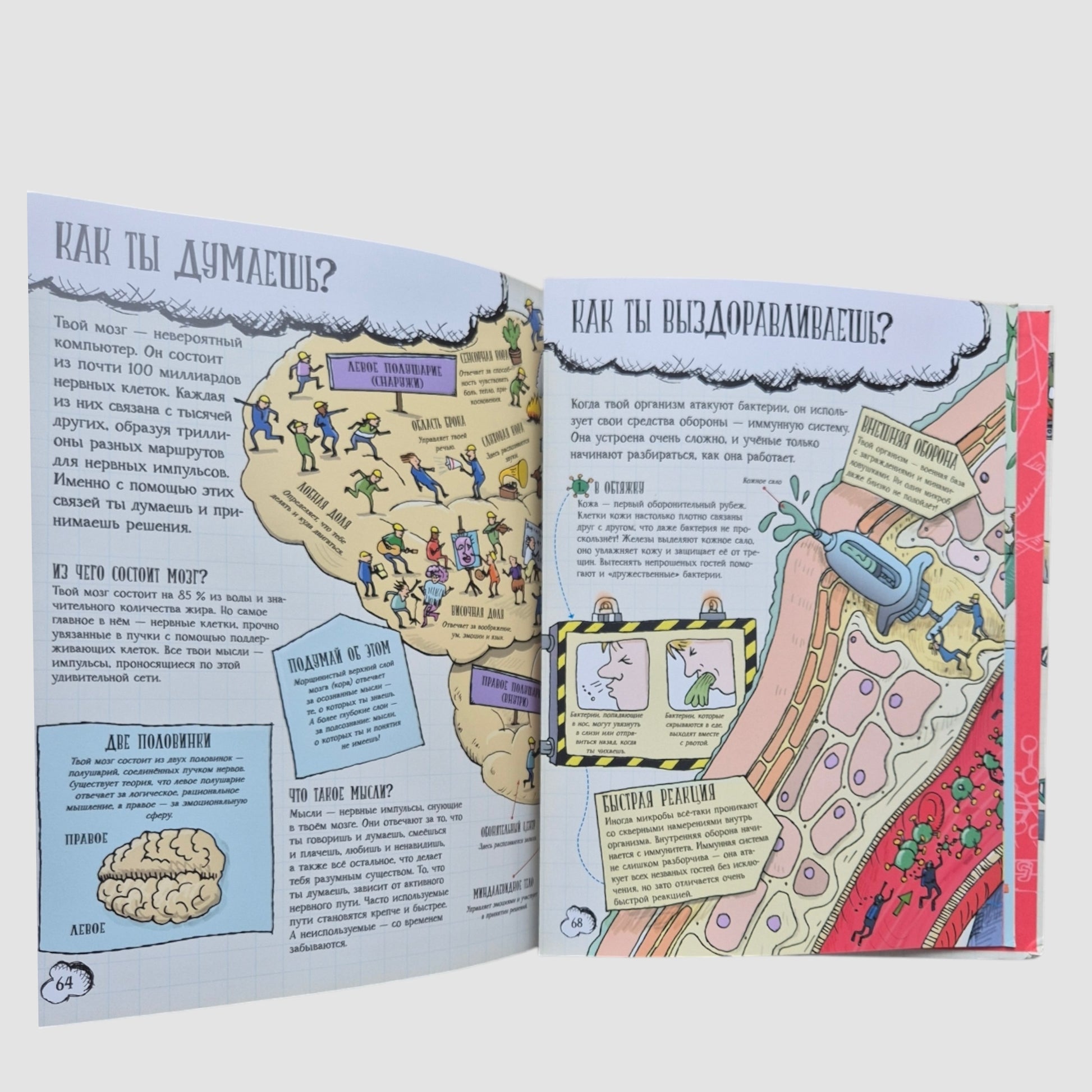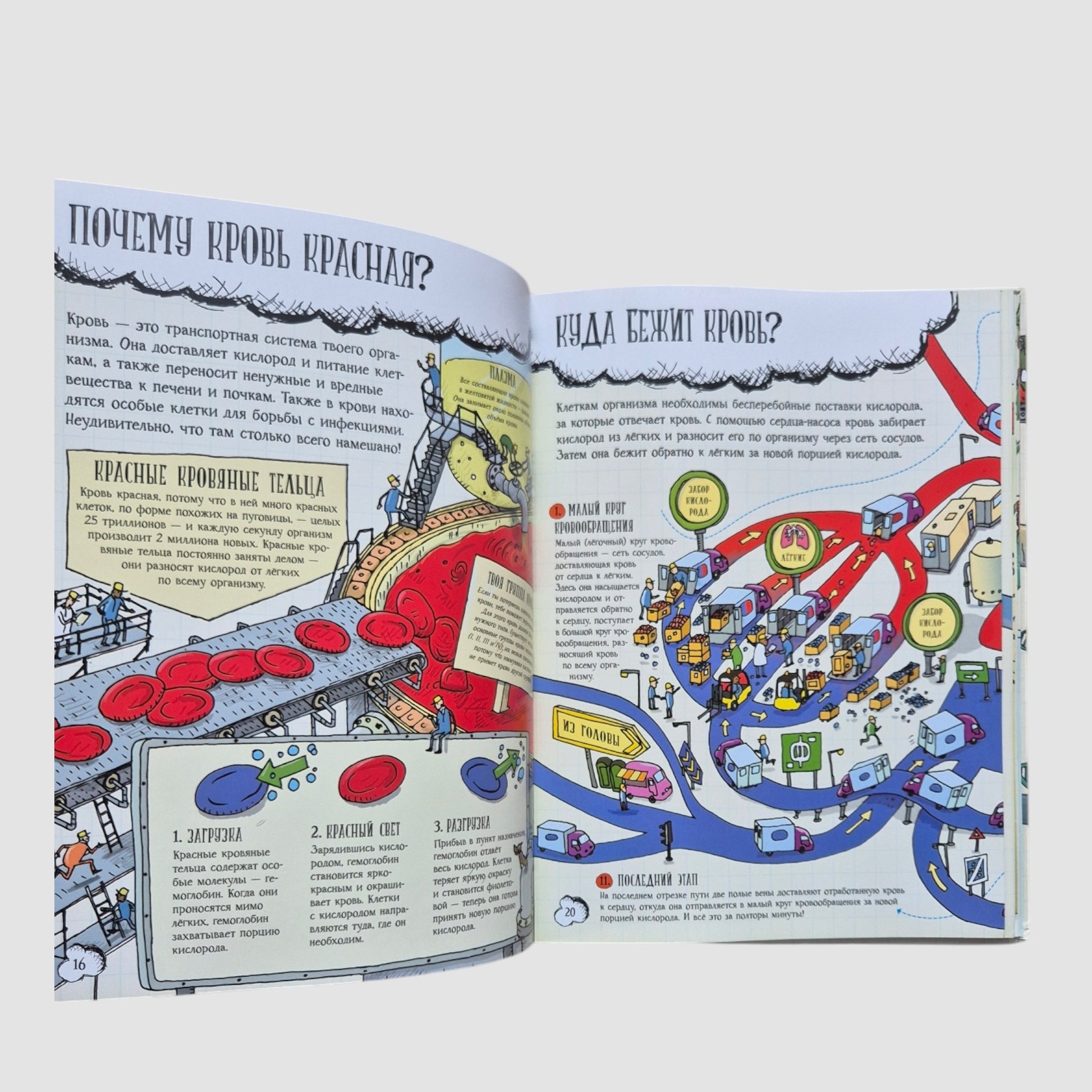 В этой книге подробно, наглядно и невероятно увлекательно рассказано о том, как устроен и как работает человеческий организм. Из чего состоит наше тело, что такое клетки, ткани и органы? Как работают мышцы, нервы и гормоны? Для чего нужны вода и еда и что с ними происходит в организме человека? Почему мы болеем и как выздоравливаем, как распознаем запахи и вкусы? Как мы думаем? Почему мы похожи на своих родителей?