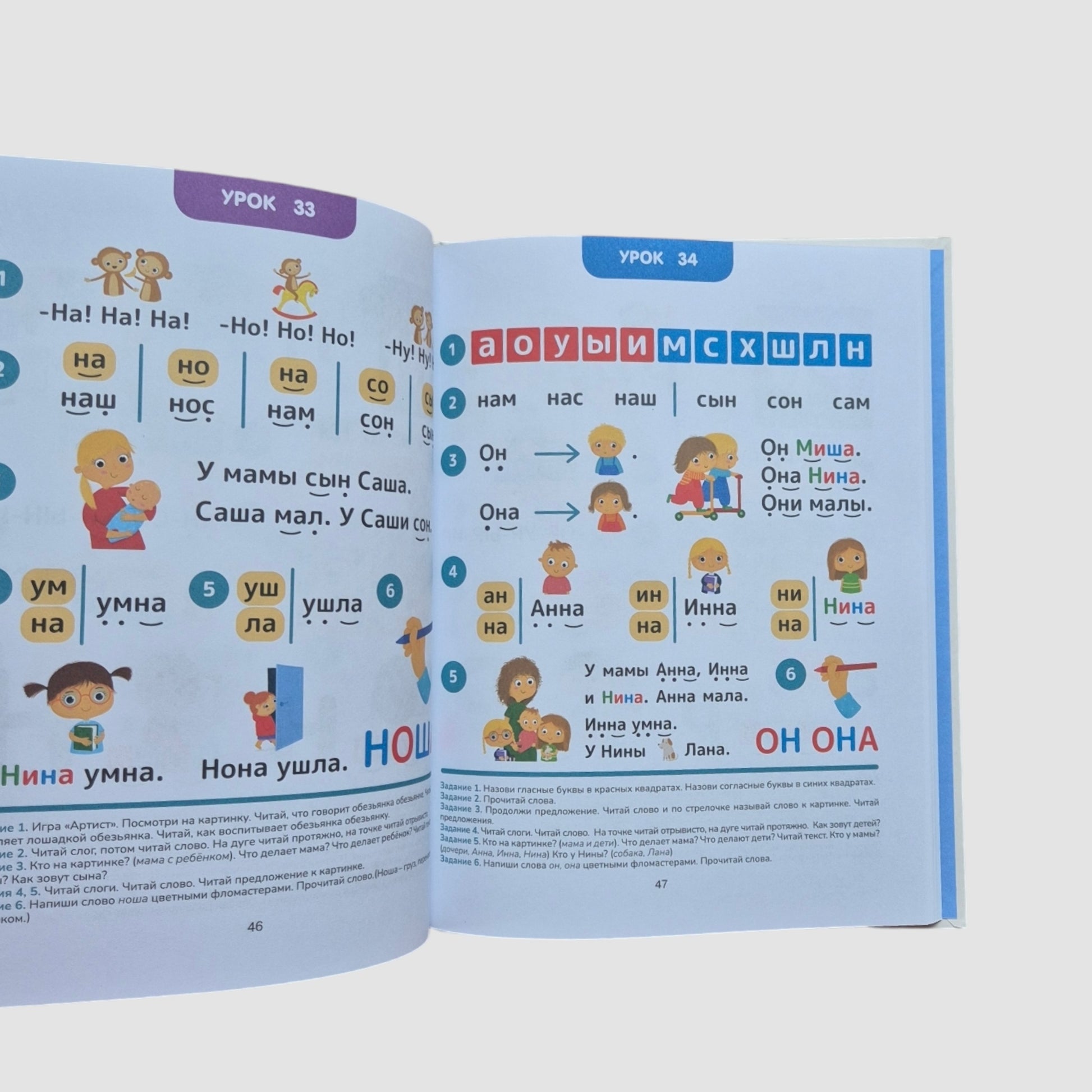 - Уже на 10-м уроке ребенок самостоятельно прочитает первое слово, а на 19-м - первое предложение.
