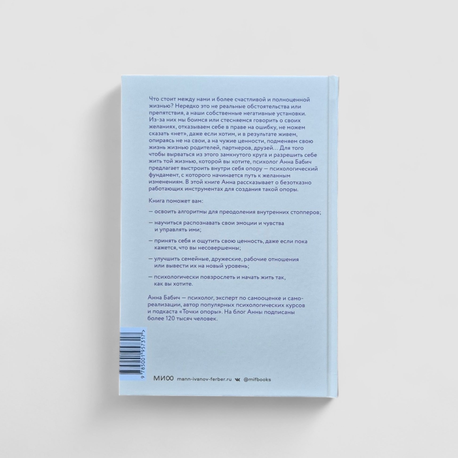 Для того, чтобы вырваться из этого замкнутого круга и разрешить себе жить той жизнью, которой вы хотите, психолог Анна Бабич предлагает выстроить внутри себя опору — психологический фундамент, с которого начинается путь к долгосрочным изменениям. В этой книге Анна предлагает набор безотказно работающих инструментов для создания такой опоры.
