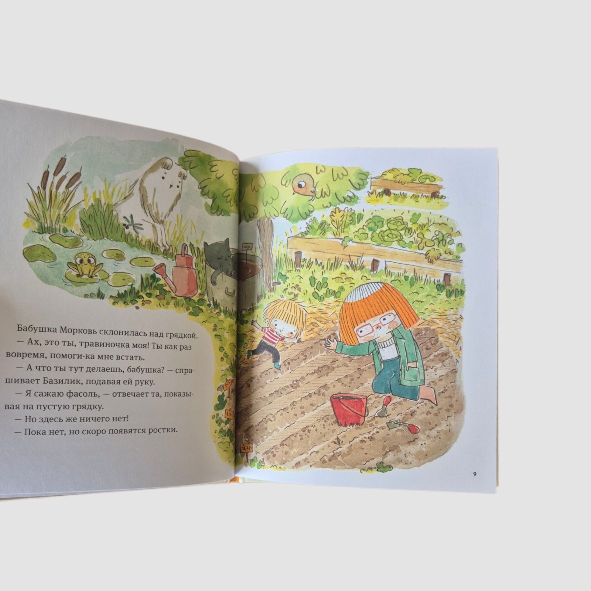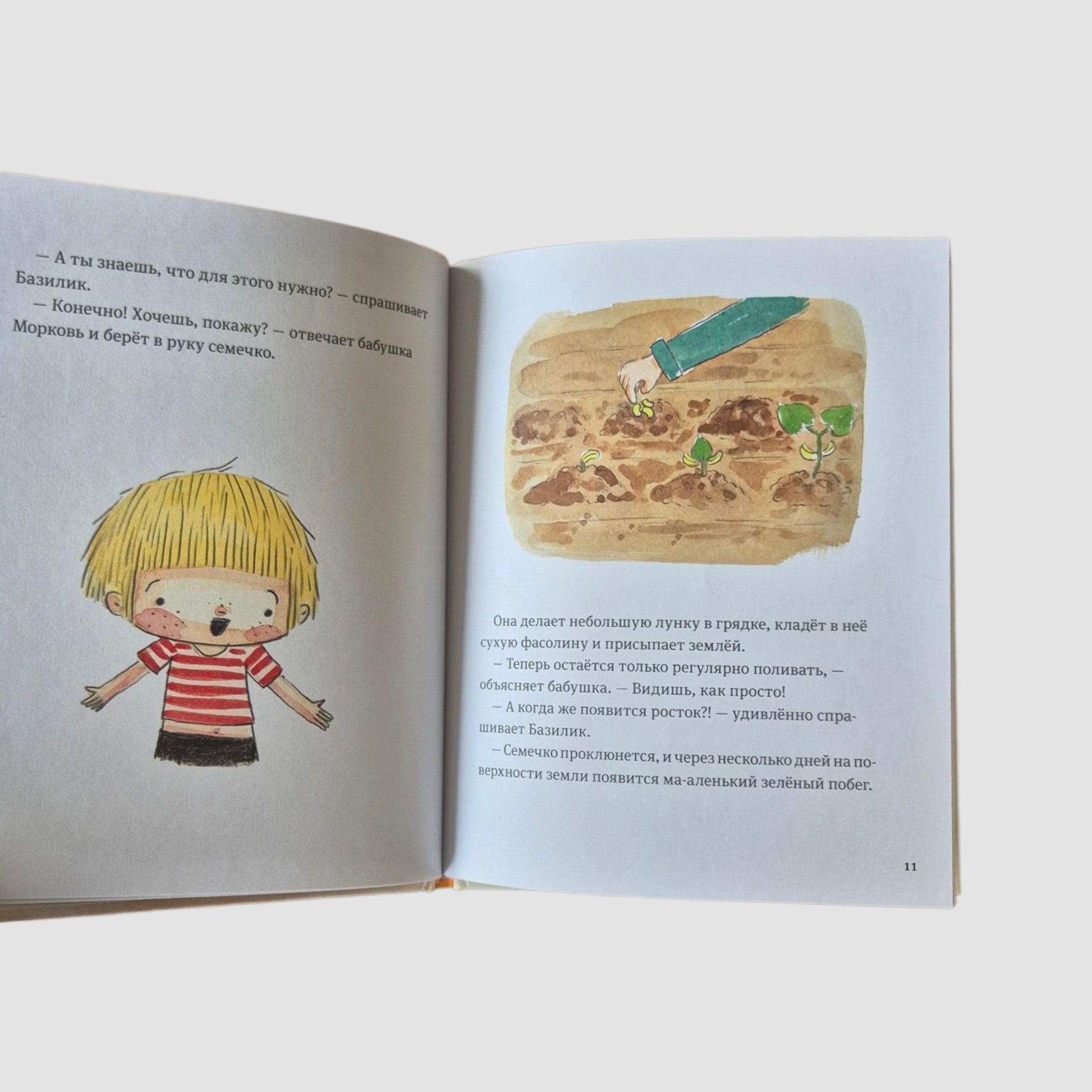 Серия «В саду Базилика» — это познавательные книги для самых маленьких об удивительном мире растений. Бабушка Морковь найдёт ответы на самые разные вопросы своего внука Базилика: могут ли растения любить, как у них появляются дети, какими способностями они обладают и что умеют.