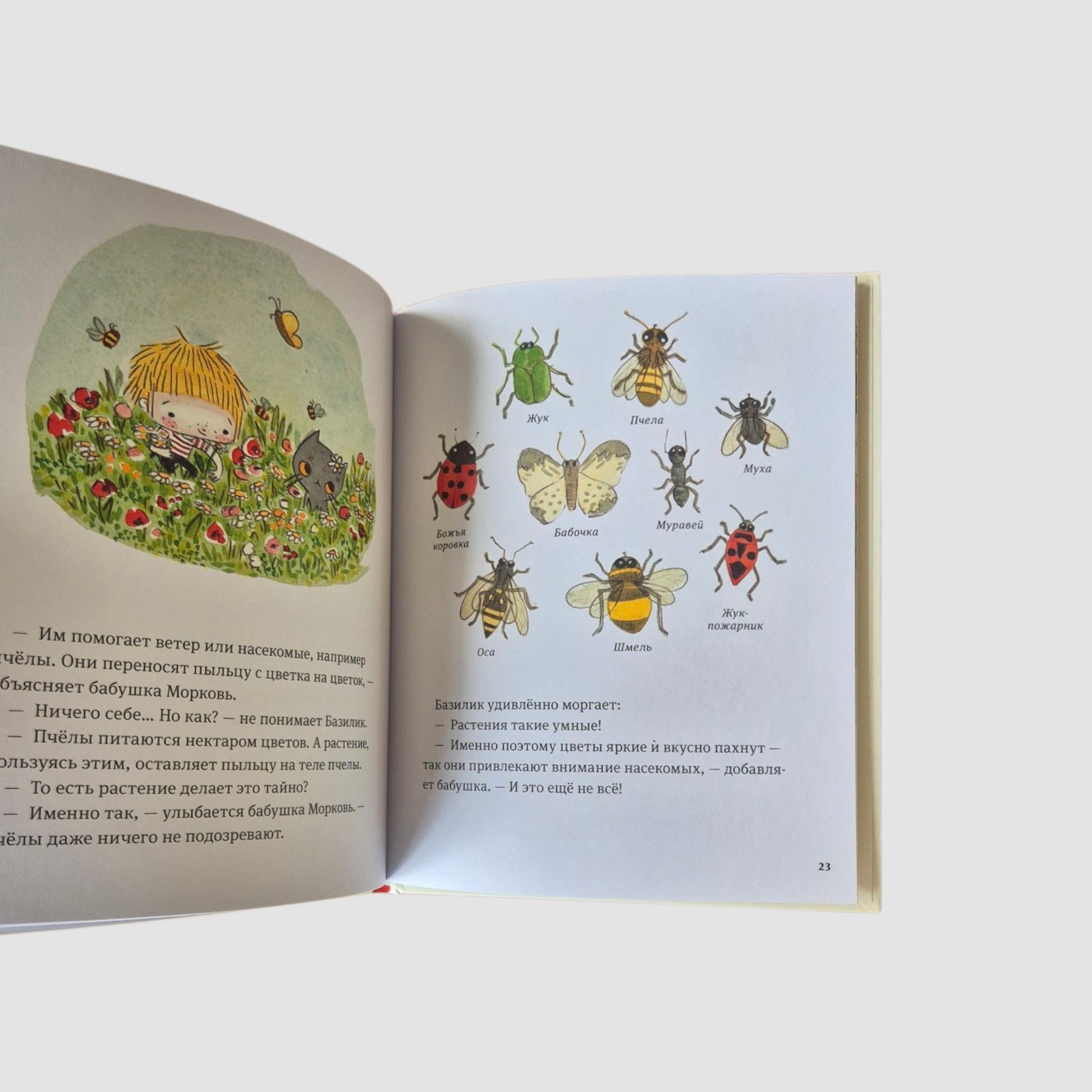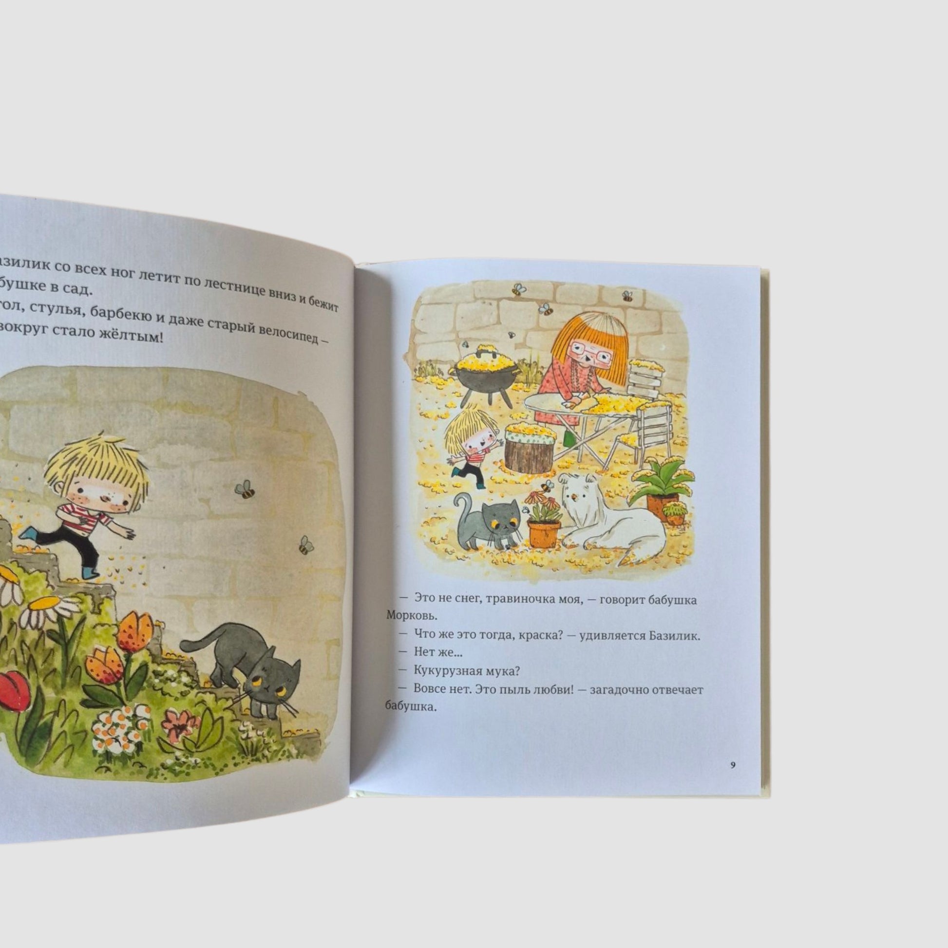 Серия «В саду Базилика» — это познавательные книги для самых маленьких об удивительном мире растений. Бабушка Морковь найдёт ответы на самые разные вопросы своего внука Базилика: могут ли растения любить, как у них появляются дети, какими способностями они обладают и что умеют. Ого! Сегодня сад засыпало жёлтым снегом. «Это не снег, а пыль любви», — загадочно говорит бабушка. Неужели растения умеют влюбляться? Бабушка Морковь сейчас расскажет!