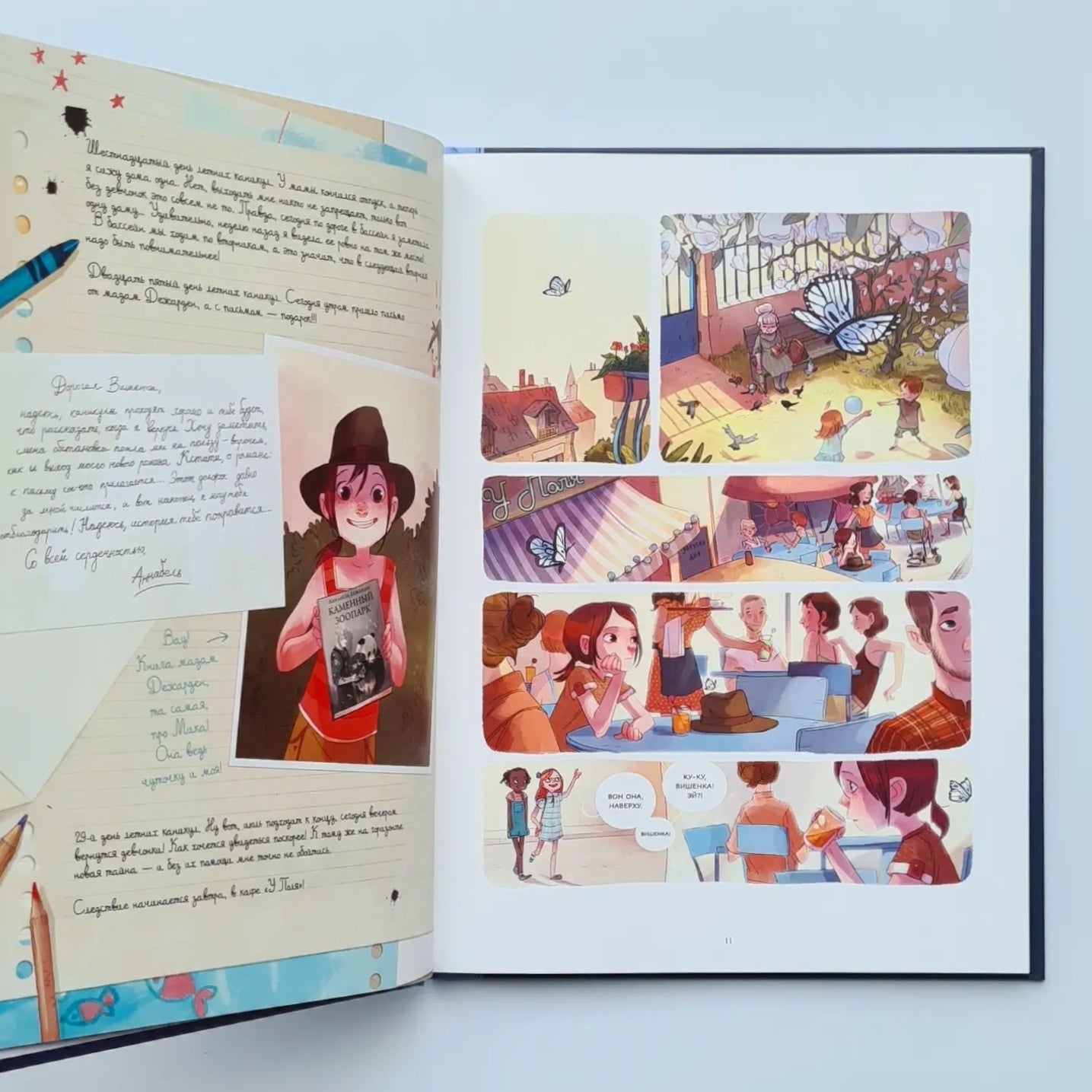 Это необычный графический роман: кроме потрясающих акварельных кадров в него входят дневниковые записи самой Вишенки, ее рисунки и фотографии. Все это создает неповторимую личную историю и дает возможность взглянуть на мир глазами начинающего писателя.