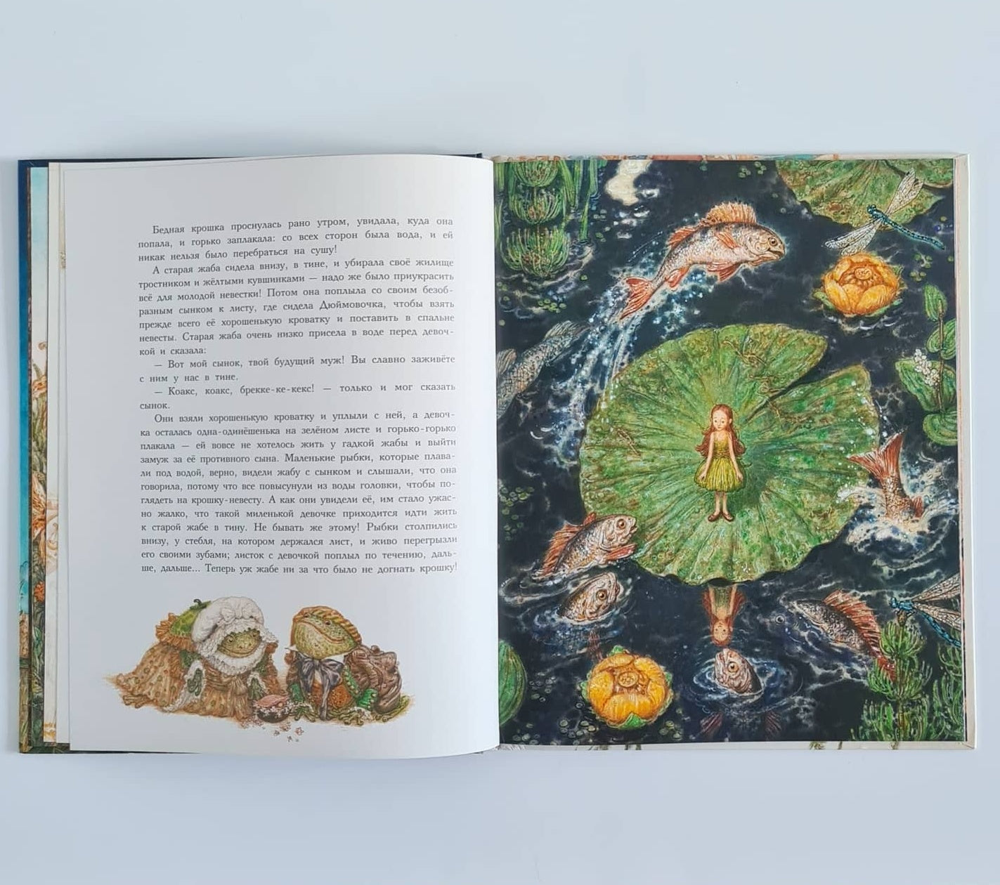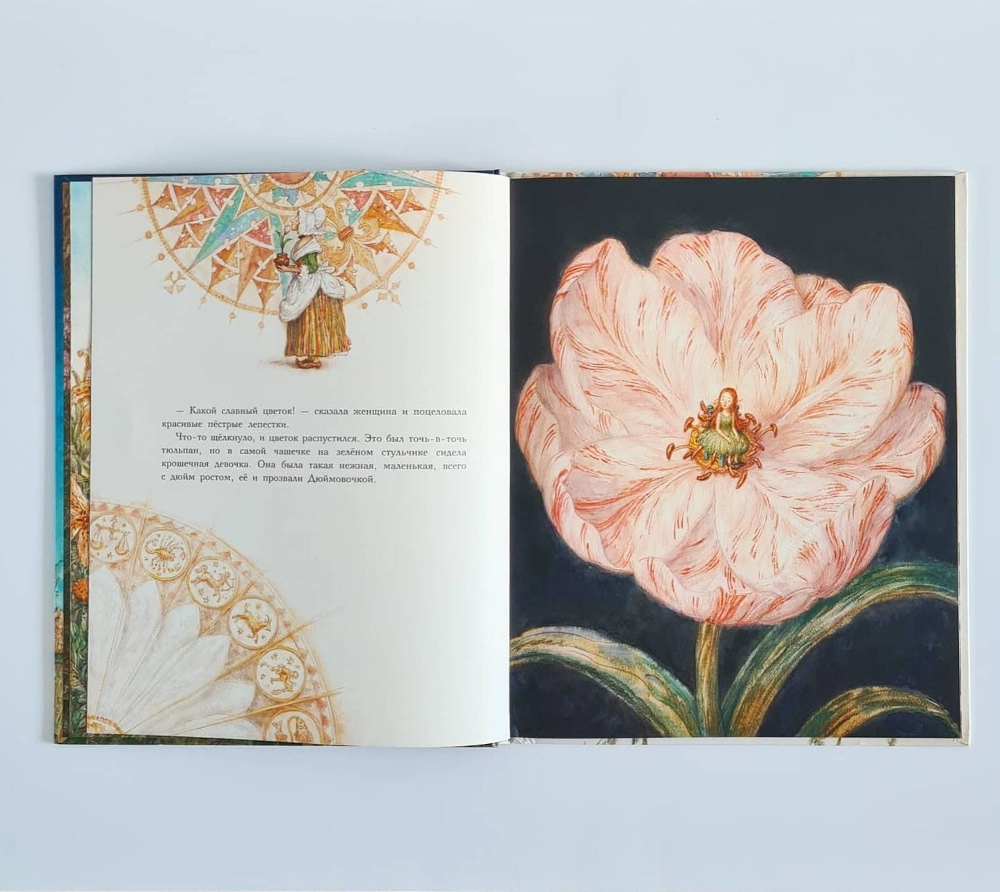 История крошечной девочки, которая появилась на свет из цветка и подружилась с ласточкой, — хорошо знакома взрослым и детям. Но ведь, если подумать, Дюймовочка бывает такой разной! Какой только не изображали её на картинках — робкой и отважной, застенчивой и решительной, весёлой и печальной. Каждый художник создаёт собственный образ девочки из цветка — и каждый раз получается новая сказка. Со страниц этой удивительно красивой и красочной книги веет цветочным ароматом, осенним ветерком и ранним морозцем. Нежные цвета, изящные крошечные детали, запоминающиеся образы — таковы новые иллюстрации Антона Ломаева к бессмертной истории Андерсена.