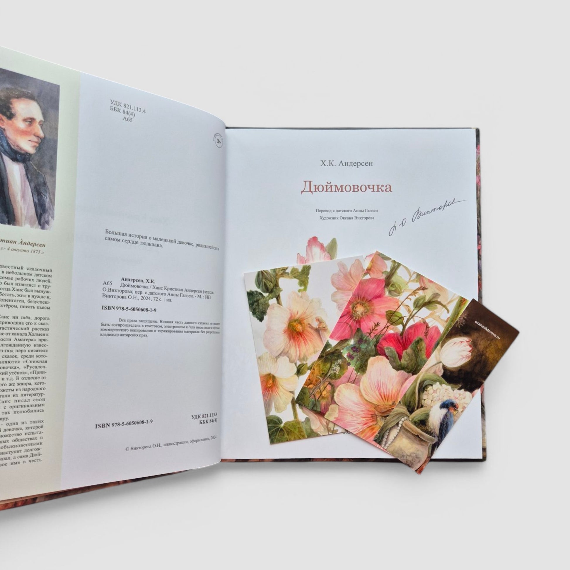 Книга поставляется как подарочный бокс: упаковка в пергамент в индивидуальной коробке с принтом, в комплекте конверт с авторскими открытками и книжными закладками.