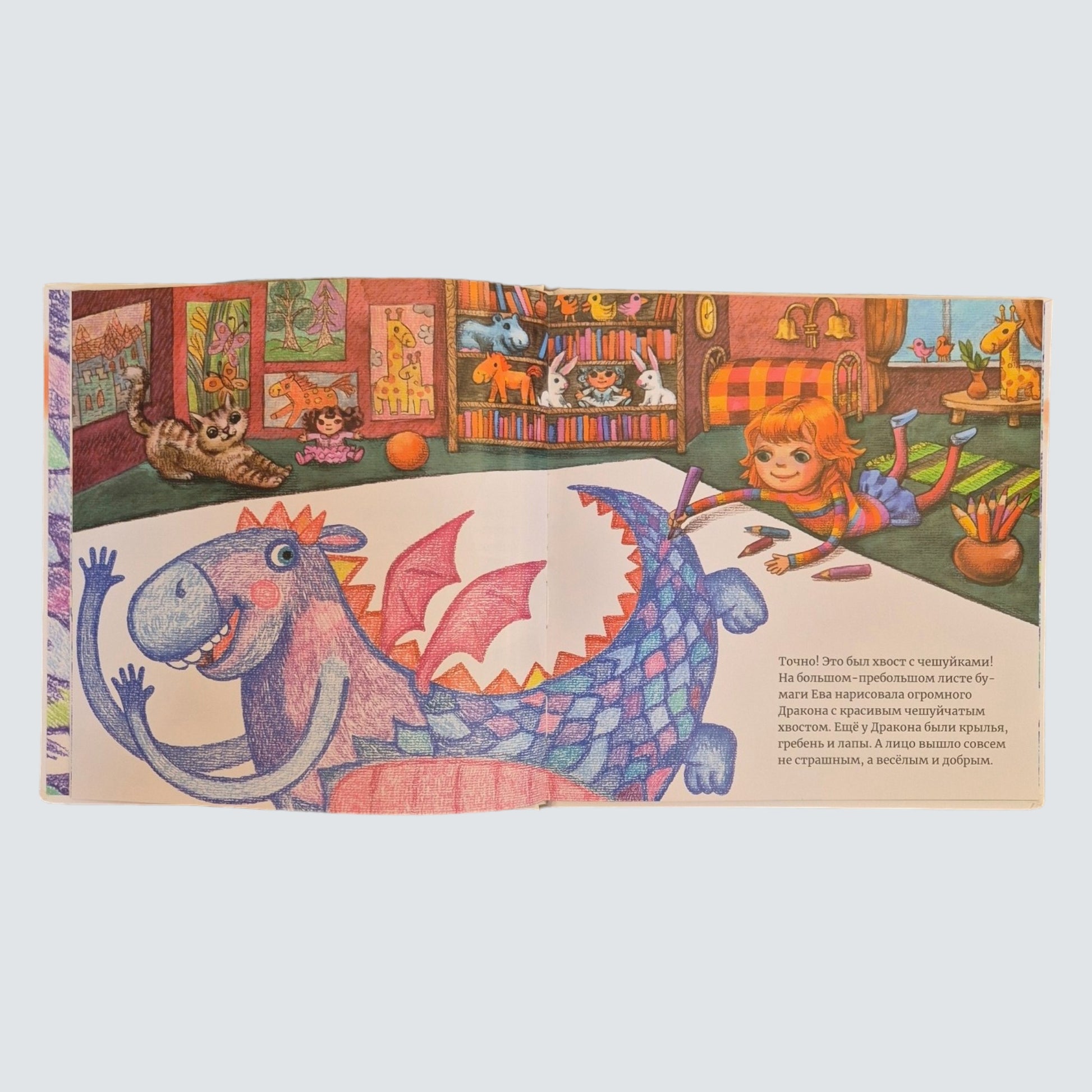 На этот раз Ева нарисовала дракона. Каким он будет? Сможет ли подружиться с другими игрушками? Не сожжёт ли ничего своим огненным дыханием? Если у тебя есть карандаши и безграничная фантазия, ты обязательно найдёшь выход из сложных ситуаций и попадёшь в самые невероятные приключения.