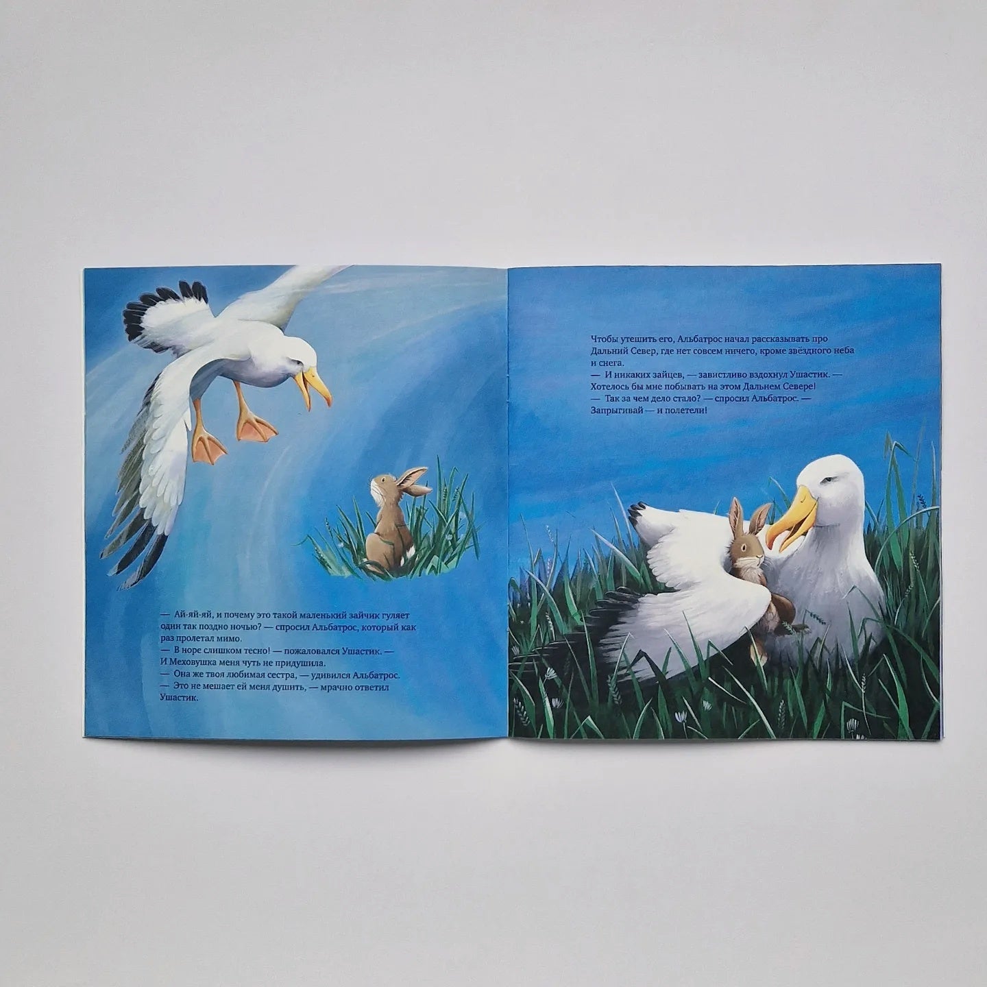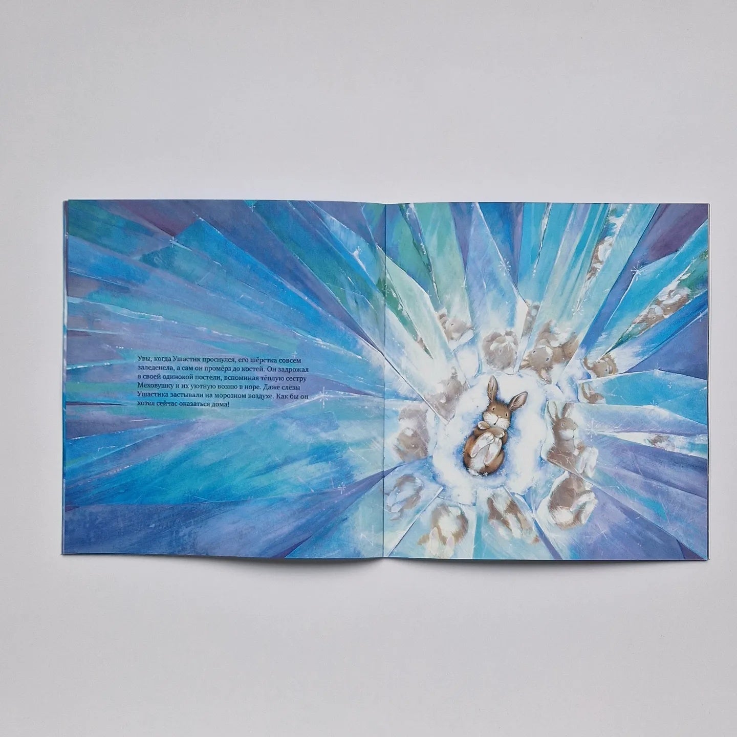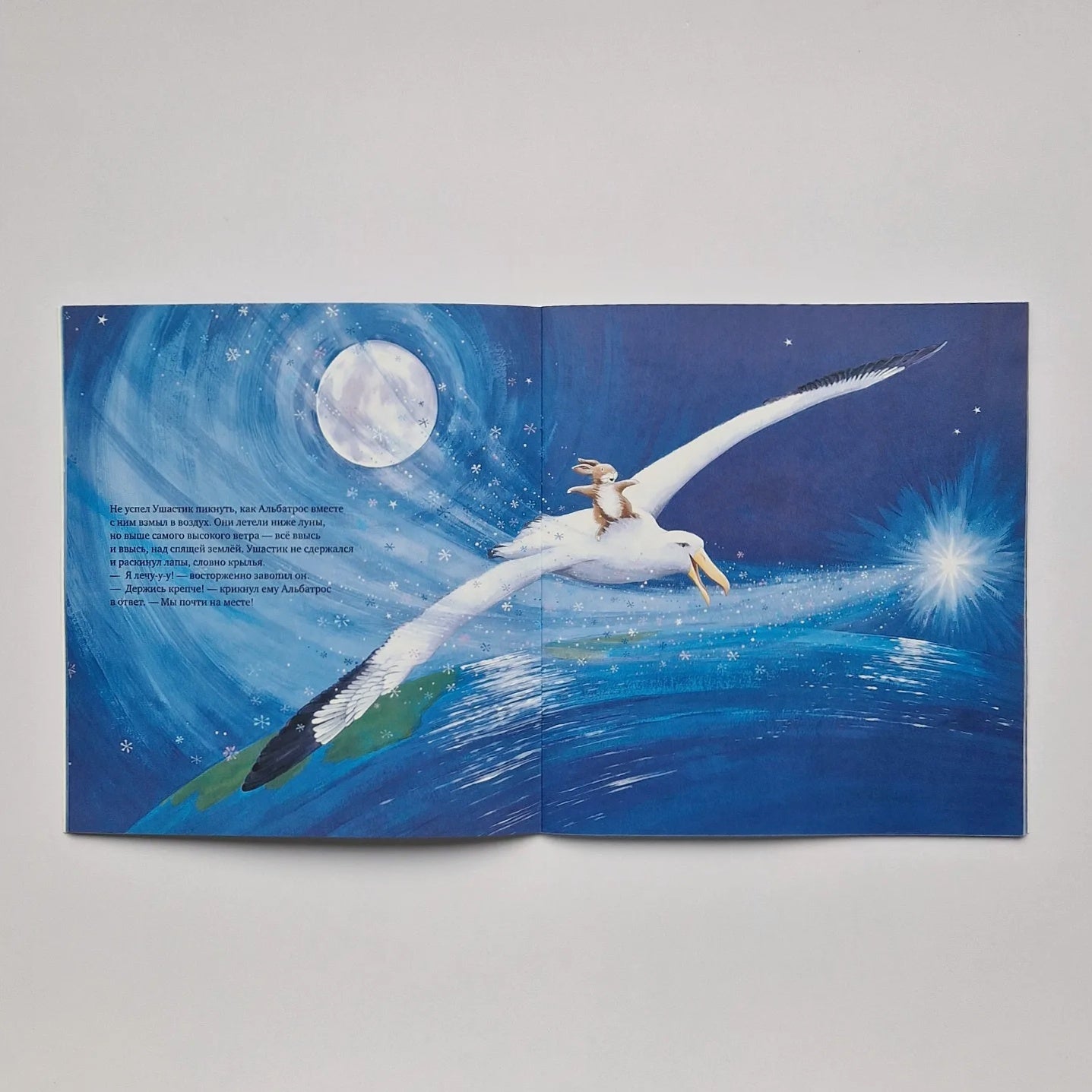 Бедный Ушастик никак не может уснуть — уж очень тесно в их норке. А сестрица Меховушка все норовит обнять брата покрепче. Ушастик решает сбежать из дома. Он встречает Альбатроса, который рассказывает ему о Дальнем Севере, где совсем ничего и никого нет, только звездное небо и снег. Ушастик отправляется в путешествие вместе с новым другом, но в дороге с ним приключается беда. Он остается совсем один... среди снега и льда. Сможет ли зайчик выбраться из передряги и вернуться домой?