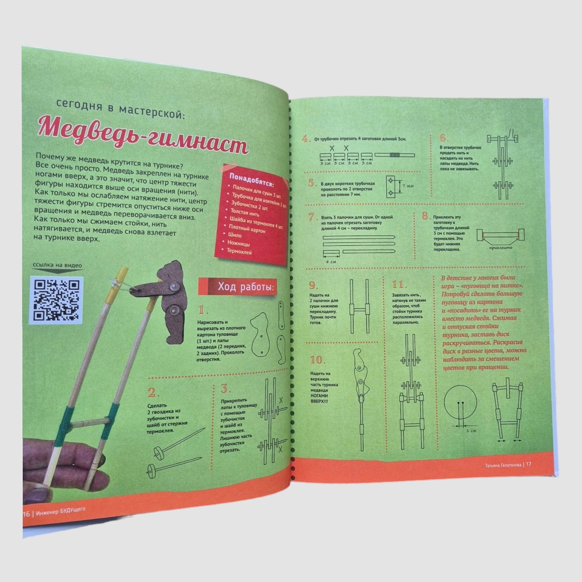 В каждом разделе несколько поделок (мастерилок). Вы узнаете название каждой мастерилки, а также найдете ее краткое описание и область применения, фото конечного результата, QR код, ведущий на видеоролик, список материалов и инструментов, подробную схему - инструкцию сборки. Все инструкции в книге позволяют юному инженеру вносить изменения в конструкцию в зависимости от наличия материалов, инструментов или видения конструкции маленьким автором. Именно это необходимо для развития мышления и творческих способностей. Для родителей и педагогов эта книга станет своеобразным методическим пособием ведущим, подсказывающим, направляющим.