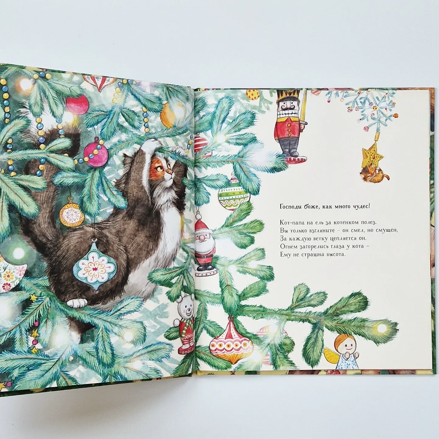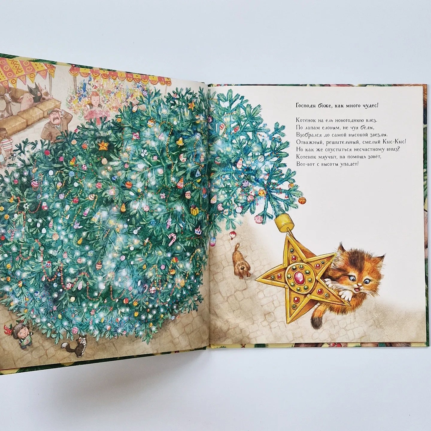 «Нужно верить в чудеса, и тогда они непременно произойдут!» — утверждает Маргарет Махи, известная детская писательница, лауреат Международной премии имени Андерсена. Вот и в её доброй и весёлой сказке не обошлось без чуда, как и полагается в Рождество. Шустрый котёнок забрался на ёлку, установленную на площади в канун праздника. Глупыш залез на самую верхушку — туда, где красовалась яркая звезда, — и не смог спуститься. Кто же придёт на помощь незадачливому котёнку ?..