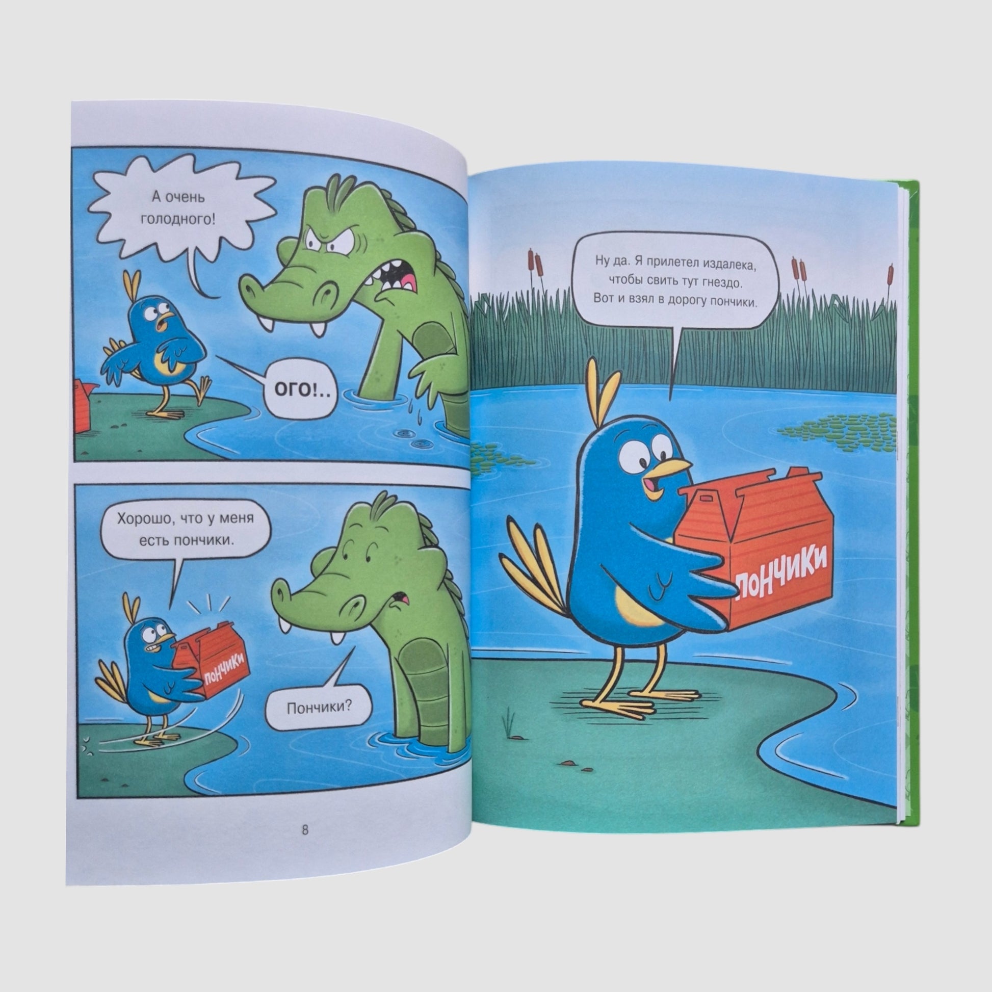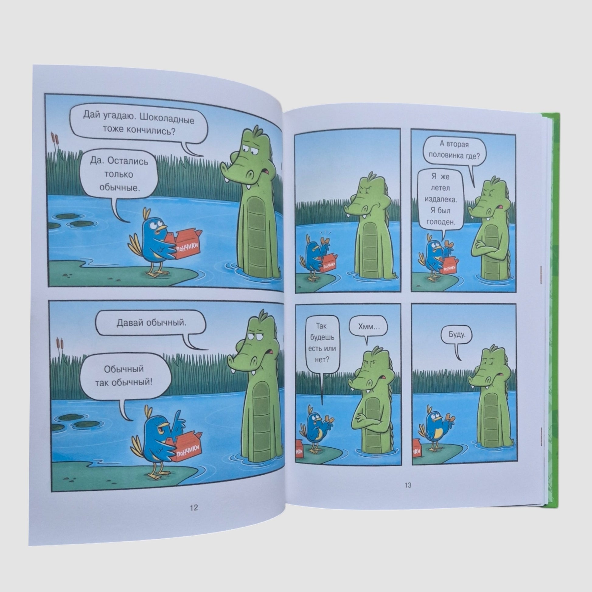 «Клюф и Алли. Та ещё парочка» – это смешной комикс для начинающих и продолжающих читателей. Удобный, чёткий шрифт и короткие реплики в «пузырях» помогут почувствовать себя увереннее тем, кто недавно перешёл к самостоятельному чтению. А добрый юмор, занятная игра слов и обаятельные персонажи с характером понравятся всем без исключения!