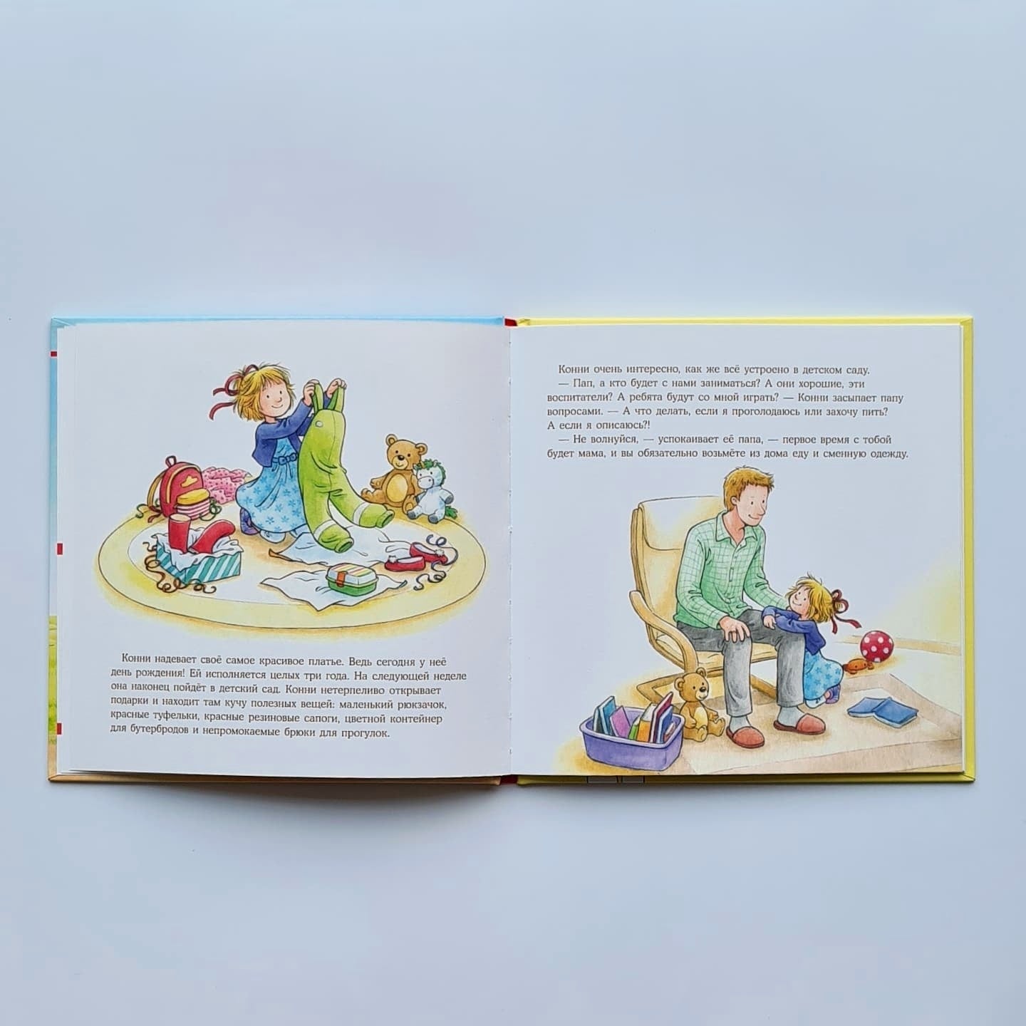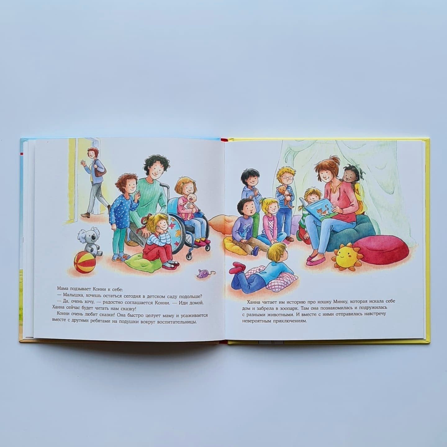 А благодаря запоминающимся и большим иллюстрациям юный слушатель сможет вообразить себя на месте Конни — и во время первой встречи с воспитательницей, и когда находит новых друзей, и когда вместе с этими новыми друзьями слушает увлекательный рассказ... Эта книга — идеальная подготовка для всех, кому, как и Конни, скоро предстоит впервые пойти в детский сад...