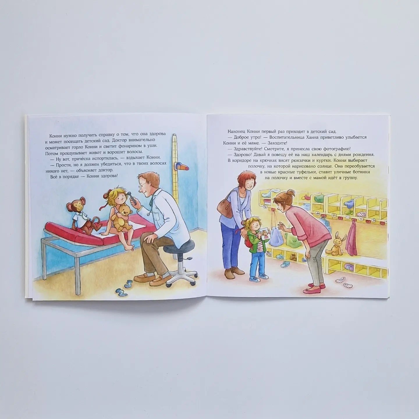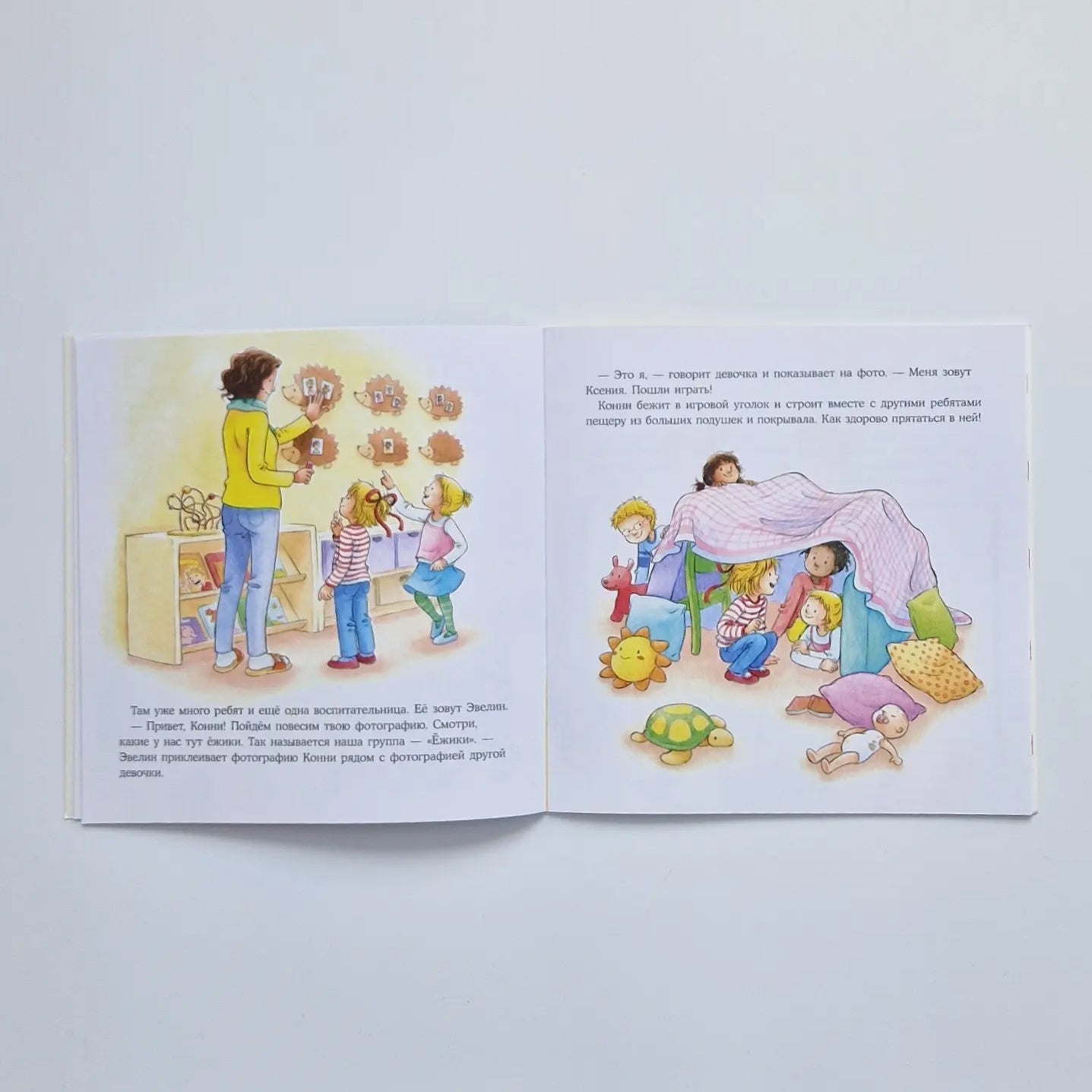 А благодаря запоминающимся и большим иллюстрациям юный слушатель сможет вообразить себя на месте Конни — и во время первой встречи с воспитательницей, и когда находит новых друзей, и когда вместе с этими новыми друзьями слушает увлекательный рассказ... Эта книга — идеальная подготовка для всех, кому, как и Конни, скоро предстоит впервые пойти в детский сад...