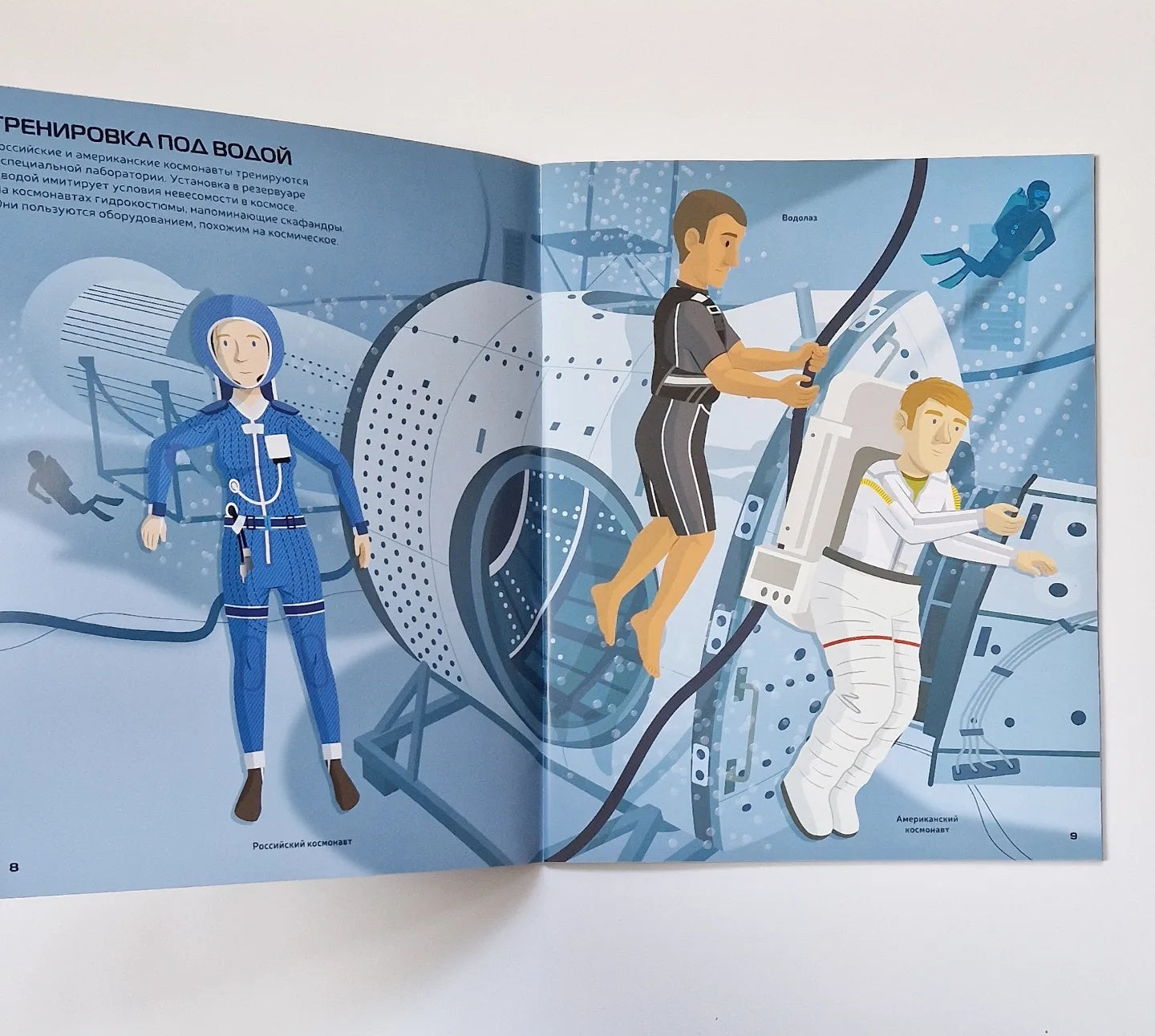 Посмотри, как Космонавты тренируются перед полётом на орбиту, и подбери им скафандры и оборудование. Познакомься с самыми известными космонавтами - ты узнаешь, кто первым полетел в космос, кто высадился на Луне, а кто управлял самым настоящим луноходом.