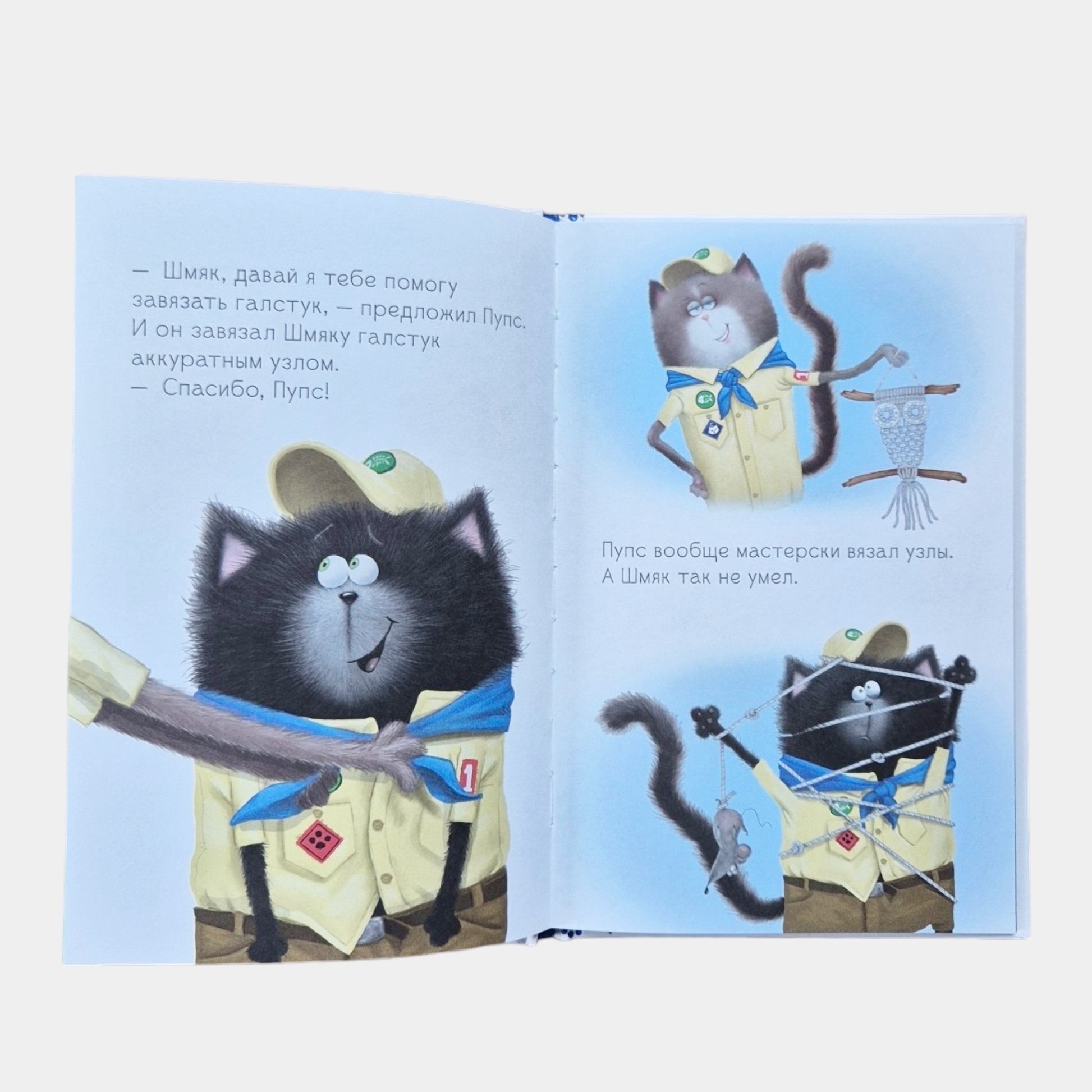Новый скаут в отряде - такой крутой! Он лучше всех умеет разводить огонь и вязать узлы. Вот бы Шмяку стать таким,как он! Котята отправляются в поход. И оказывается, что ловкость и сила - это ещё не всё. Кто позаботился об отряде? Кто помог другу выбраться из беды? Читайте о новых приключениях котёнка Шмяка и его друзей!