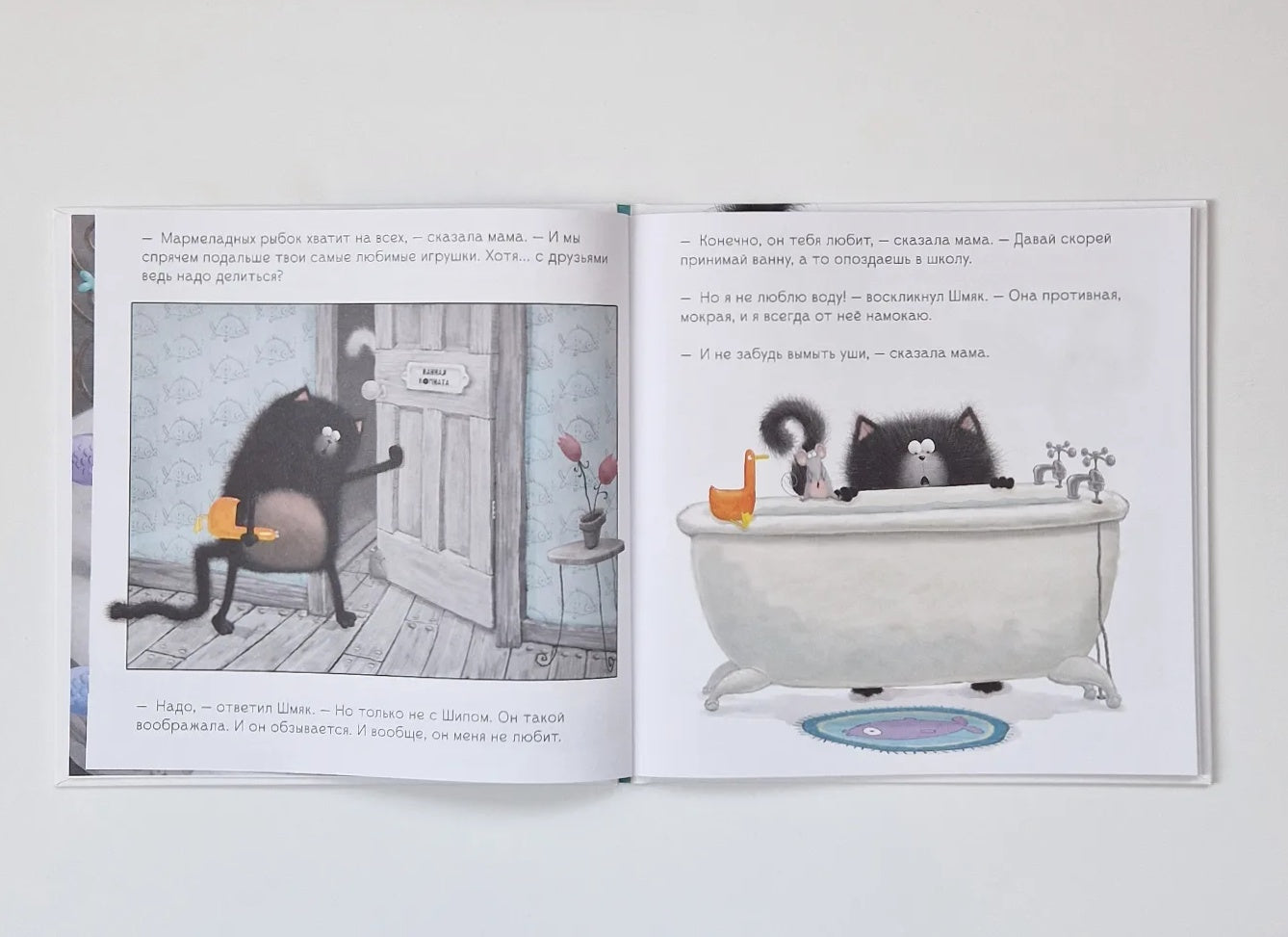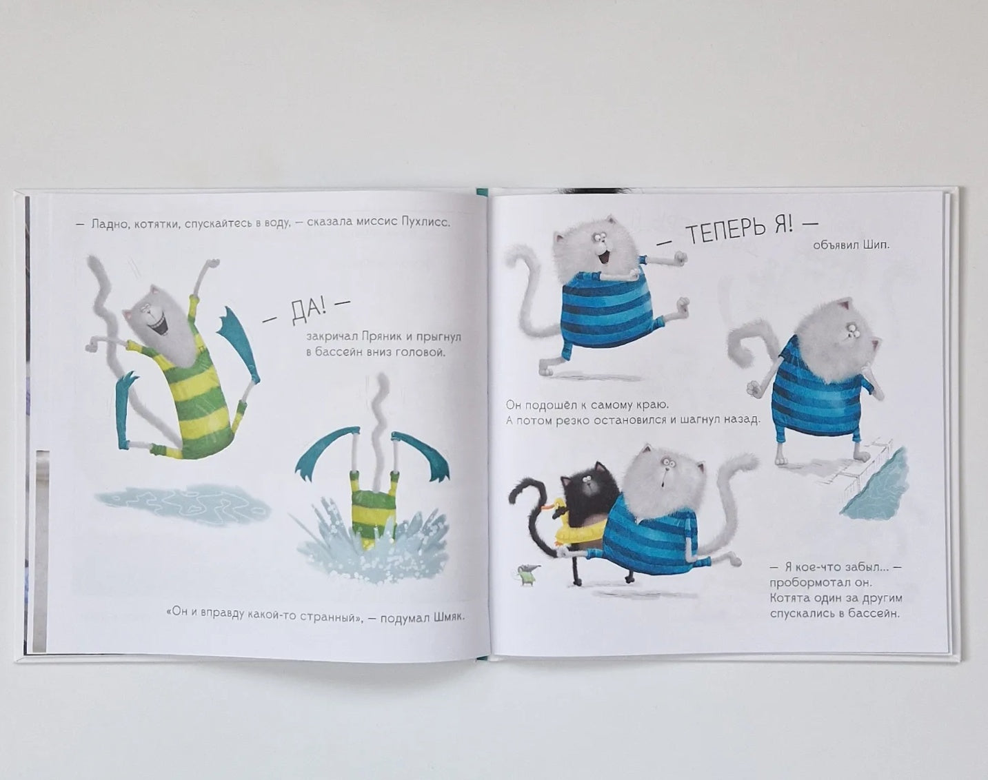 Котенок Шмяк вместе с классом отправляется в бассейн. Но Шмяк вовсе не хочет учиться плавать: вода противная, мокрая, и он от неё НАМОКАЕТ! Оказывается, его приятель Шип думает точно так же. Как же котятам решиться сделать первый шаг и войти в воду?