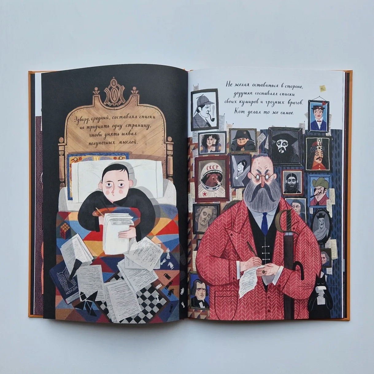 Ли́сты писали списки. Самые обычные списки. И очень необычные. Мама, папа, Уинифред, Эдвард, Фредерик, дедушка и даже кот составляли списки зимой, весной, летом и осенью. Каждый день, кроме воскресений: те были бессписочными.