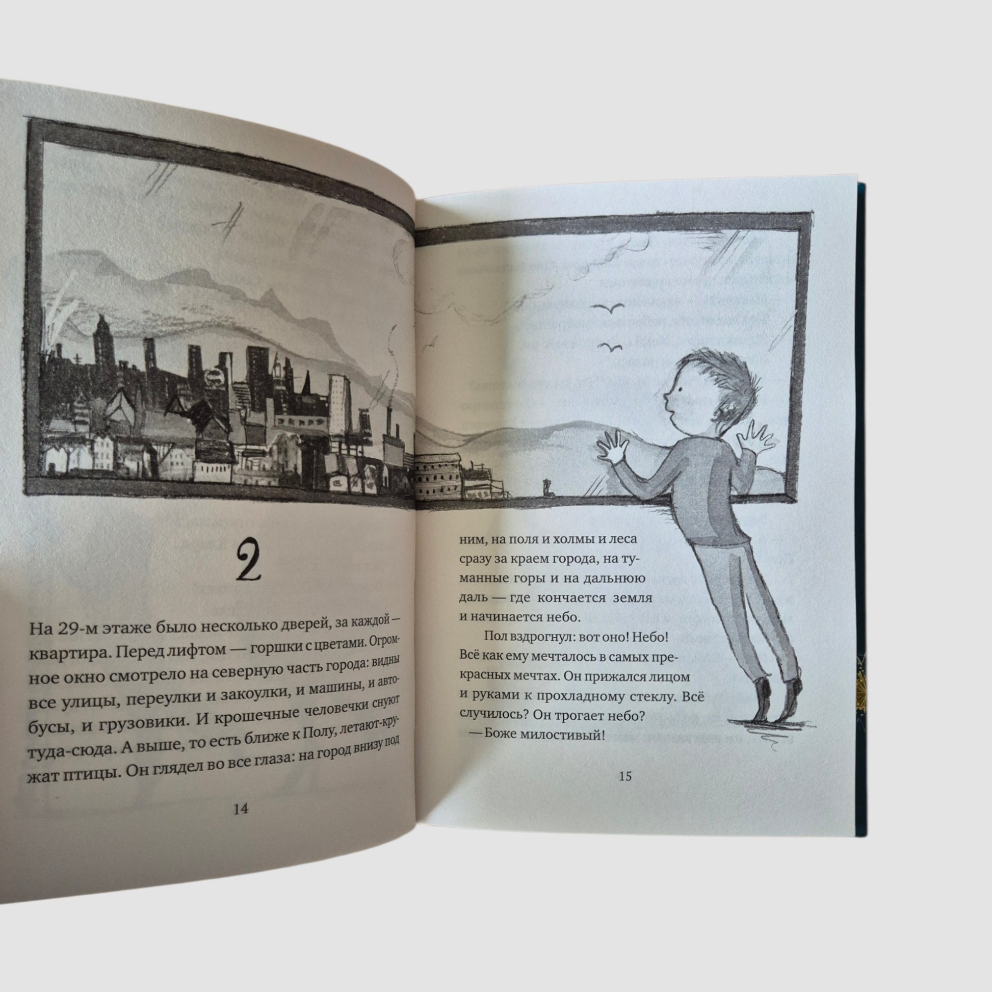 Почему, собственно, Луна не может оказаться дыркой в небе? Иллюстрации Полли Данбар плюс живое воображение читателя - и вот мы уже внутри Луны вместе с не очень-то общительным мальчиком по имени Пол, который решил однажды утром не ходить в школу, а выбраться на крышу небоскрёба и потрогать небо. Ему помогают друзья - персонажи забавные и запоминающиеся.