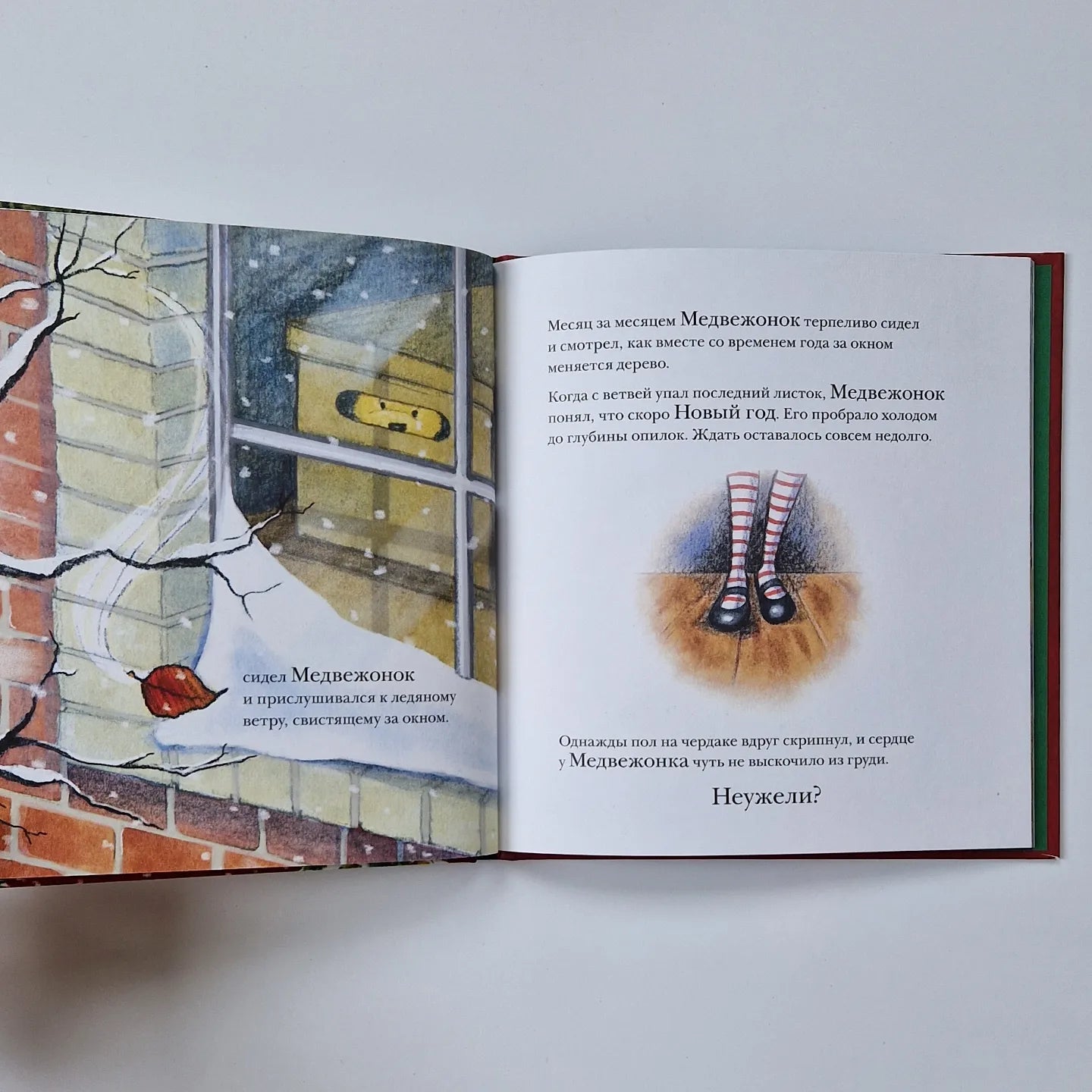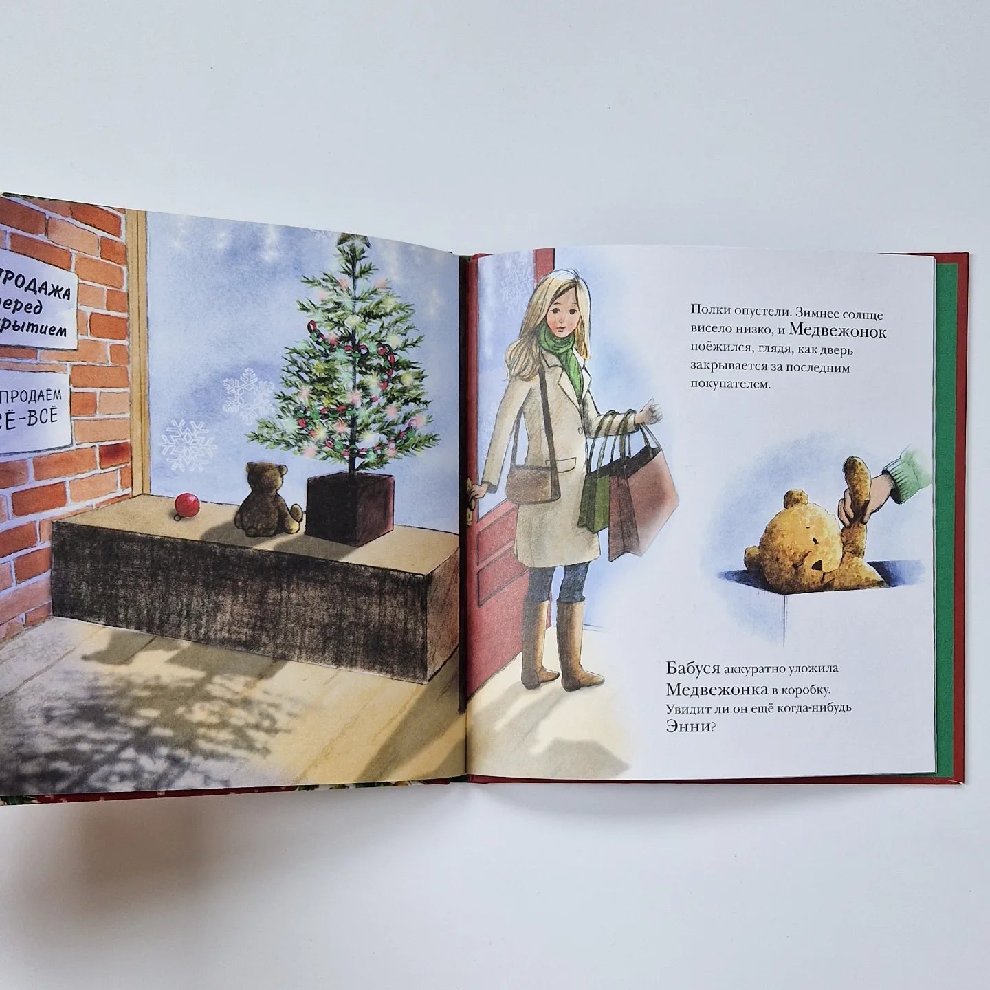 Настоящая новогодняя история о маленькой девочке Энни и её плюшевом медвежонке. Весь год Медвежонок наблюдает с чердака, где живёт, за сменой времён года и ждёт первых снежинок, которые означают приближение новогодних праздников. Ведь на праздники Энни забирает его в магазин подарков своей бабушки. Но вдруг что‑то идет не так — магазинчик закрывается, а будущее всех его обитателей становится очень неопределённым. Трогательная история и тёплые, уютные иллюстрации делают эту книгу настоящей новогодней классикой.
