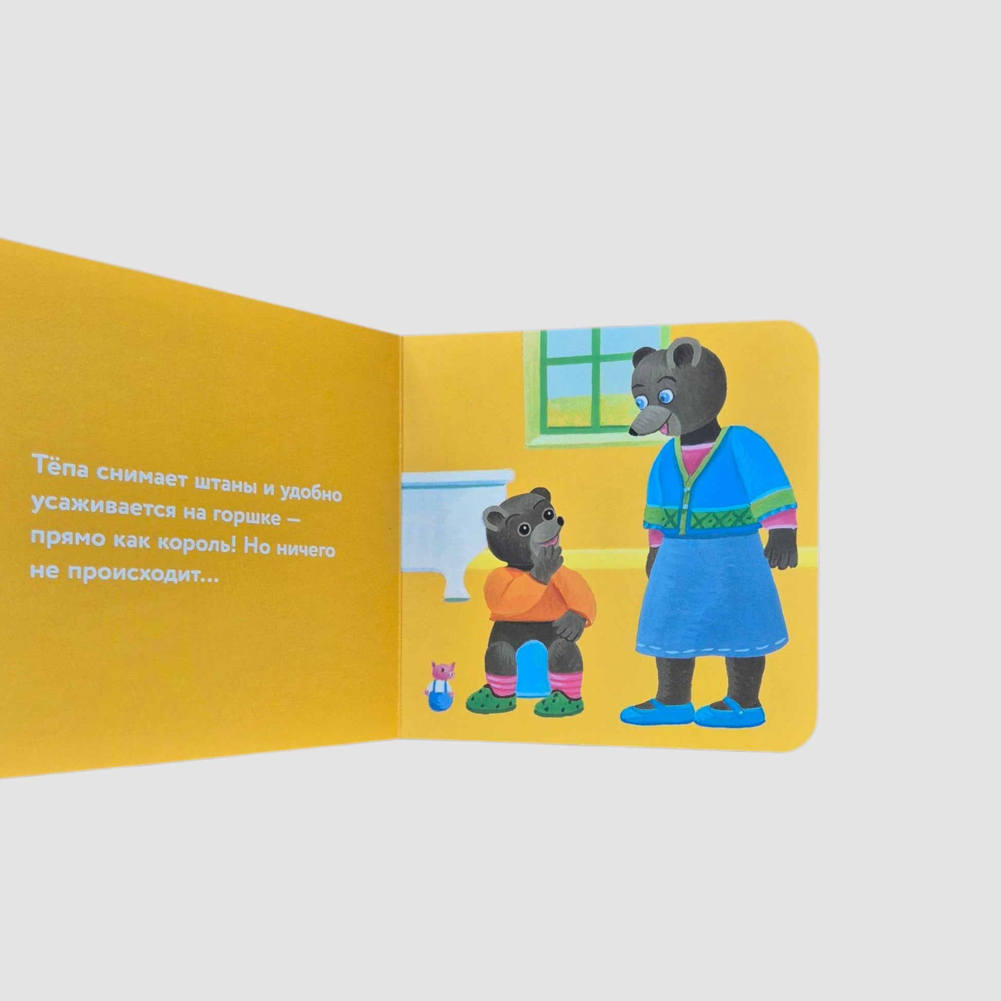 Медвежонок Тёпа играл, как вдруг... Скорее, нужно бежать на горшок! Медвежонок снимает штанишки и усаживается поудобнее. Молодец, Тёпа, ты совсем как большой!