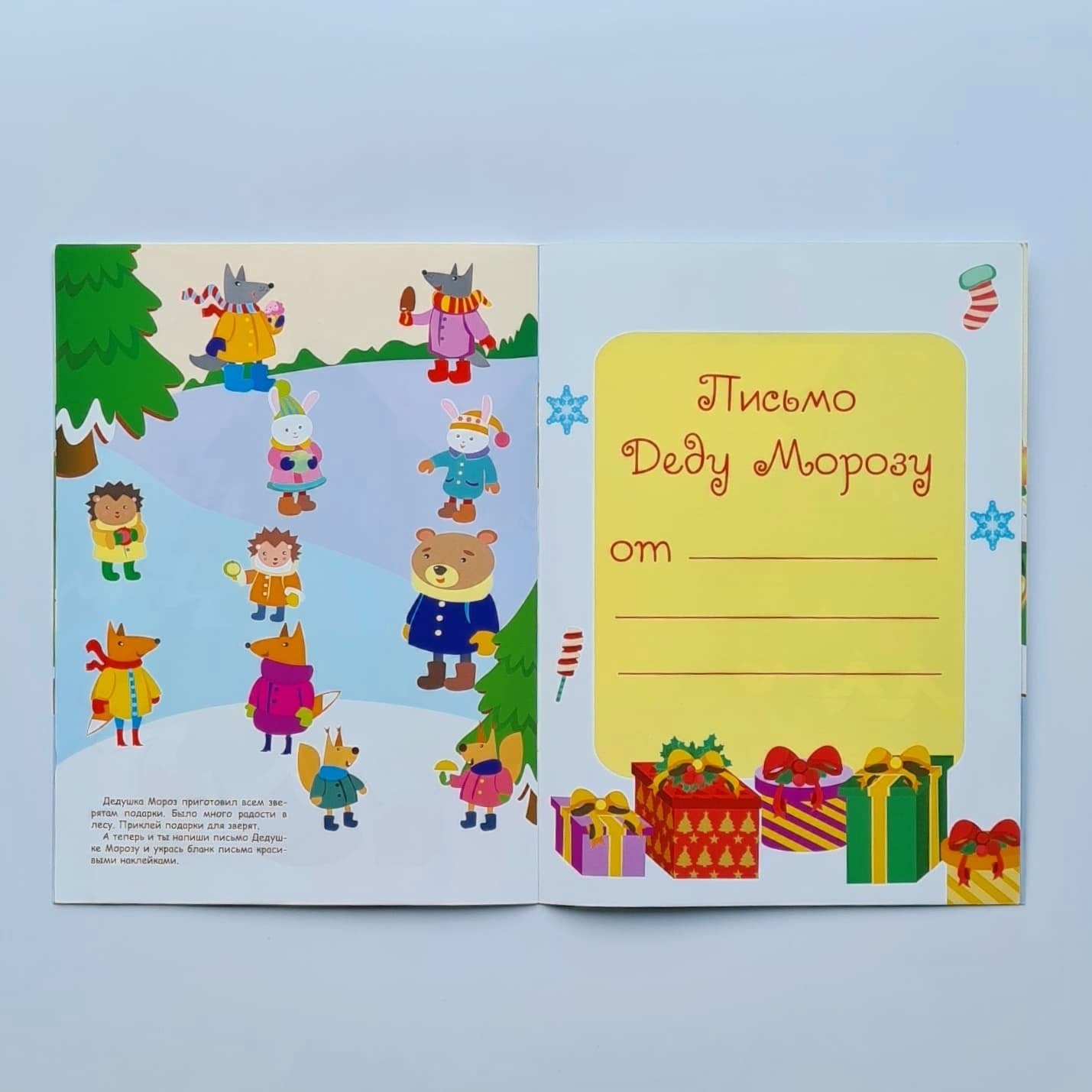 Ваш малыш уже придумал, что хочет получить на Новый год? А лесные зверюшки придумали! Прочитайте новогоднюю историю и напишите с вашим малышом Письмо Деду Морозу. А яркие многоразовые наклейки сделают вашу историю ещё интереснее и помогут вам украсить письмо!