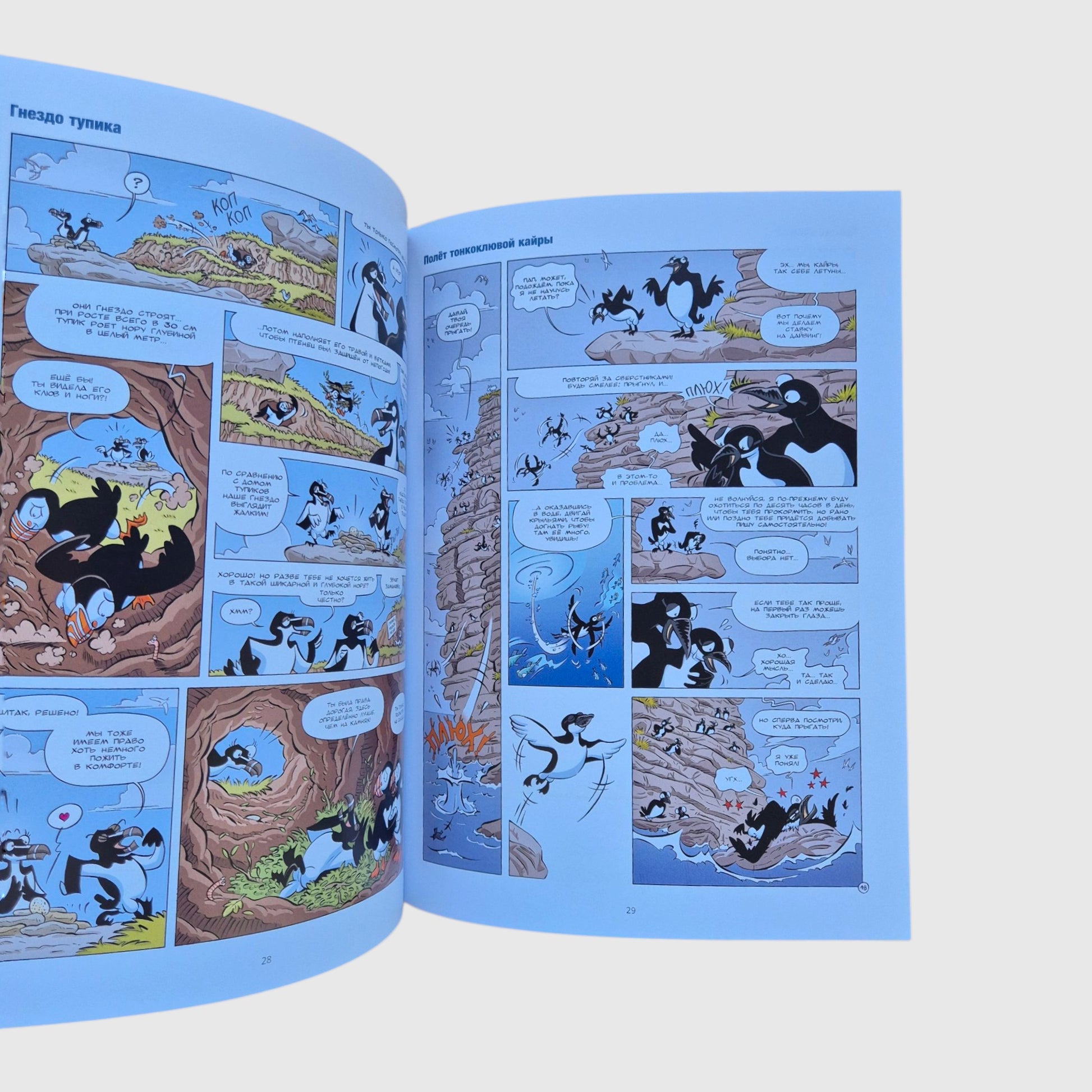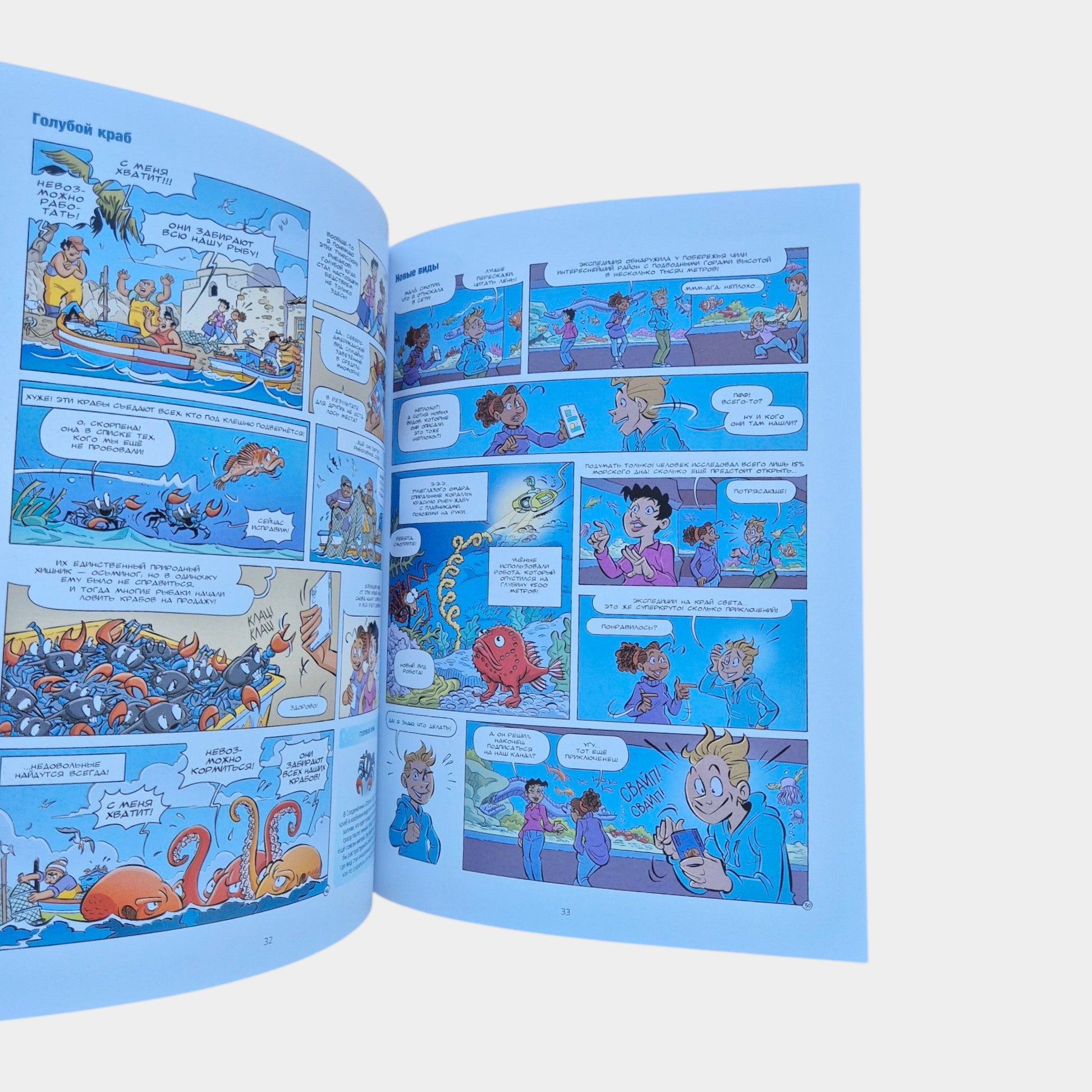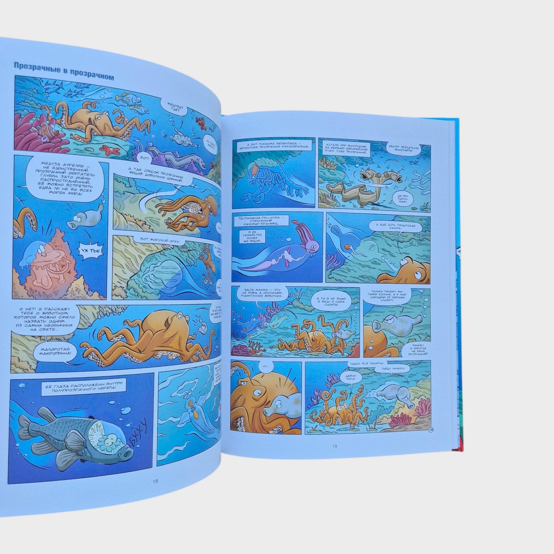 Как всегда у авторов серии, строго выверенные научные сведения подаются в юмористическом стиле, а обучающая тетрадь в конце тома позволяет любопытным читателям закрепить прочитанное. Особо отметим, что авторы умеют не только шутить, но и искренне восхищаться чудесами океана. А как иначе, если на сегодняшний день учеными исследовано всего 15% океанического дна... Значит, нас ждут новые открытия и еще больше историй про морских животных!