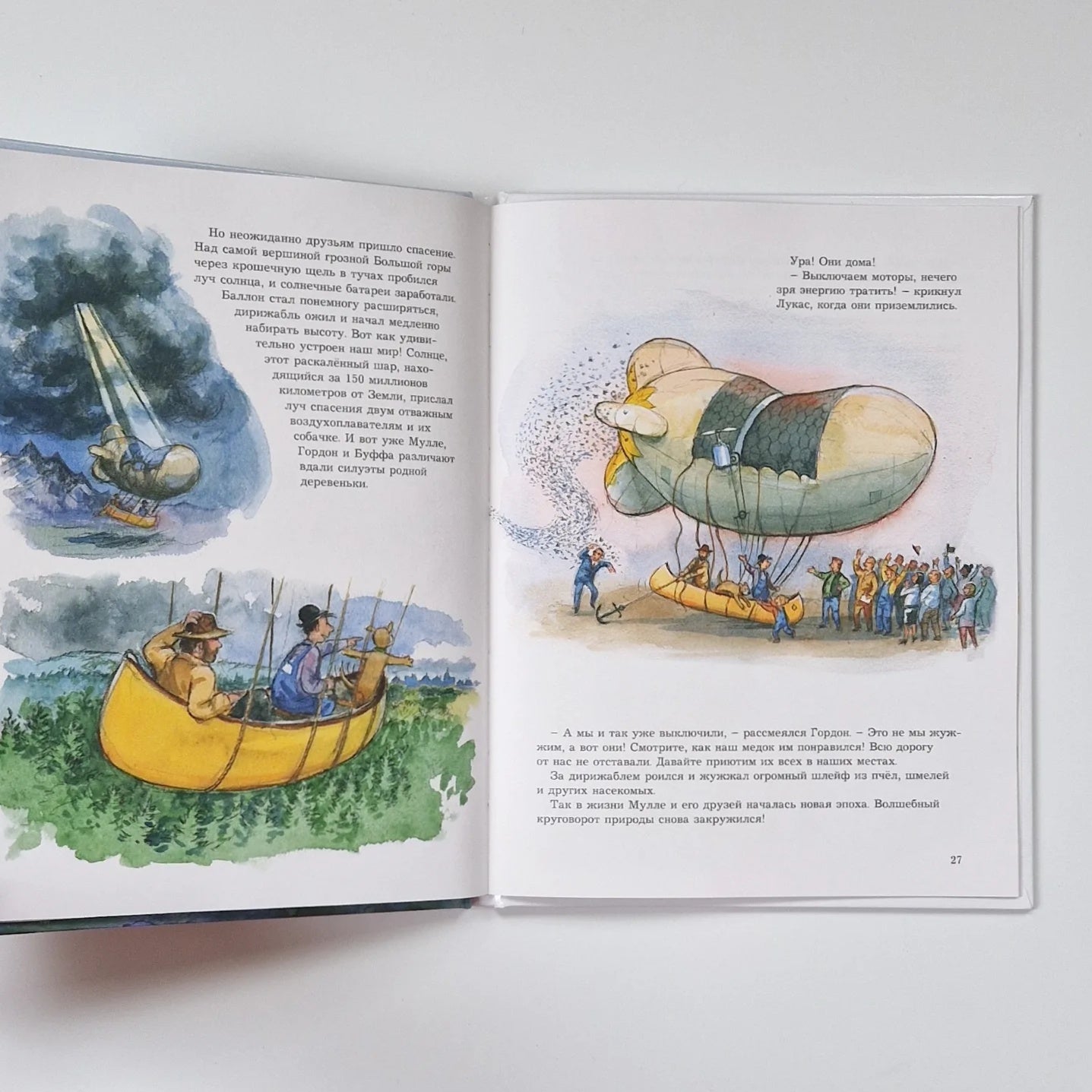 В книге "Мулле Мек и "Звонкий шмель" Мулле строит дирижабль. А всё потому, что деревне, где живут Мулле Мек, Буффа и все их друзья, грозит серьёзная опасность. В округе почти не осталось пчёл, шмелей и других насекомых – все они куда-то исчезли. А раз нет насекомых, то скоро погибнут и цветы, и растения, и животные… Ведь в природе всё взаимосвязано, и от жизни одой букашки может зависеть будущее всех нас! Чтобы спасти родную деревню, Мулле Мек строит дирижабль и летит за Большую гору на поиски насекомых.