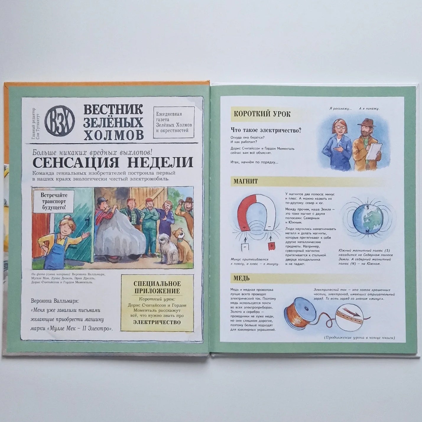 На этот раз Мулле Мек решил собрать экологически чистый электромобиль. Вот только в электричестве он не очень-то разбирается, поэтому на помощь ему приходят друзья -Лукас Дизель и Дорис Считайссон. Они расскажут Мулле и читателям, что такое электрический ток, откуда он берётся и как работает.