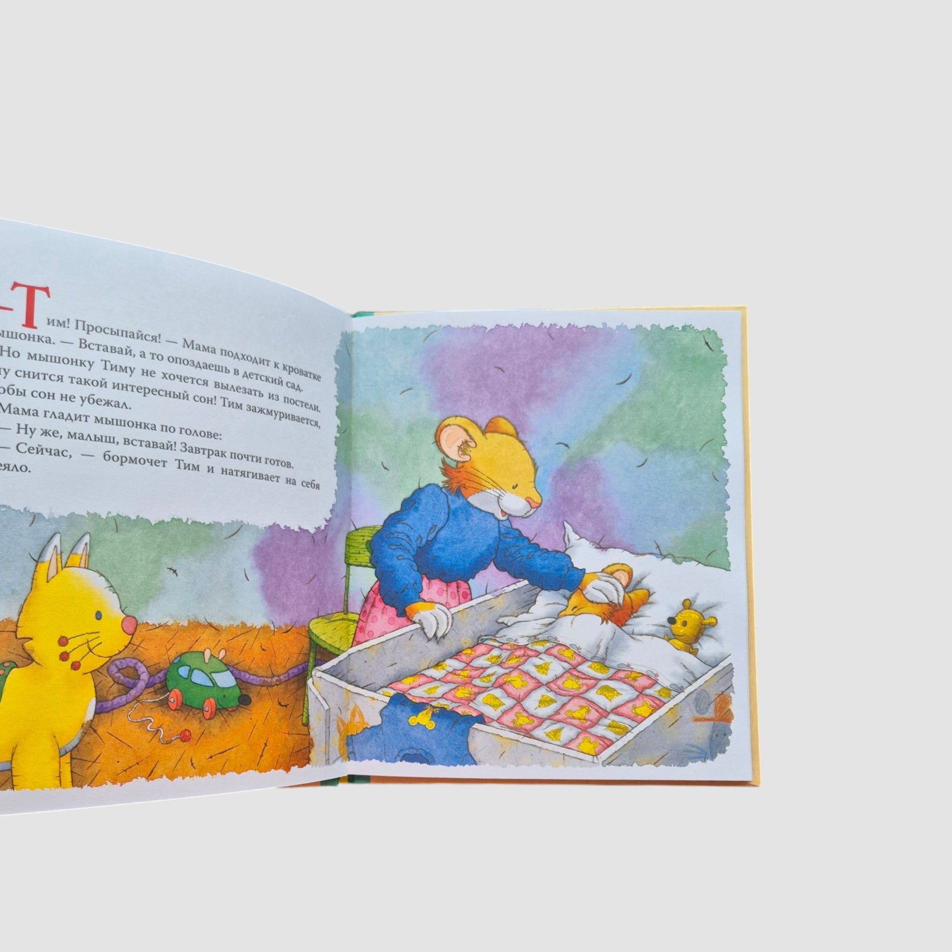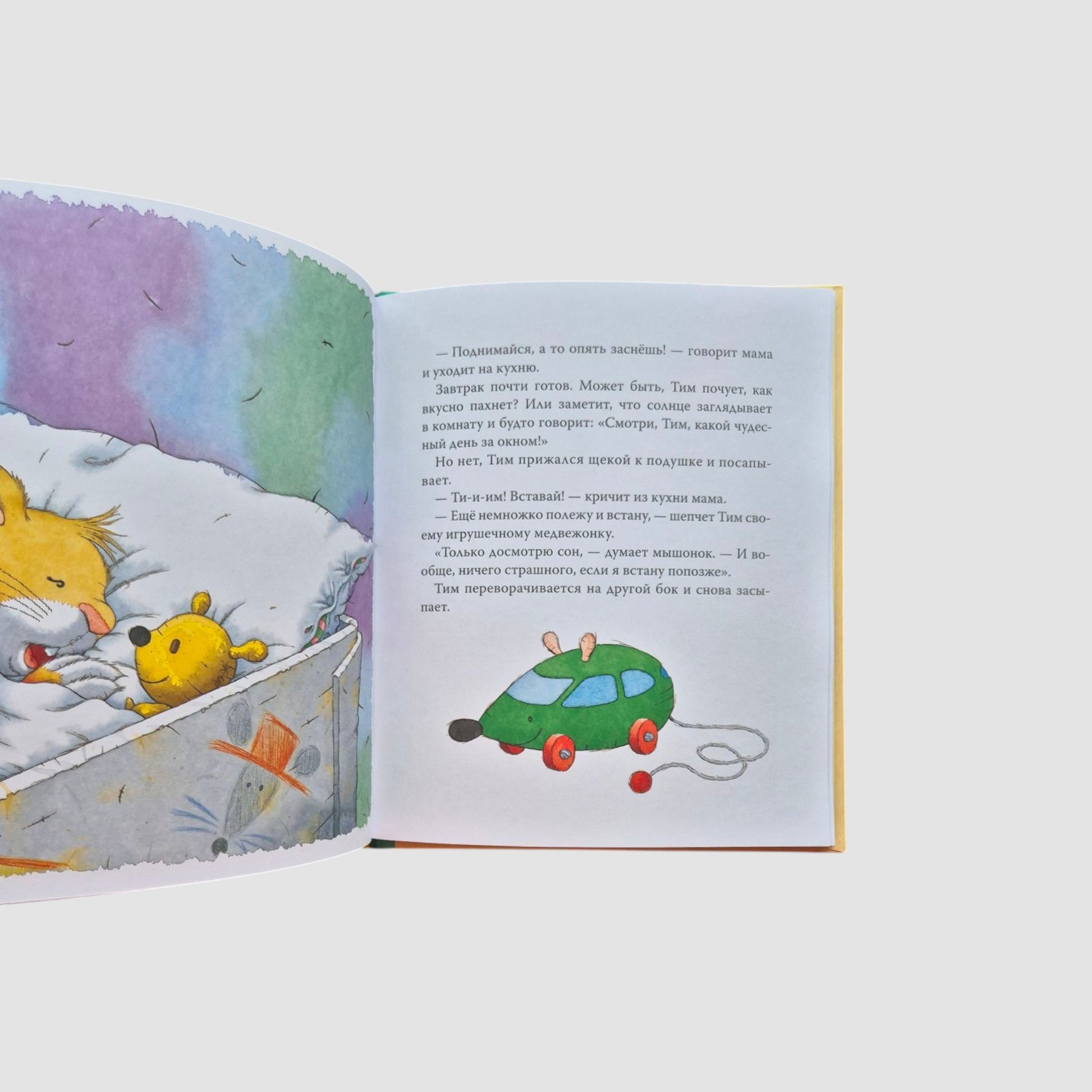 Мышонок Тим хотел подольше понежиться в теплой постельке. Доедать завтрак он тоже не спешил. А после еды вдобавок взялся за игрушки… Но ведь в детском саду сегодня экскурсия, и Тим рискует опоздать!
