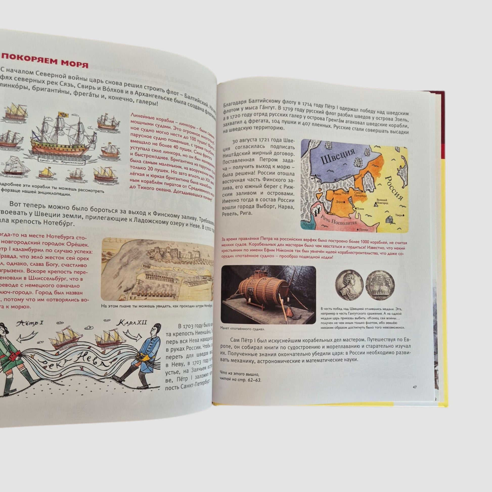 Эпоха Петра I — один из самых важных, переломных периодов в истории Российского государства. Читатели побывают в России конца XVII - начала XVIII века, узнают о победах русского флота и армии, о том, как был основан Санкт-Петербург и когда праздновали Новый год. Оригинальная детская энциклопедия расскажет не только о ключевых событиях эпохи, но и о повседневной жизни детей и их родителей. Куда пойти учиться? Почему на сладкое дают солёные огурцы? Какая игрушка никогда не сломается? Зачем мальчиков наряжают в платьица? Ответы на эти и многие другие вопросы дворянского и крестьянского быта ждут ребят на страницах нашей энциклопедии. Это уникальное издание по истории России станет для юных читателей настоящим путеводителем в захватывающий мир прошлого. Для младшего школьного возраста.