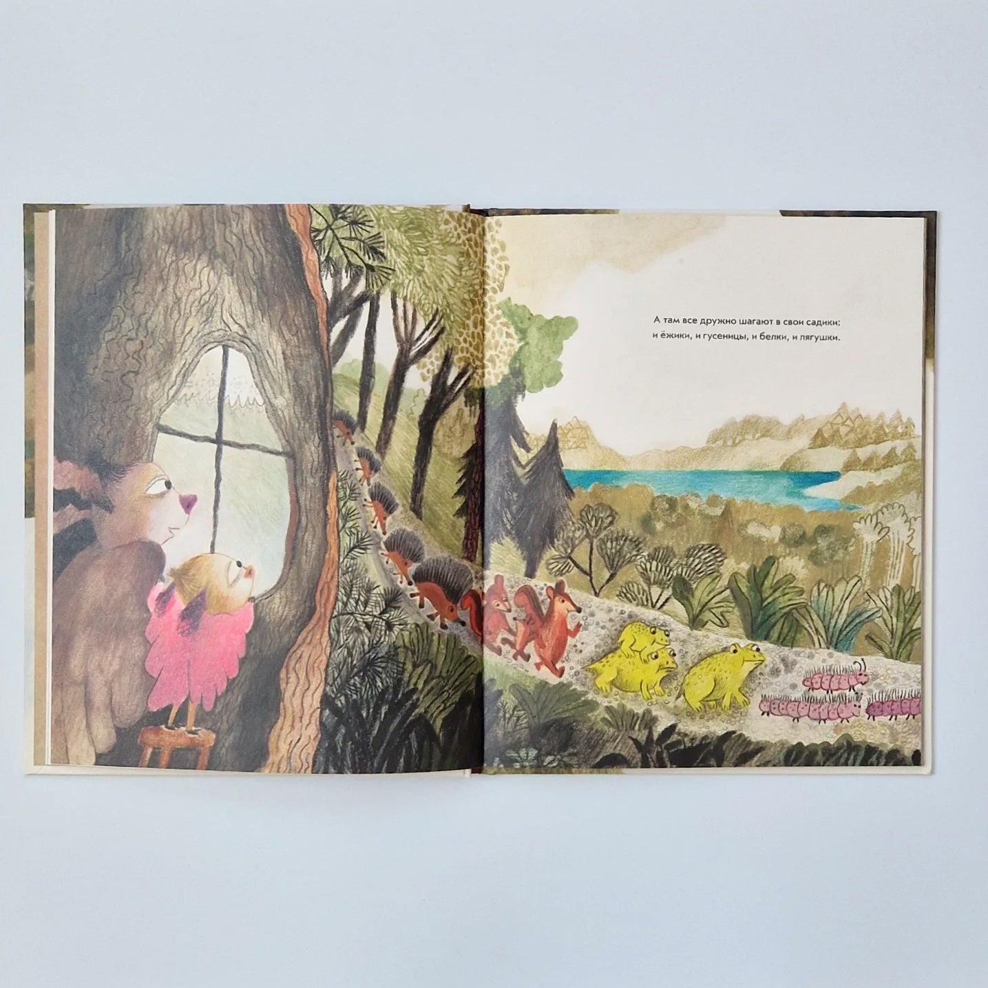 Эта книжка о походе в садик и расставании с родителями хорошо показывает, что может происходить в голове малышей, когда они вынуждены столкнуться с неизвестностью и покинуть родителей. Она одновременно и смешная и нежная, а рисунки Беатриче Алеманьи, без сомнения, прекрасны.