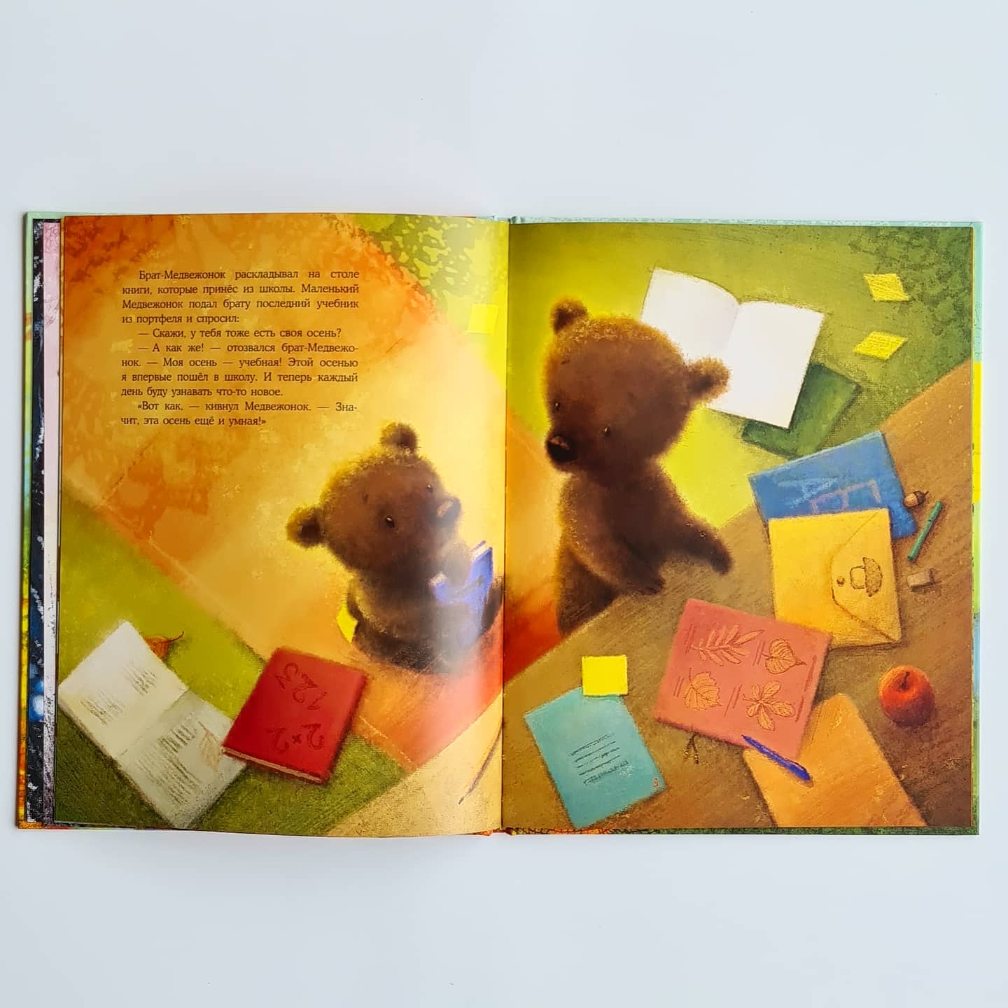 Маленький Медвежонок родился зимой и видел свой первый снег, а весной наблюдал, как набухают почки и ждал яркого летнего солнышка… А что же такое осень, о которой все так говорят? У бабушки-Медведицы осень медовая и сладкая, у мамы - хлопотливая, у старшего брата - увлекательная, а у папы-Медведя - красочная и вкусная, как грибной суп. Какая же осень у маленького Медвежонка? Тёплые и уютные рисунки Геты Белоголовской чудесно дополняют эту сказочную историю и познакомят юных читателей с удивительным миром природы.