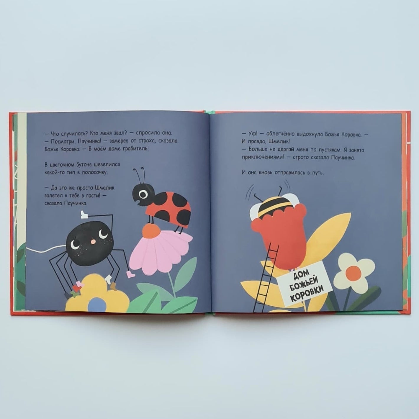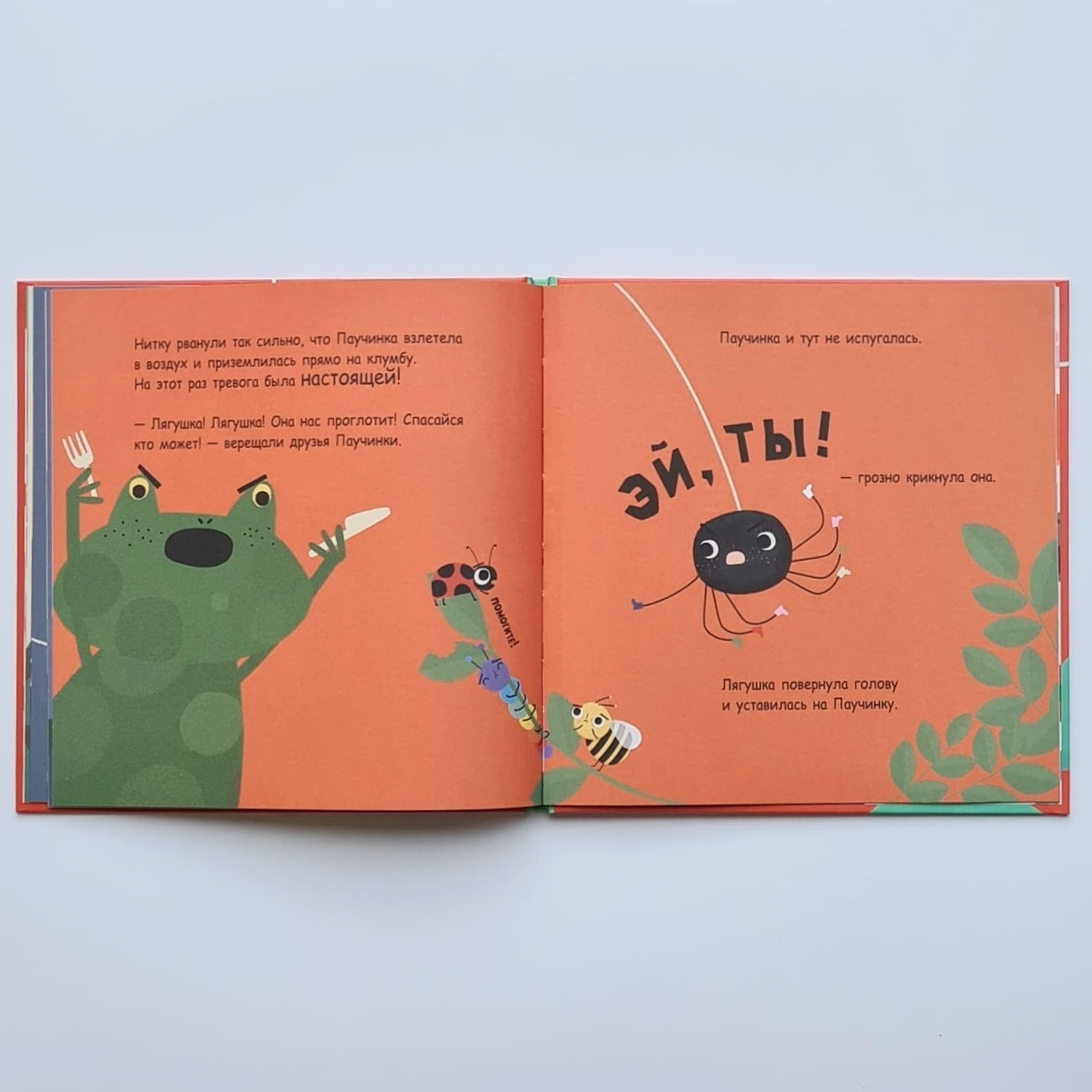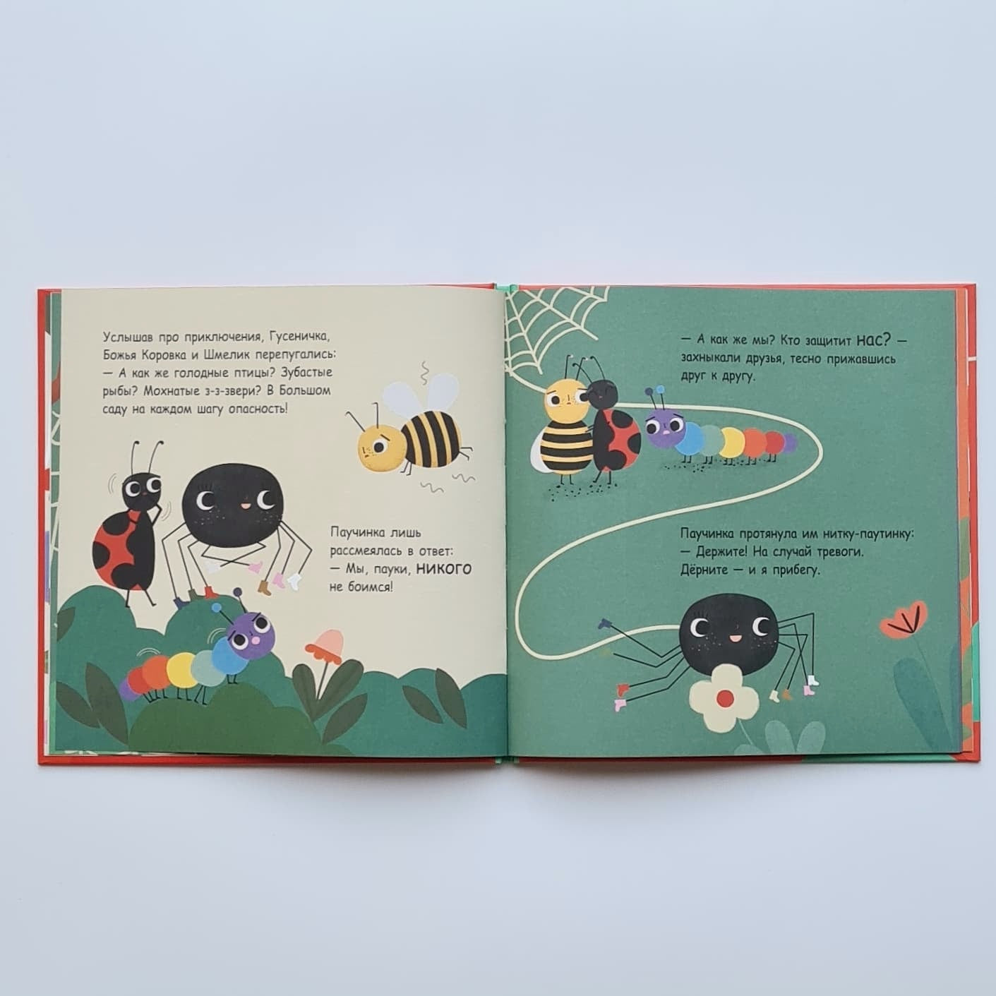 Молодая британская писательница С. Марендаз и художница Карли Гледхилл рассказывают нам две истории: в первой мы воспринимаем события глазами Паучинки; во второй видим то, что происходит на самом деле. Поэтому малышу нужно очень внимательно рассматривать книжку, водить по ней пальчиком и тогда перед ним раскроется авторский замысел во всей его полноте.