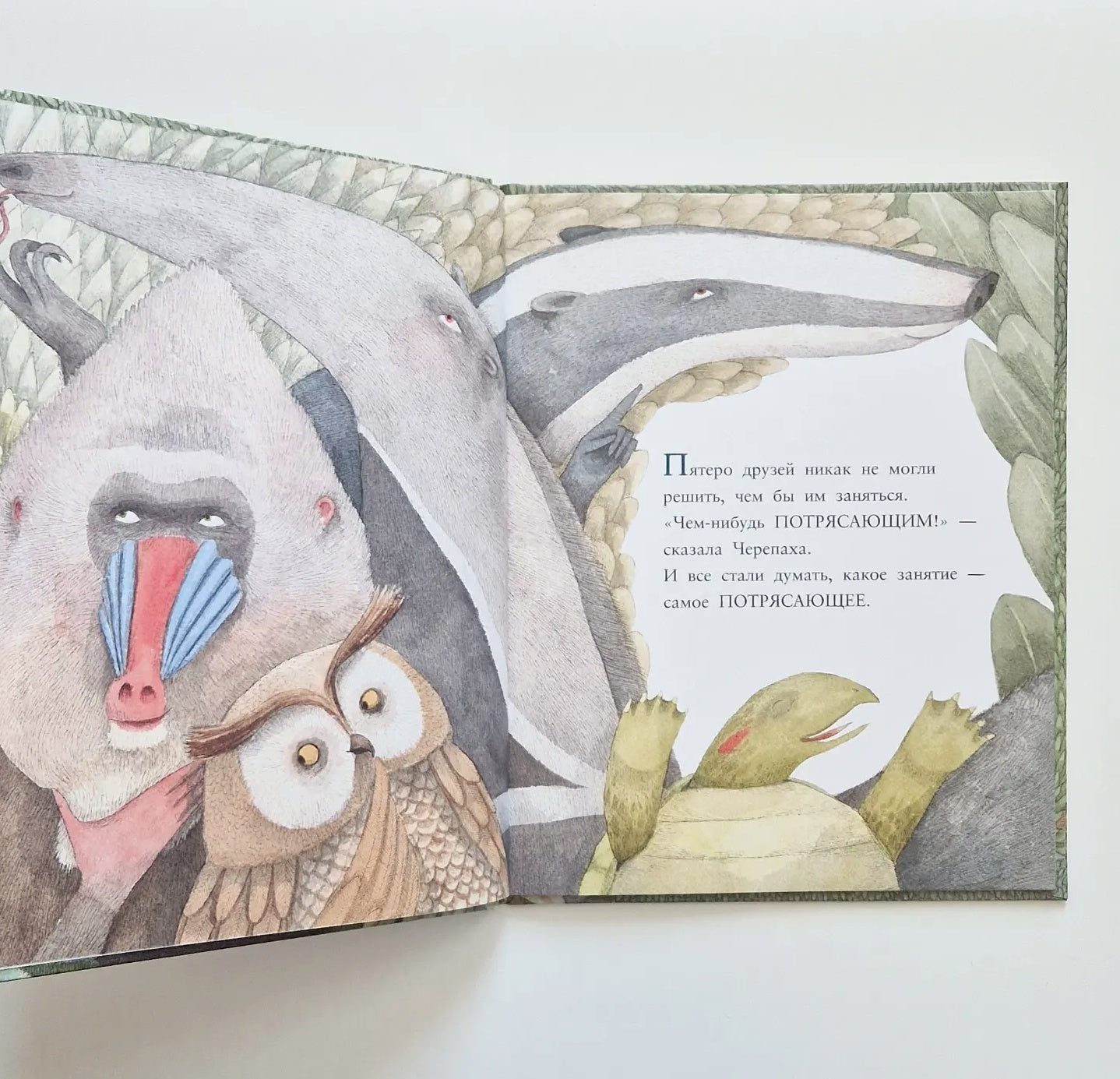 Сова, Барсук, Мандрил, Черепаха и Муравьед ищут, чем бы таким потрясающим заняться.