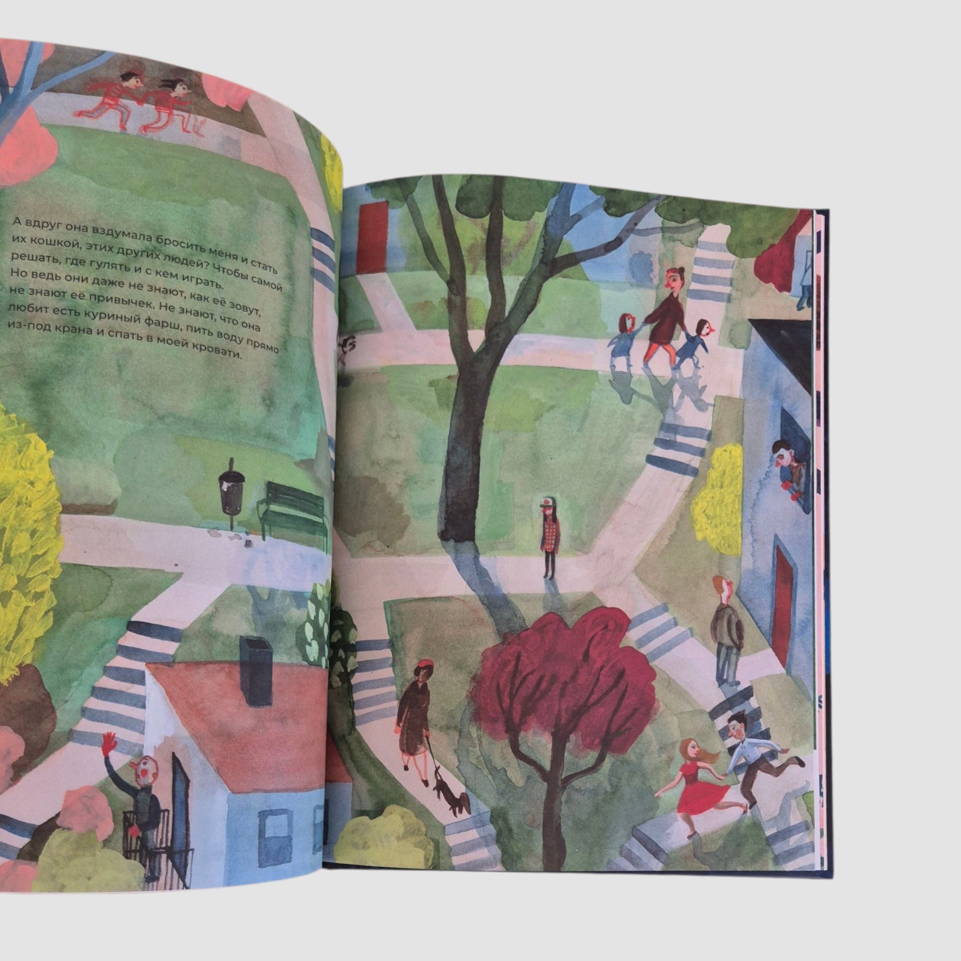 Но однажды кошка отказалась следовать за человеком. Ей надоело! Она пошла в другую сторону, прочь от хозяйки, подальше от их привычной тропинки. Хозяйка не на шутку испугалась. Что делать: остаться или идти за кошкой? И куда вообще она направилась? А вдруг они заблудятся и никогда не вернутся домой?
