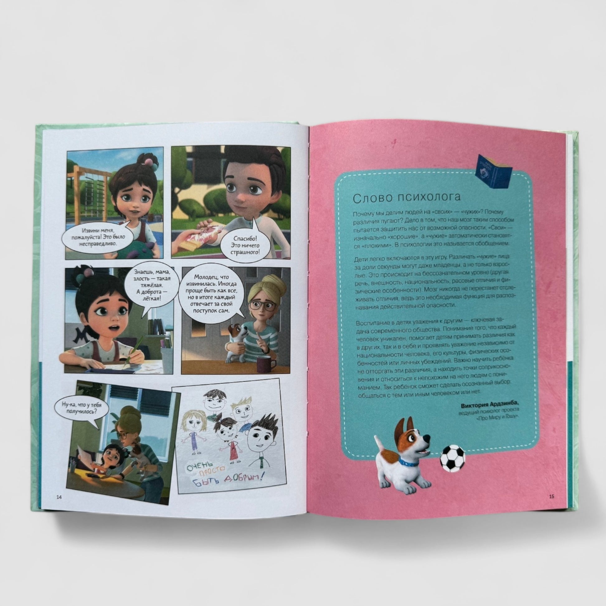 Серия комиксов «Про Миру и Гошу» — это герои любимого мультсериала, которые учатся взаимодействию с окружающим миром и собой. В каждом комиксе размещено 5 историй, связанных одной темой: управление эмоциями, дружба и выстраивание личных границ или создание теплых отношений с близкими. В конце каждой истории размещены комментарии психолога.Автор проекта — писательница, журналист и продюсер Наталья Ремиш.