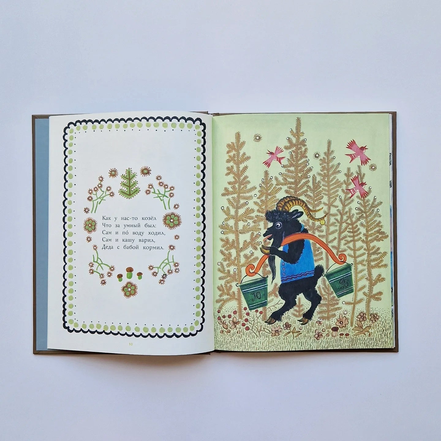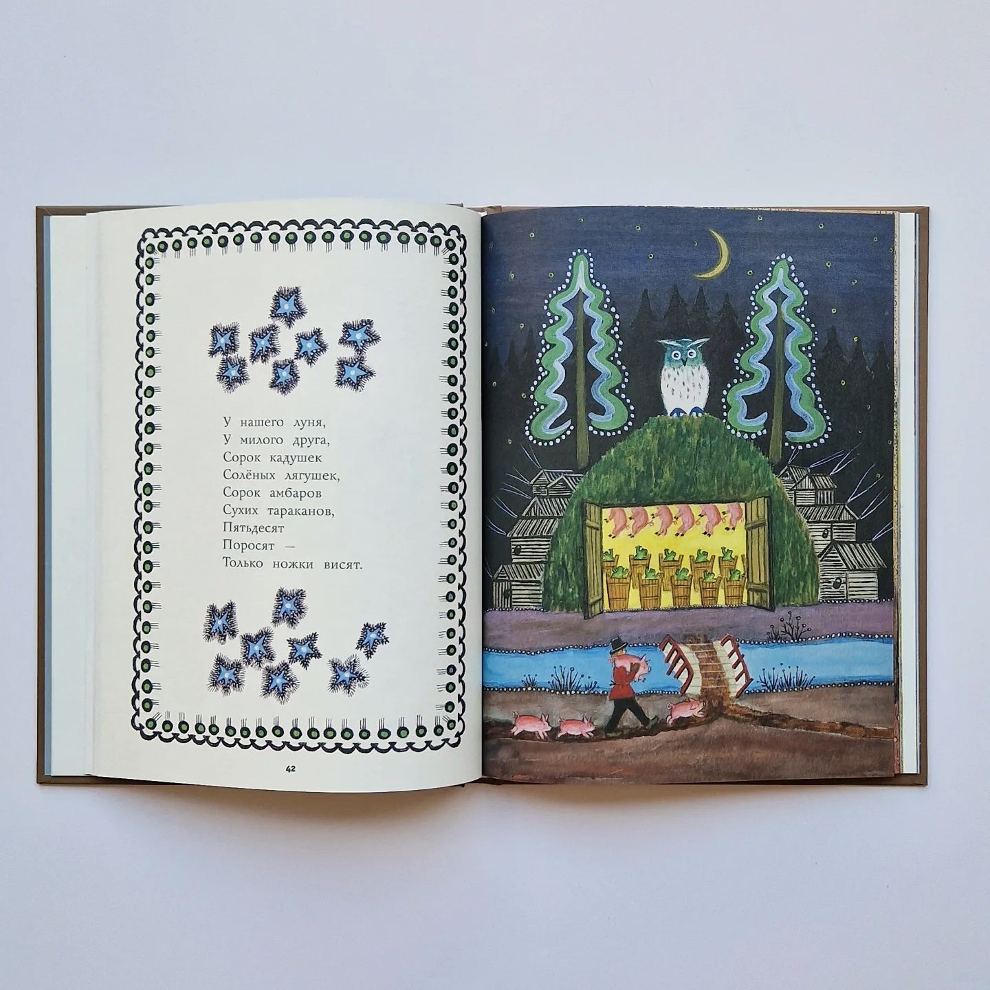 Народные песенки и потешки — та самая детская классика, с которой начинается вхождение ребёнка в мир слова и образа. Запоминаются и рисунки Юрия Васнецова — простые, похожие на детские, и от этого очень трогательные. Детям очень интересно разглядывать васнецовских зверушек и о них рассуждать. Как и сами фольклорные строчки, рисунки художника запоминаются «от нуля и на всю жизнь».