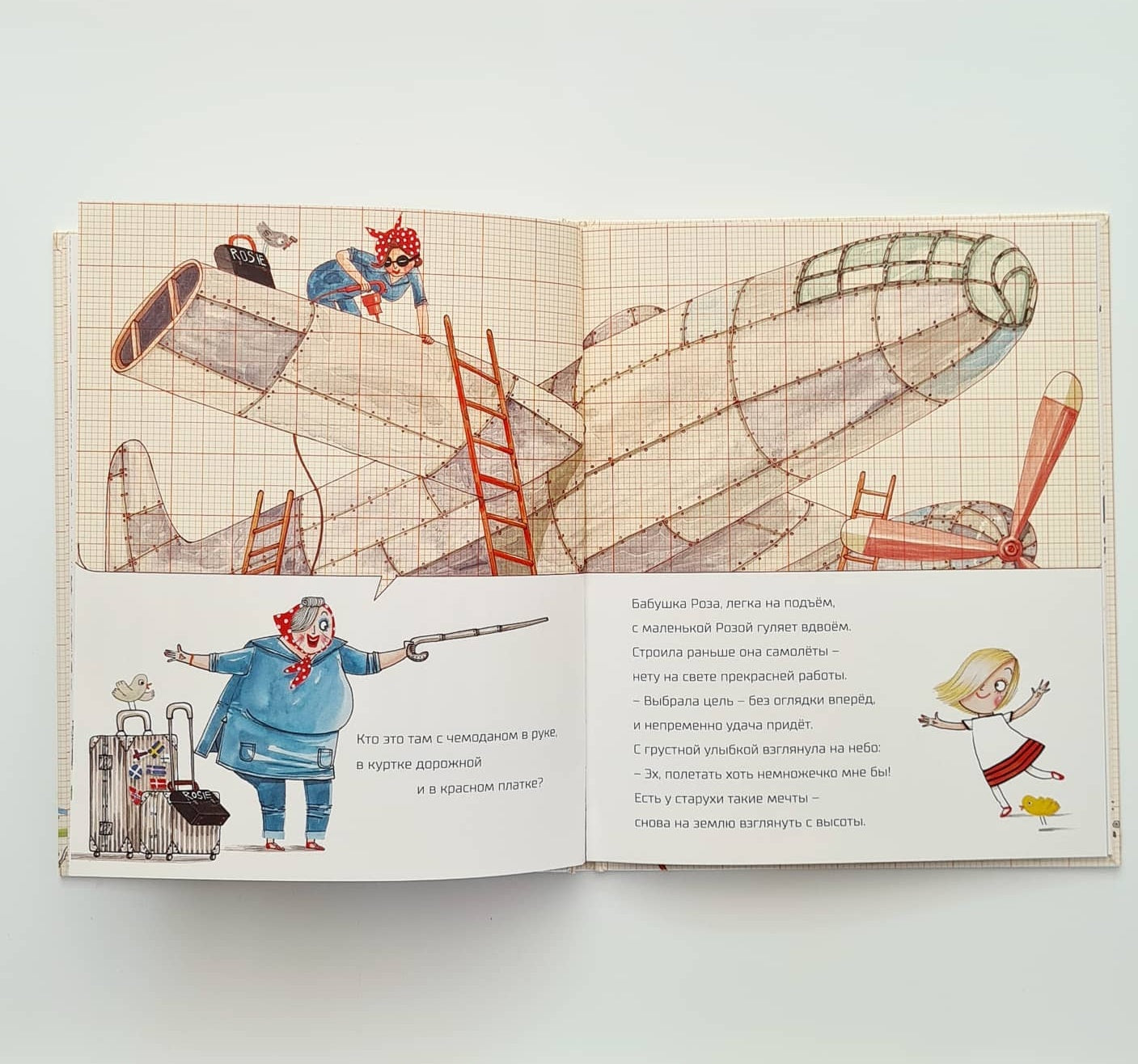 Но вот однажды в гости к маленькой Розе приезжает бабушка Роза, у которой есть мечта - подняться в воздух. И тут-то Роза начинает строить летательный аппарат, который поможет исполнить бабушкину мечту.