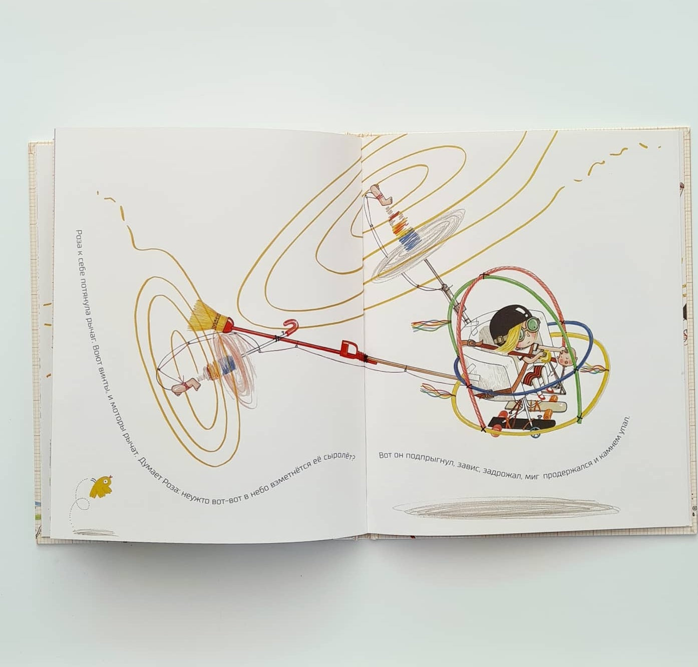 Увы, ее летательный аппарат лишь на мгновение отрывается от земли и разваливается на кусочки… Ну вот, опять неудача. И Роза опять готова опустить руки. А вот бабушка Роза, напротив, вдохновилась изобретательностью Розы и объяснила девочке, что не стоит бояться идти к цели. Ты действительно потерпишь неудачу, только если откажешься от своей мечты...