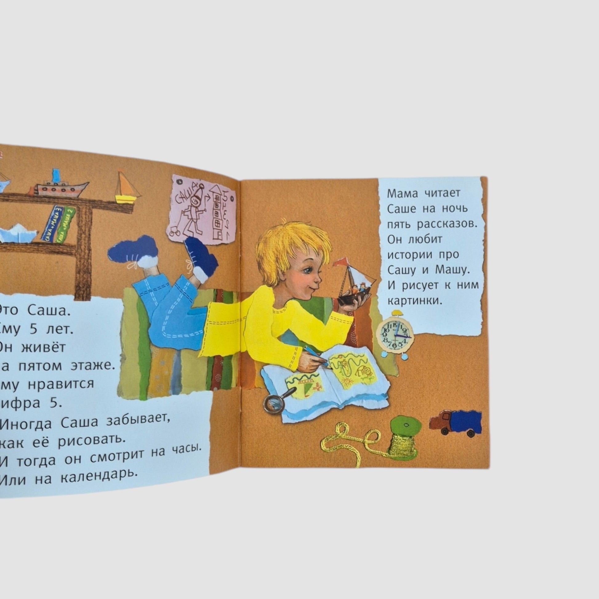 История про пятилетнего мальчика Сашу, его ежедневные занятия, игры проиллюстрирована замечательными рисунками Насти Варнавской.