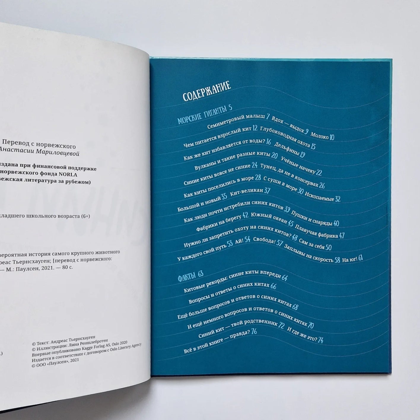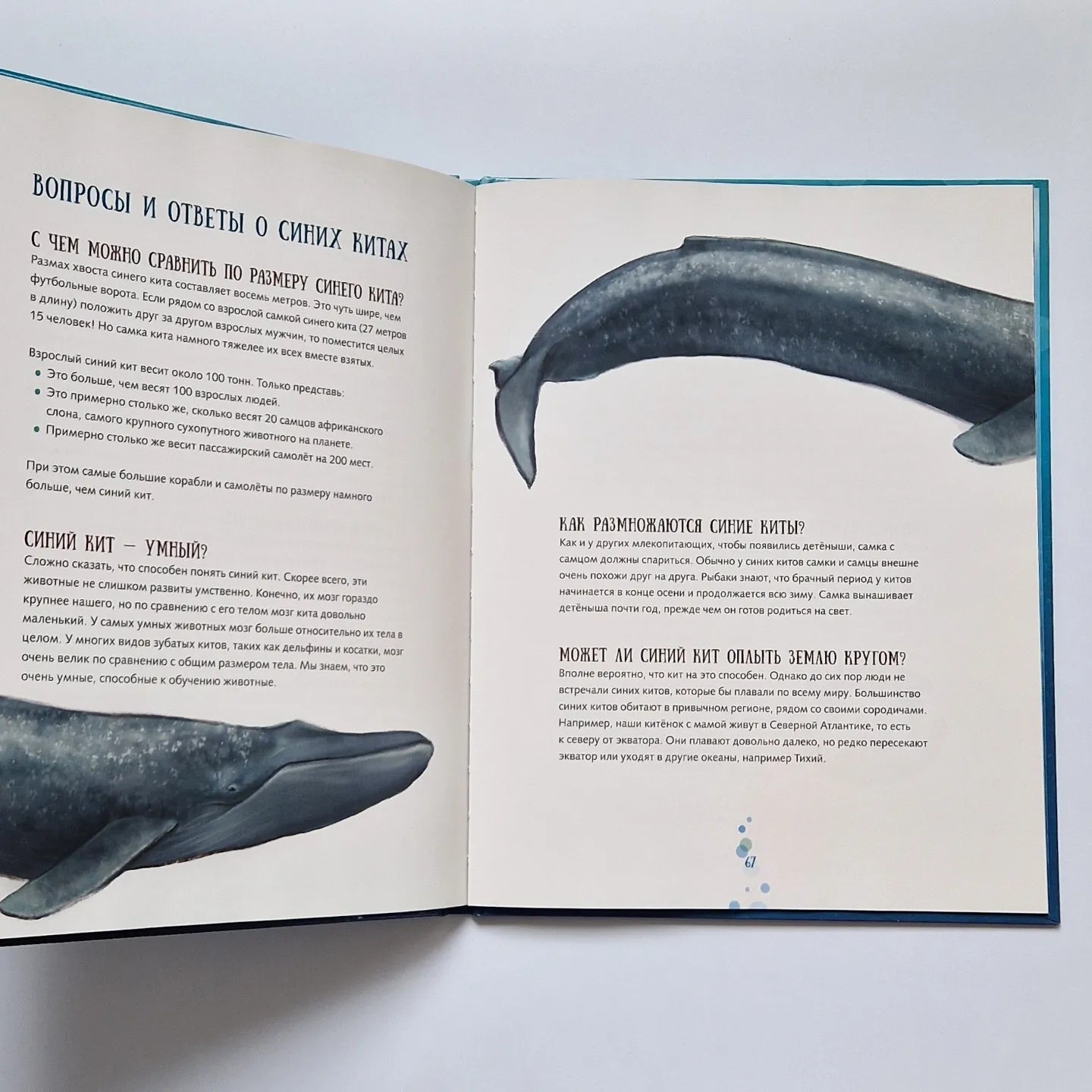В нашей книге вы узнаете, где обитают синие киты, чем они питаются и как им удаётся дышать через отверстие в верхней части головы. А ещё вы узнаете, почему они такие большие и от кого они произошли.