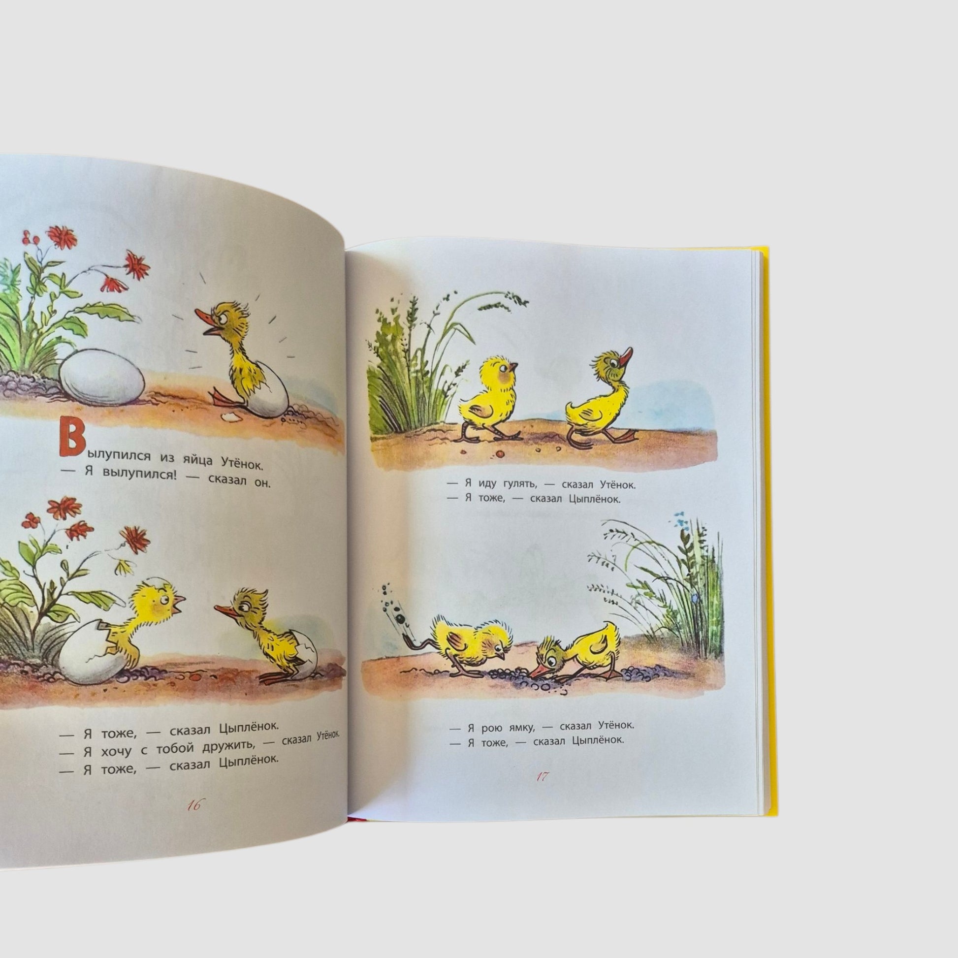 Сказки классика детской литературы, одного из основателей отечественной мультипликации, художника детской книги Владимира Григорьевича Сутеева (1903-1993) из знаменитой книги "Сказки и картинки". Это любимые детьми разных поколений сказки и сказки-мультфильмы: "Кто сказал "мяу"?", "Под грибом", "Мешок яблок", "Кот-рыболов", "Разные колёса" и другие.
