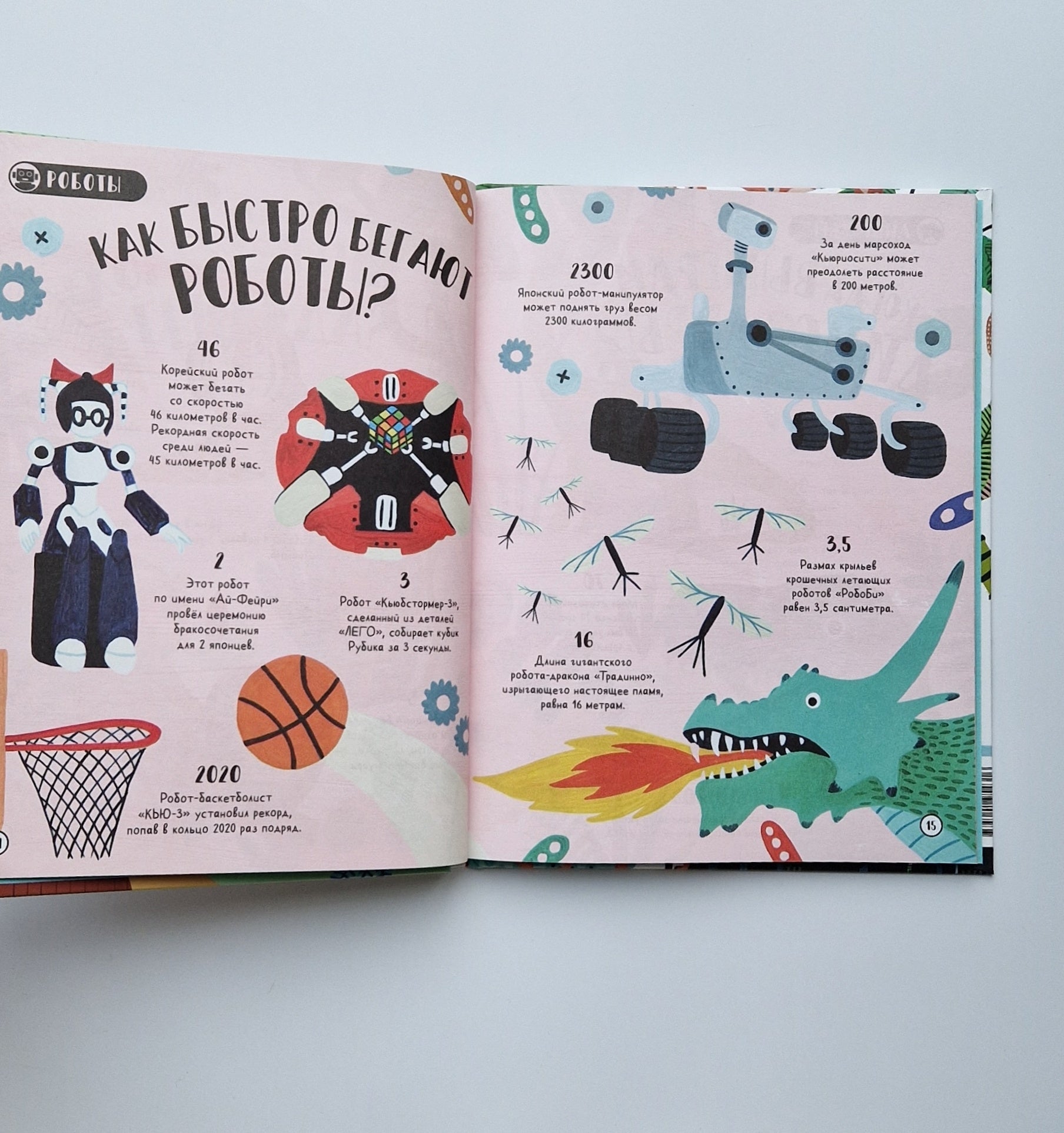 Знали ли вы, что у гепарда больше 2000 пятен? А у вас на лице 43 мускула? В книге собрано множество удивительных фактов (больше 350!) на самые разные темы: животные, растения, насекомые, еда, страны, архитектура и роботы, и даже рыцари и пираты. Каждый разворот посвящен одной теме.