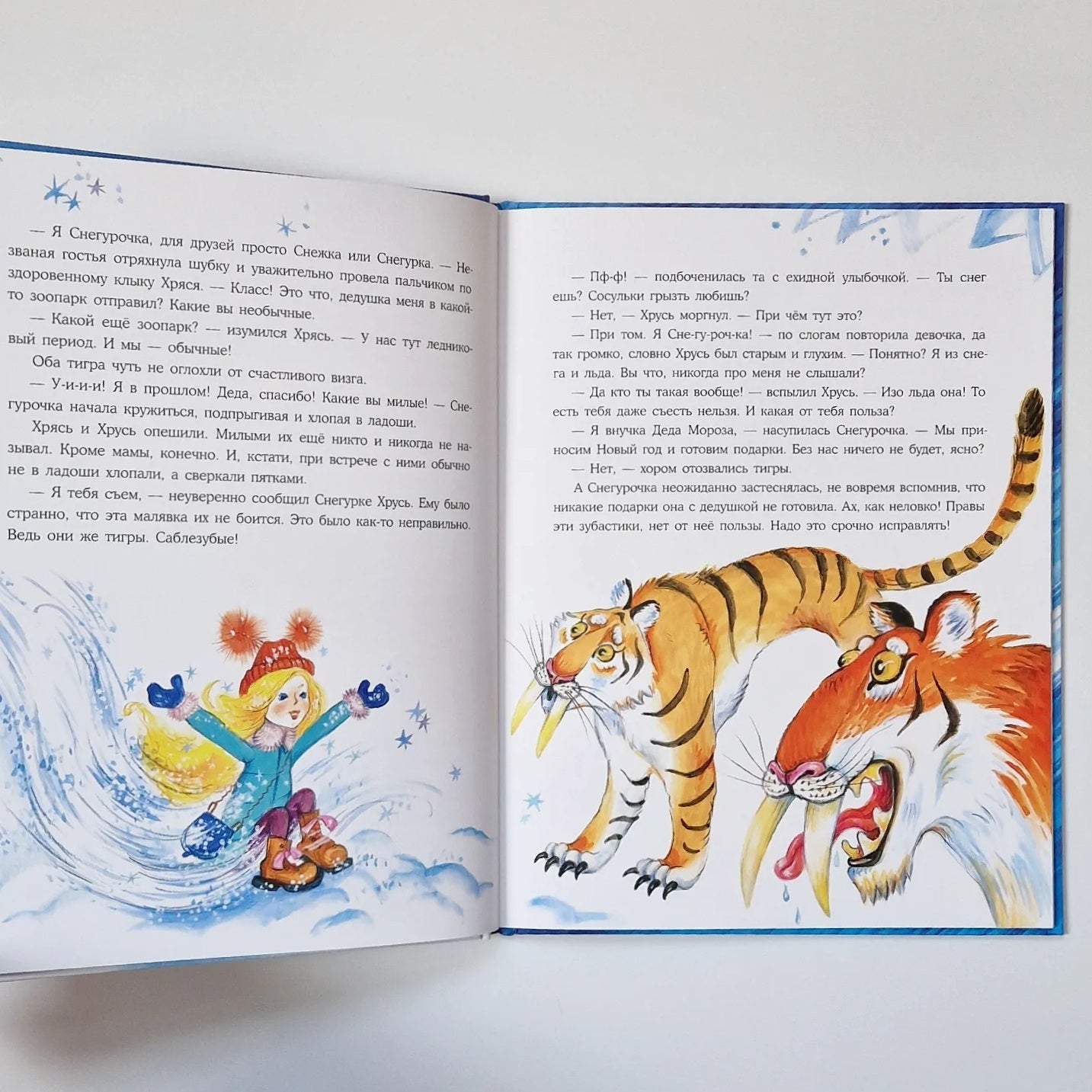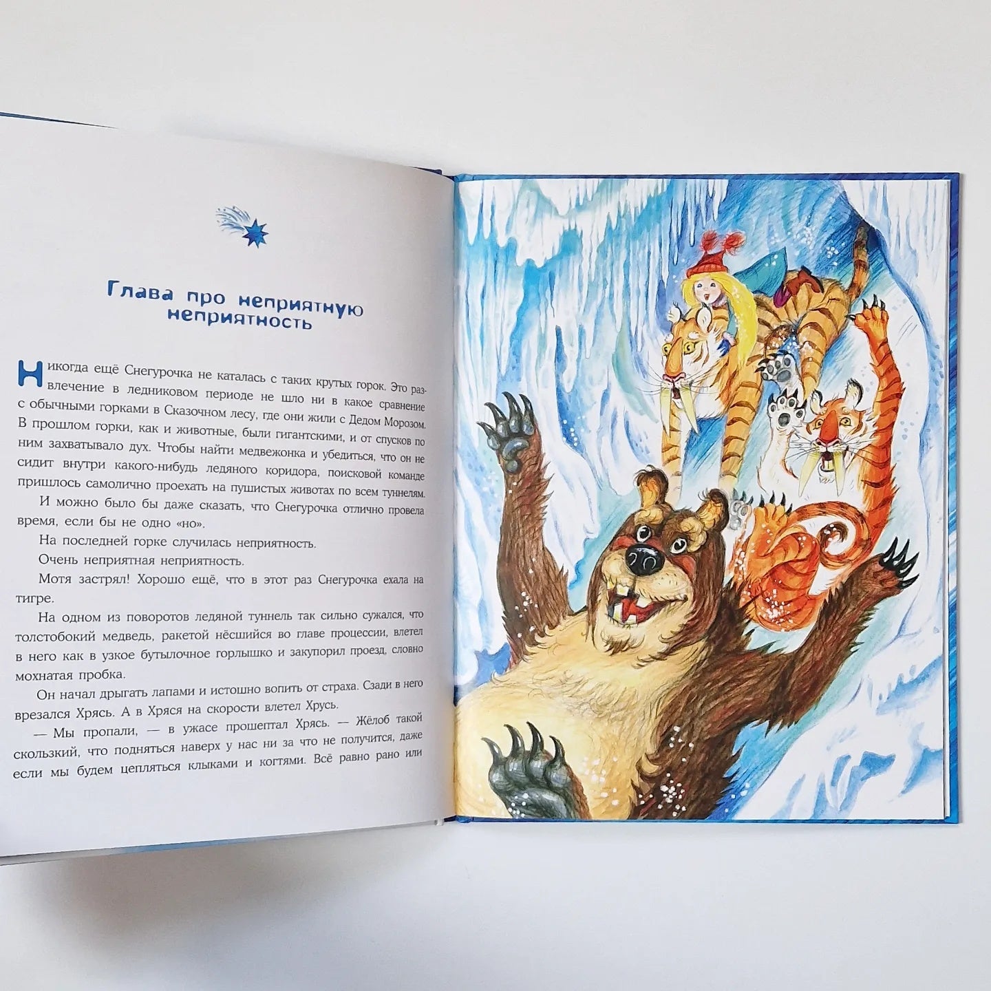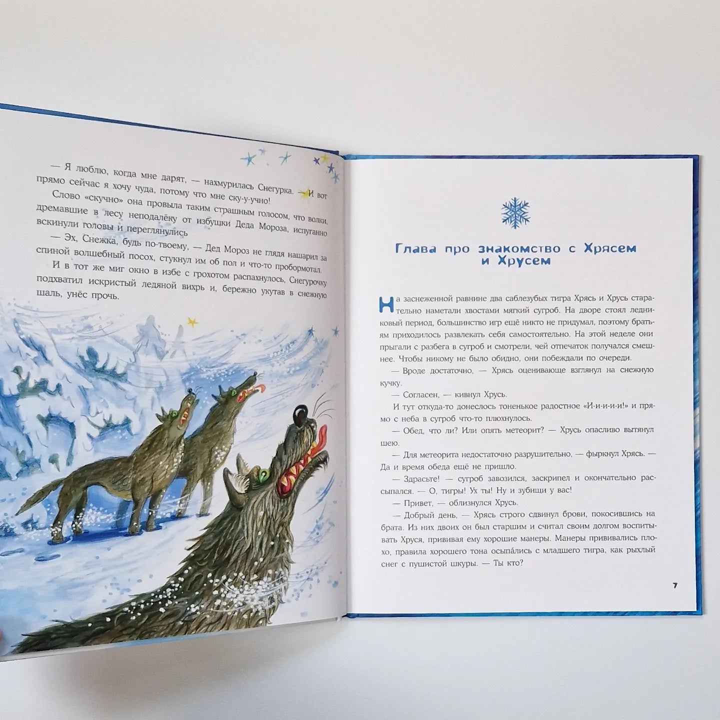 У Деда Мороза перед Новым годом много хлопот — и письма от ребят почитать надо, и подарки подготовить. А Снегурочке скучно — неохота ей дедушке помогать. Хочется поиграть, а ещё — чуда! Чего-нибудь такого, чего она ещё никогда не видела! Услышал это дедушка, усмехнулся, посохом об пол ударил — и снежный вихрь перенёс Снегурочку далеко-далеко- в ледниковый период! Вы думаете, она испугалась? Ничуть! Тут же нашла себе новых друзей, научила их играть в снежки и даже кататься по льду. А ещё рассказала про Новый год и наконец поняла, что настоящее чудо — это дарить кому-то радость!