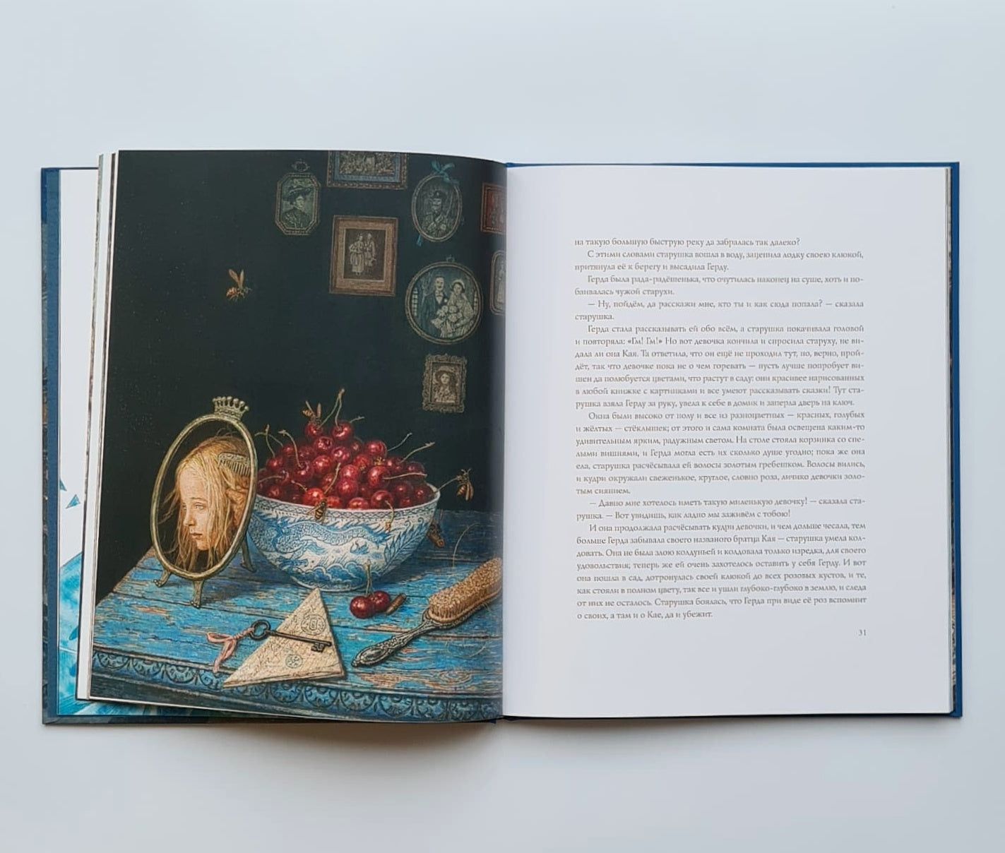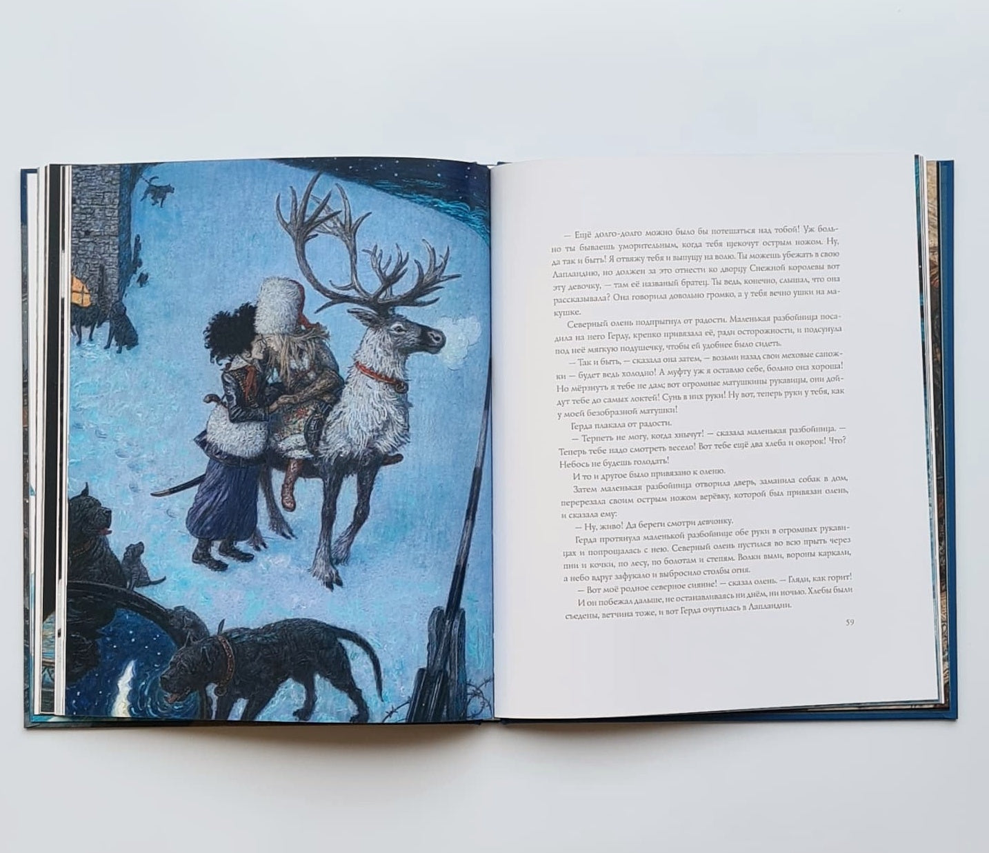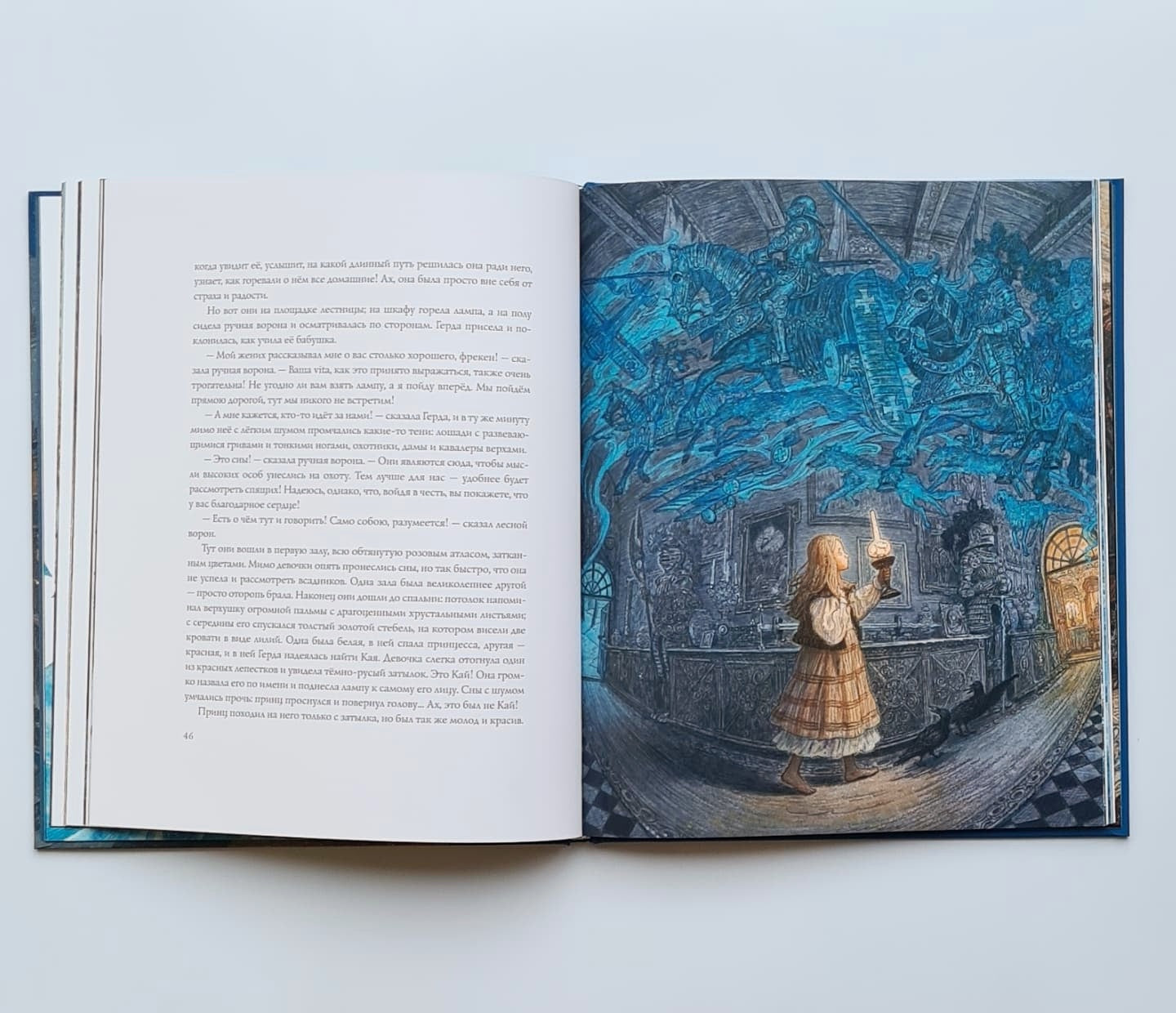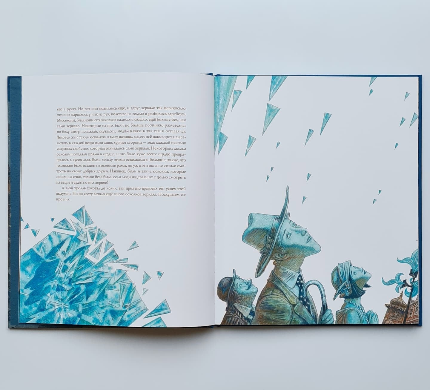 «Снежная королева» — одна из самых известных в мире сказок, вдохновлявшая многих художников. Услышав её название, невольно представляешь старинный датский городок в канун Рождества, падающий снег, сани Снежной королевы, уносящие Кая на Северный полюс… Всё это — сложившийся иллюстративный канон. Однако художник Антон Ломаев предлагает своё виденье известной сказки, перенося её действие в ХХ век. Это столетие — сложное, ужасное и прекрасное — стало испытанием на прочность для многого, что казалось людям незыблемым. В таком преломлении сказка Андерсена звучит совсем иначе, заставляя читателя заново всмотреться в знакомый сюжет. И убедиться, что он не теряет актуальности, завораживающими словами великого сказочника повествуя о непреходящих ценностях — вере, надежде и любви.