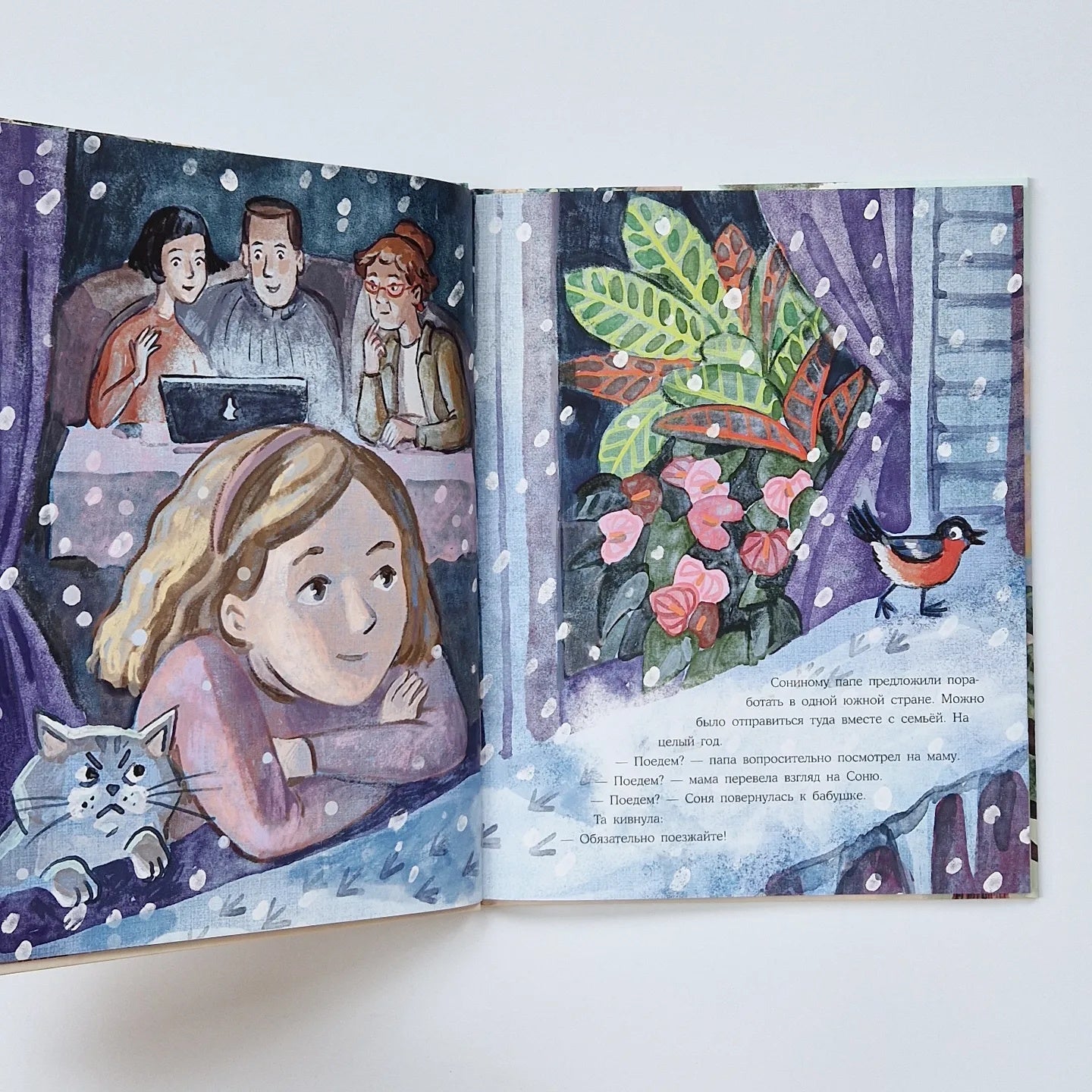 У Сони неожиданная радость - она вместе с родителями поедет в Южную Страну на целый год! Но как же Соня будет жить там без любимой бабушки и её чудесных цветов и растений? И как встречать Новый год без снега и ёлочки? Но Соня не унывает - у неё есть отличная идея.