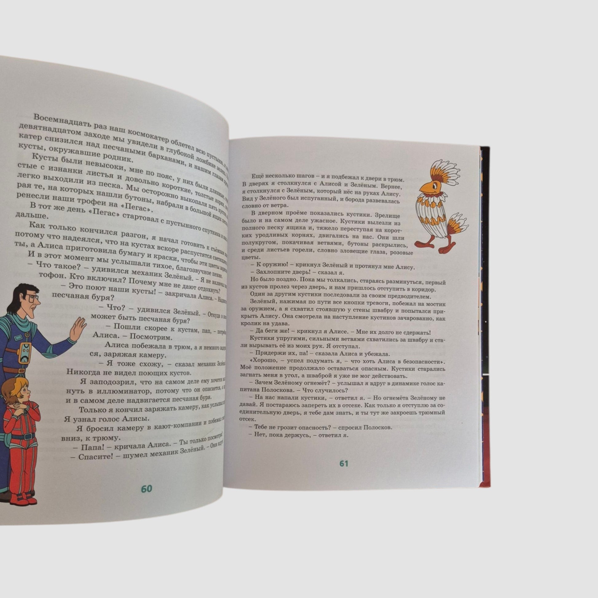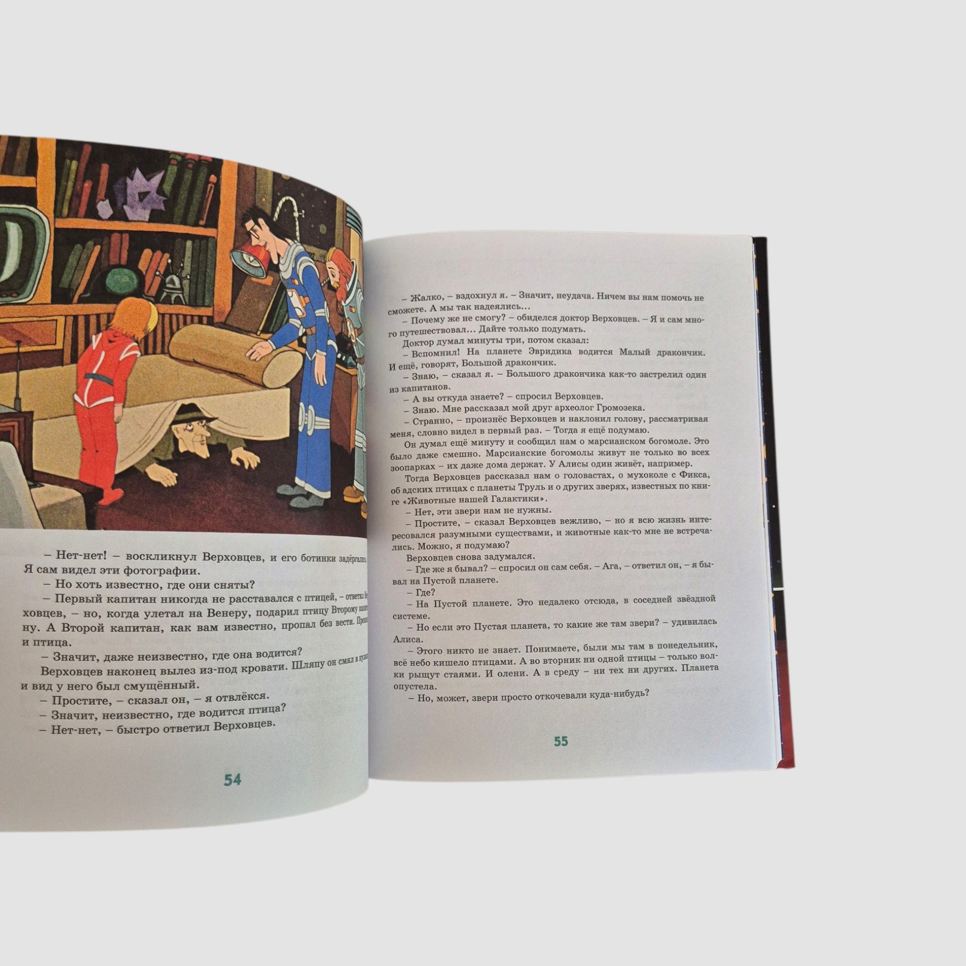 Сотни неизведанных планет и фантастических жителей космоса в уникальном издании знаменитой повести Кира Булычёва «Путешествие Алисы» с яркими кадрами советского мультфильма «Тайна третьей планеты»! В захватывающую космическую экспедицию отправляется экипаж корабля «Пегас»: механик Зелёный, профессор-зоолог Селезнёв и его дочка Алиса, любознательная и отважная девочка, мечтающая изведать самые удалённые уголки Вселенной. Их задача — найти редчайшие виды инопланетных существ. Но не всё так просто! Какую тайну скрывает третья планета в системе Медузы? Кто истребил всех говорунов? И удастся ли героям победить коварных космических пиратов?
