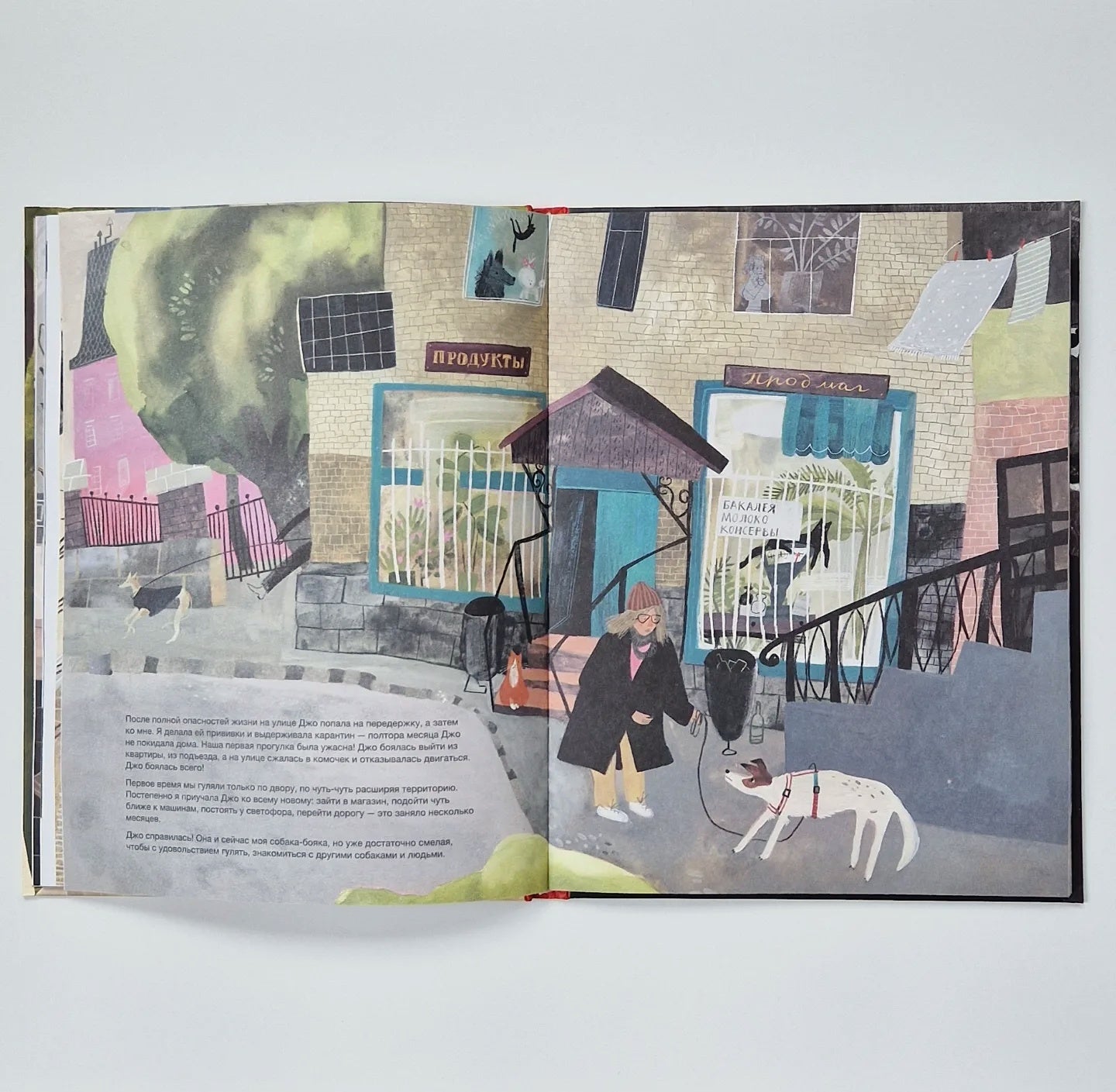 Меня зовут Лена Булай, я иллюстратор, и у меня есть любимая собака по имени Джо. Когда она появилась, я практически ничего не знала о собаках и наделала кучу ошибок. Но я много училась, читала, ходила на семинары и консультировалась у специалистов по поведению собак. Узнавала, как правильно общаться с собакой, слушать её и слышать, как строить с ней отношения, как заботиться о собаке и воспитывать, как подбирать правильное питание, гулять с ней и путешествовать.