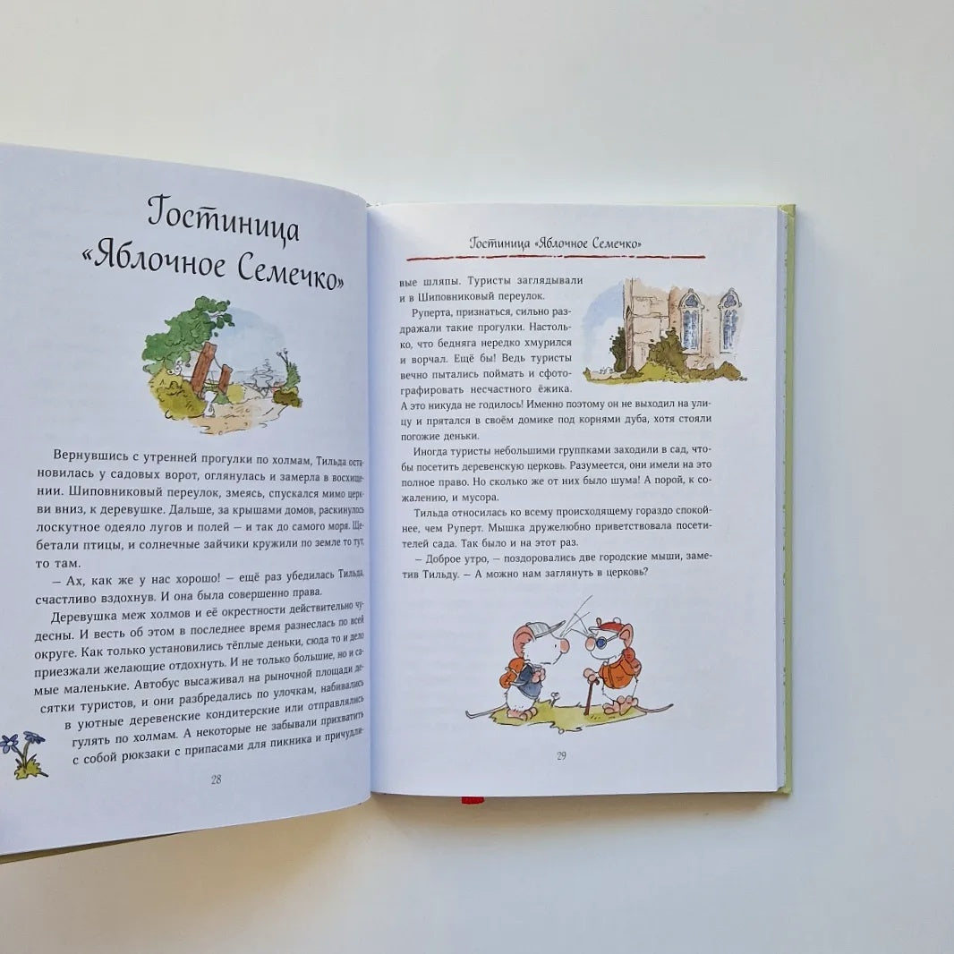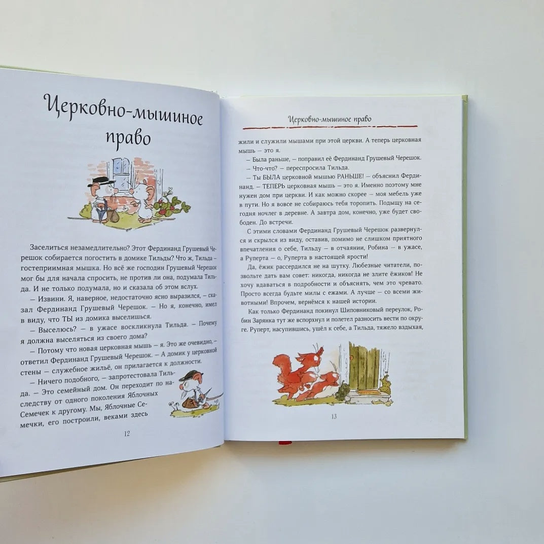 Деревушка меж холмов прекрасна в любое время года, когда сюда ни загляни. И белая мышка Тильда Яблочное Семечко не могла и представить жизни где-нибудь еще, кроме как в уютном домике у церковной стены. Она не подозревала, что скоро в ее размеренной жизни произойдут большие перемены. Однажды утром к ней пришел незнакомец. Он заявил, что старый пастор уходит на покой, а значит, с ним должна уйти и церковная мышь. Поэтому Тильда обязана освободить свой домик для новой церковной мыши. Неужели ей придется уехать?