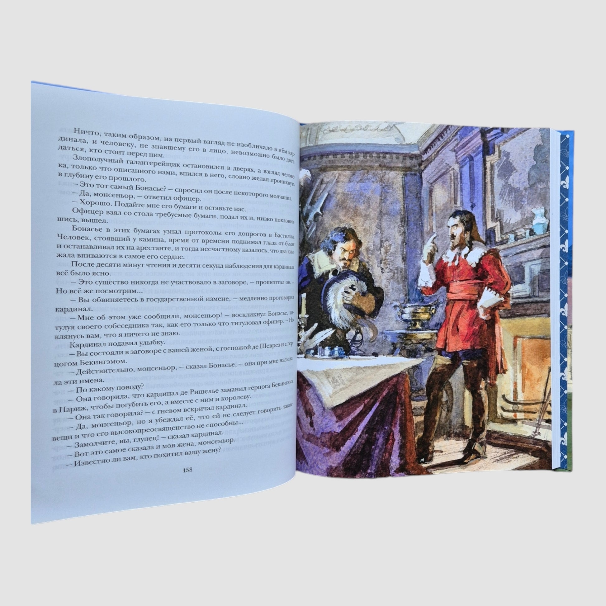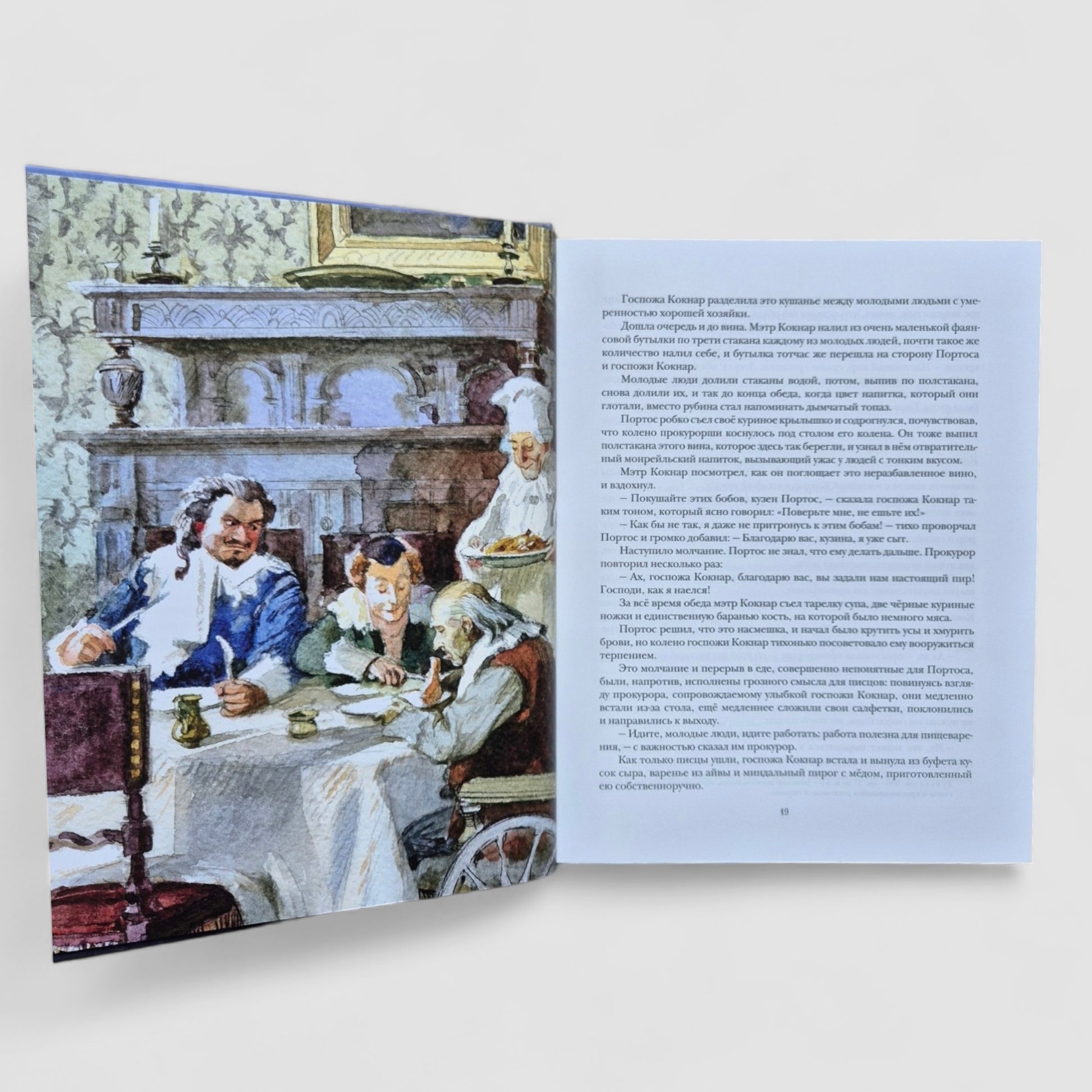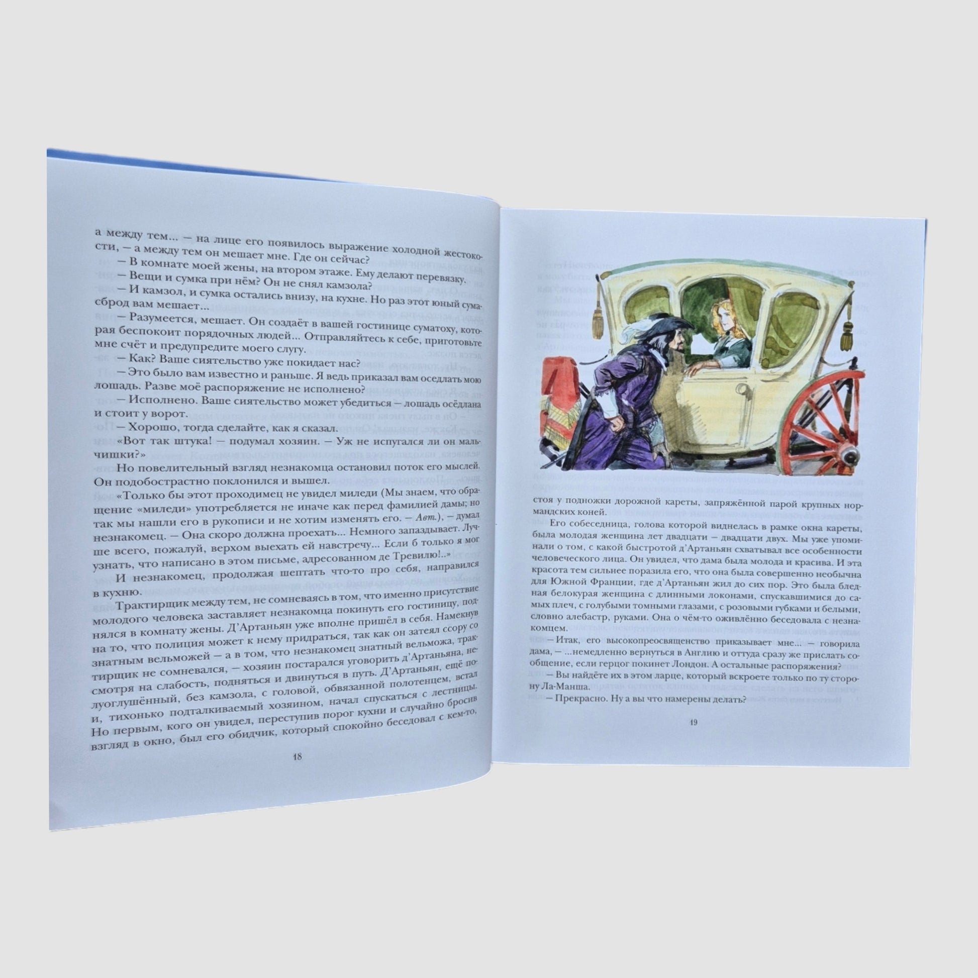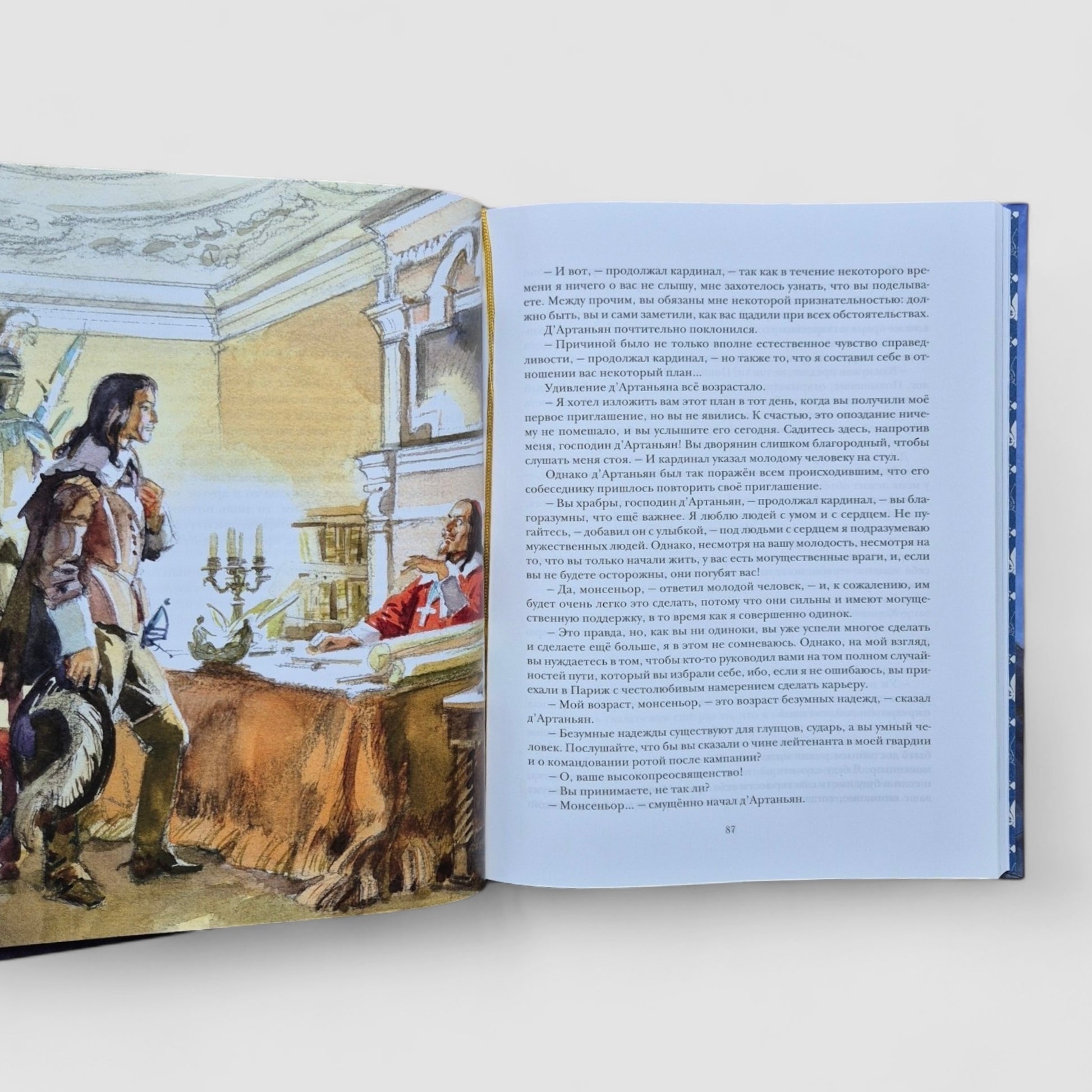 Перед вами роман о славных подвигах гасконца д'Артаньяна и его верных друзей Атоса, Портоса и Арамиса. Бесстрашные мушкетёры оказываются в самой гуще событий, происходящих во Франции времён правления Людовика XIII: интриги коварного кардинала Ришелье, тайная любовь Анны Австрийской, происки неуловимой миледи Винтер и сражения с гугенотами. Опасные приключения ждут наших героев, чья храбрость и отвага помогут преодолеть любые трудности.
