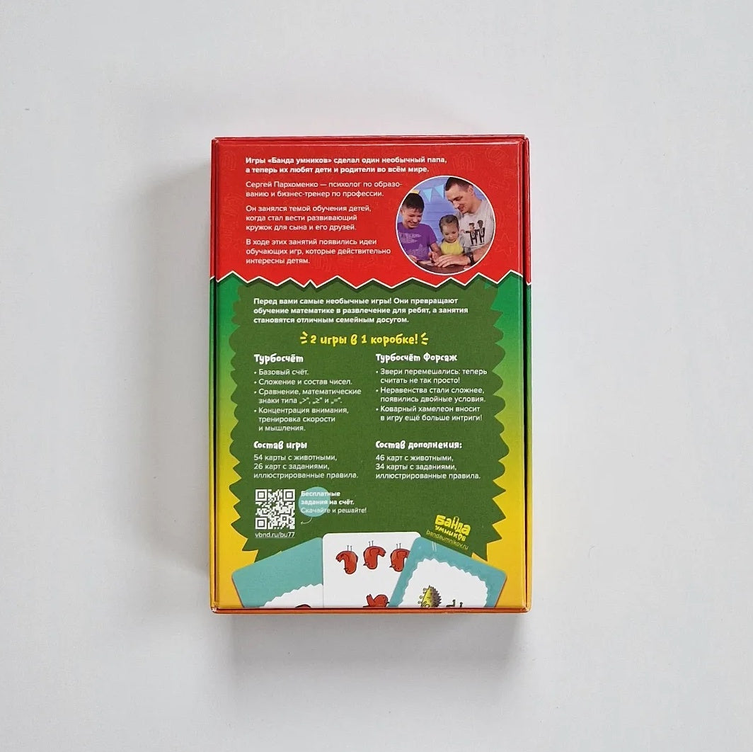«Турбосчёт» — увлекательный способ развить арифметические способности: скоростной устный счёт, сравнение и сложение. Освоив эти знания в раннем возрасте, ребёнок без труда справляется с более сложными предметами в дальнейшем. Взрослые тоже играют в «Турбосчёт» с нескрываемым азартом, так что присоединяйтесь!