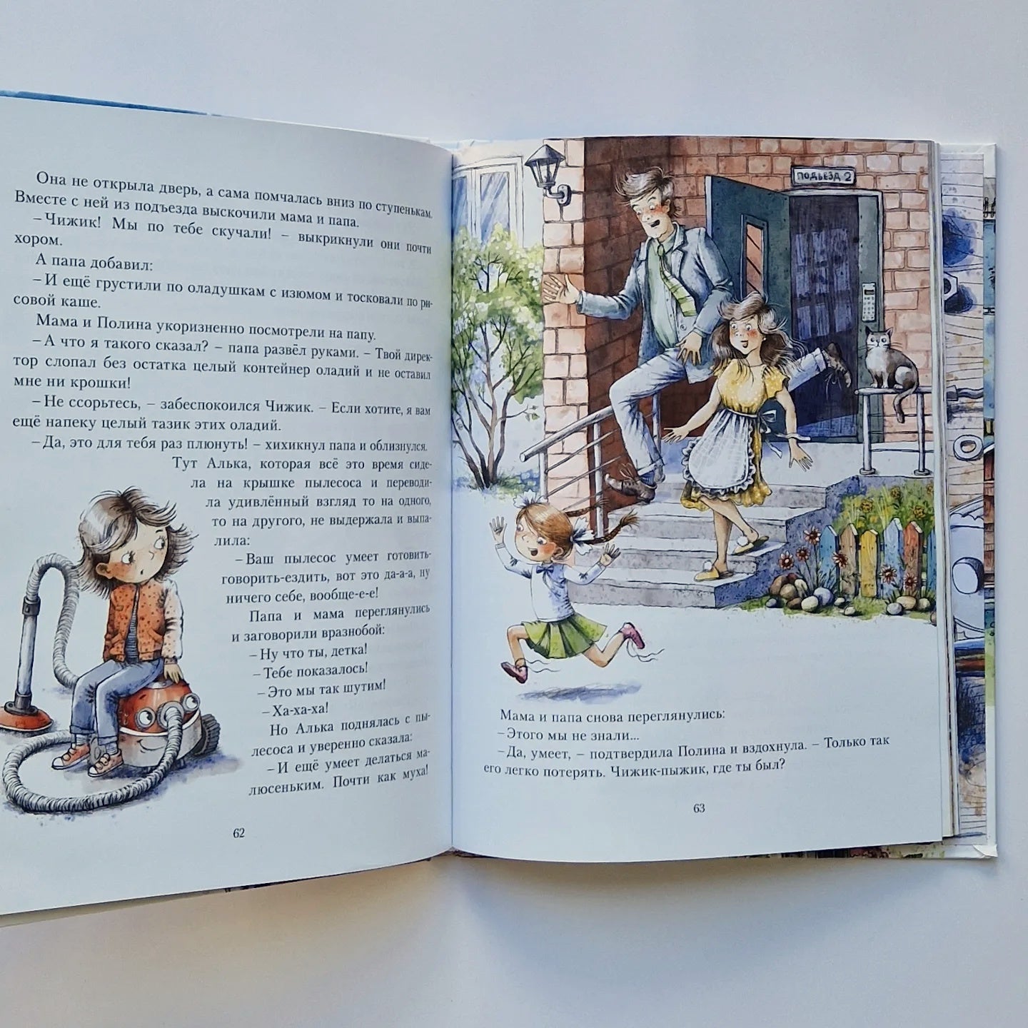 Смешная и очень человечная сказка о волшебном пылесосе Чижике, попавшем в семью школьницы Поли Половичкиной. Как и положено современному прибору, у Чижика множество функций: он способен не только прибраться в квартире (да так, что там ни единого предмета не останется, не то что пылинки), но и доставит своих хозяев на работу и в школу быстрее любого такси, а перед этим накормит их вкуснейшим завтраком.